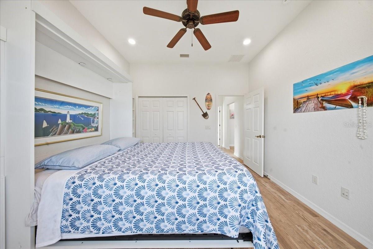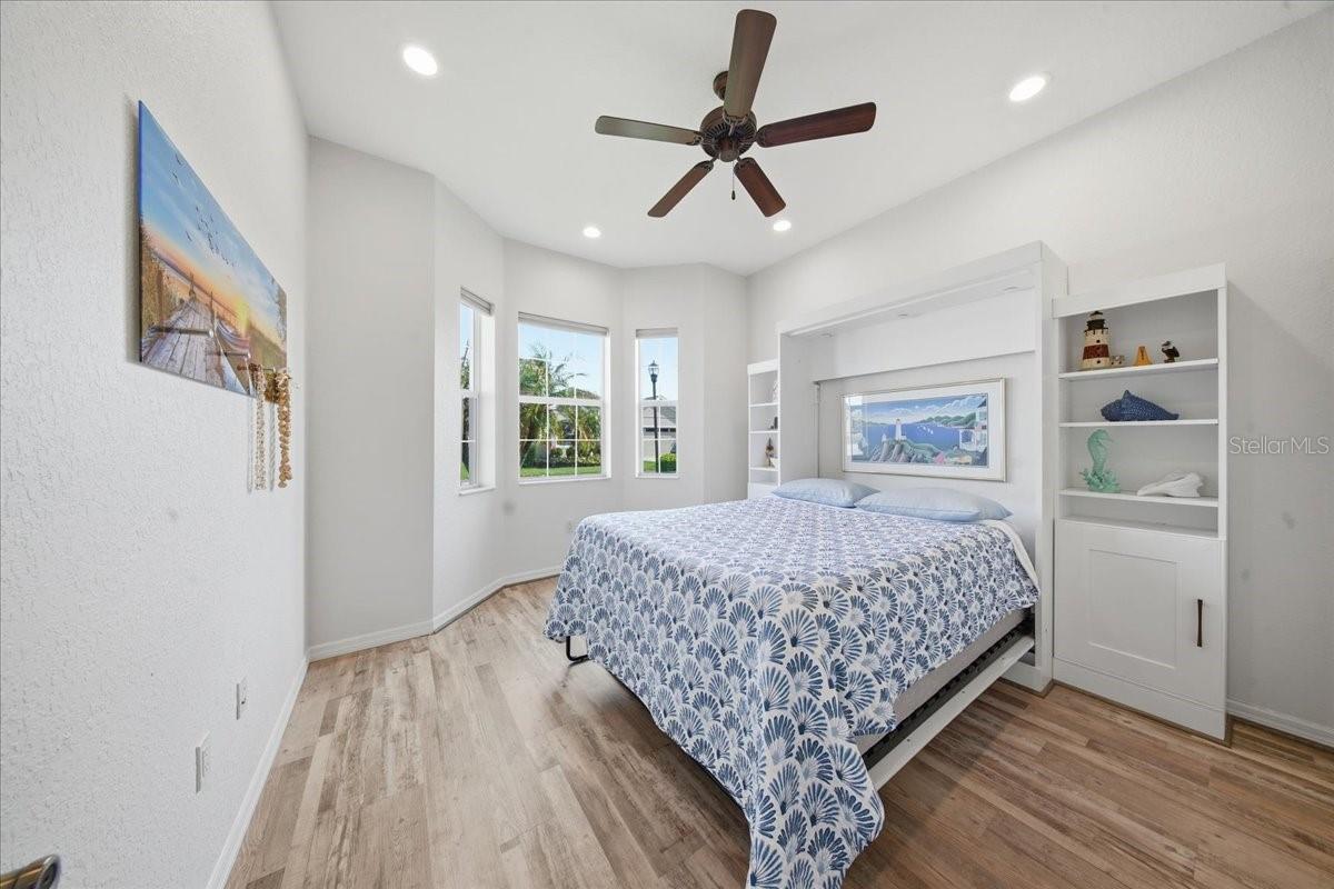 Welcome to your private slice of paradise—where luxury, comfort, and resort-style living come together in one unforgettable home. From the moment you arrive, the beautifully landscaped grounds, paver walkway, and inviting front porch set the tone for what’s inside. Step through the elegant glass front door into a bright, open-concept design that immediately feels like home. Triple sliding glass doors draw your eye straight to the showstopper—your own heated saltwater pool and spa retreat. This 3-bedroom, 2-bath residence was designed for both relaxation and entertaining. The outdoor space is nothing short of extraordinary, featuring a fully equipped outdoor kitchen with a gas grill with a smoker, gas burner, granite countertops, refrigerator, wine fridge, storage drawers, and dining space perfect for hosting unforgettable gatherings. The pool system is top-of-the-line with commercial-grade filtration, saltwater sanitation, and a variable-speed pump for efficiency and low maintenance. Inside, the heart of the home is a chef-inspired kitchen boasting 42” upper cabinets, under-cabinet lighting, granite countertops, stainless steel appliances, reverse osmosis system, pull-out pantry shelving, and abundant storage. Whether you’re hosting holidays or enjoying a quiet evening, the spacious dining areas offer the perfect setting. The primary suite is a true retreat, featuring two custom walk-in closets and a luxurious en suite bath complete with dual vanities, a walk-in glass shower with floor-to-ceiling tile, and a relaxing garden tub. Guest spaces are just as thoughtful, with a second bedroom offering a Murphy bed with built-in storage and a third bedroom with a built-in desk—ideal for hobbies or a home office. Every detail has been carefully considered, including fresh interior and exterior paint, new landscaping, a brand-new roof (2025), irrigation system, gutters, skeeter beater, and a spacious 2-car garage plus golf cart garage. A separate dining room and indoor laundry with sink add even more convenience. And beyond your front door? A lifestyle that feels like a year-round vacation. Enjoy an incredible array of amenities including golf, tennis, pickleball, bowling, fitness center, indoor lap pool, movie theater, restaurant, social clubs, and a full-time activities director to keep your calendar as full—or as relaxed—as you’d like. Perfectly located near shopping, dining, medical facilities, and entertainment, this home offers not just a place to live—but a lifestyle to love. This is more than move-in ready… this is where your next chapter begins.
