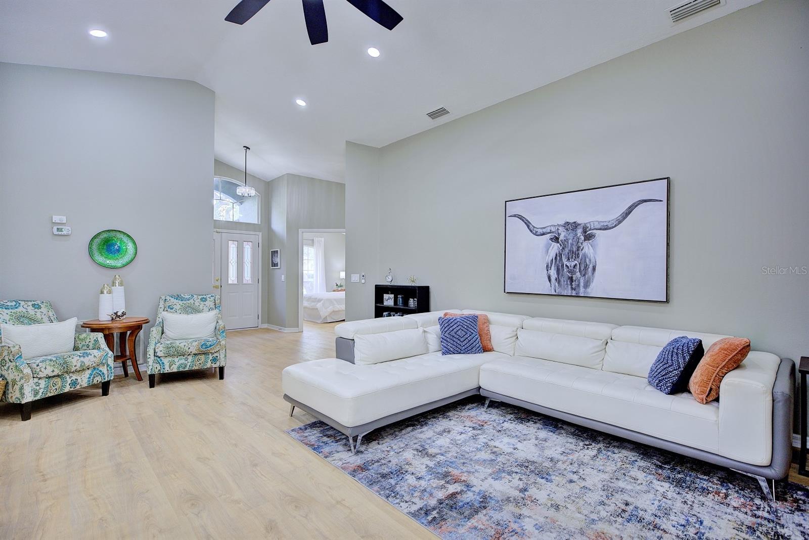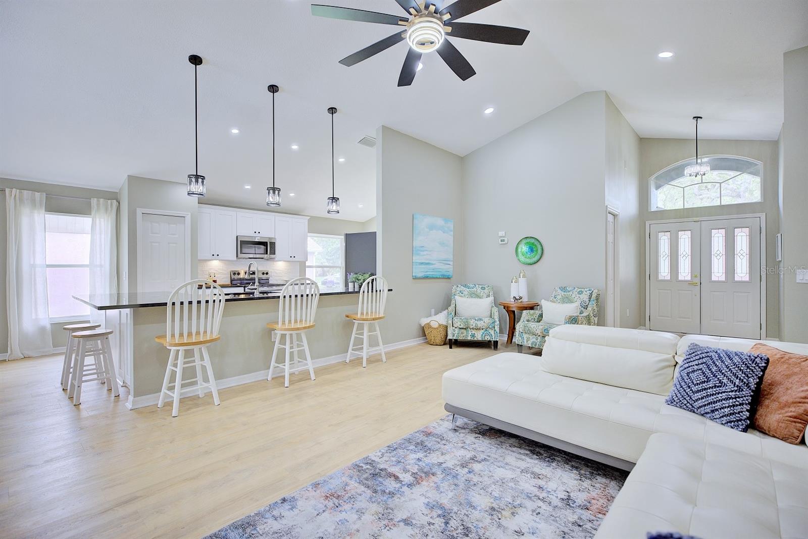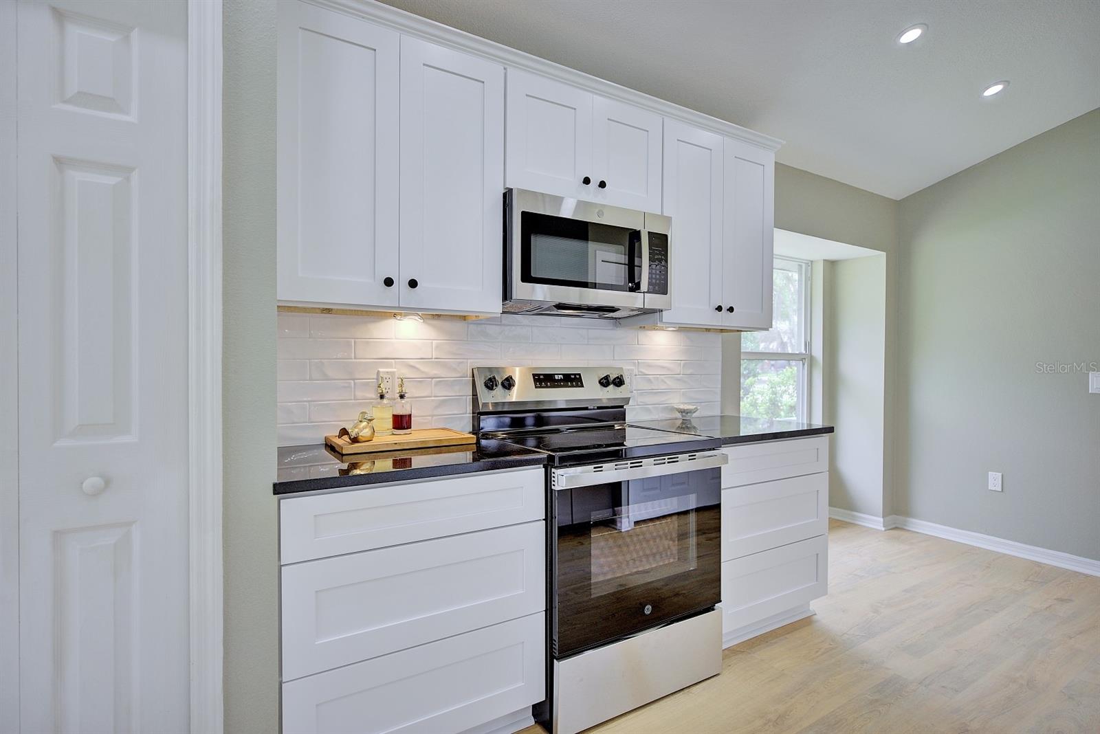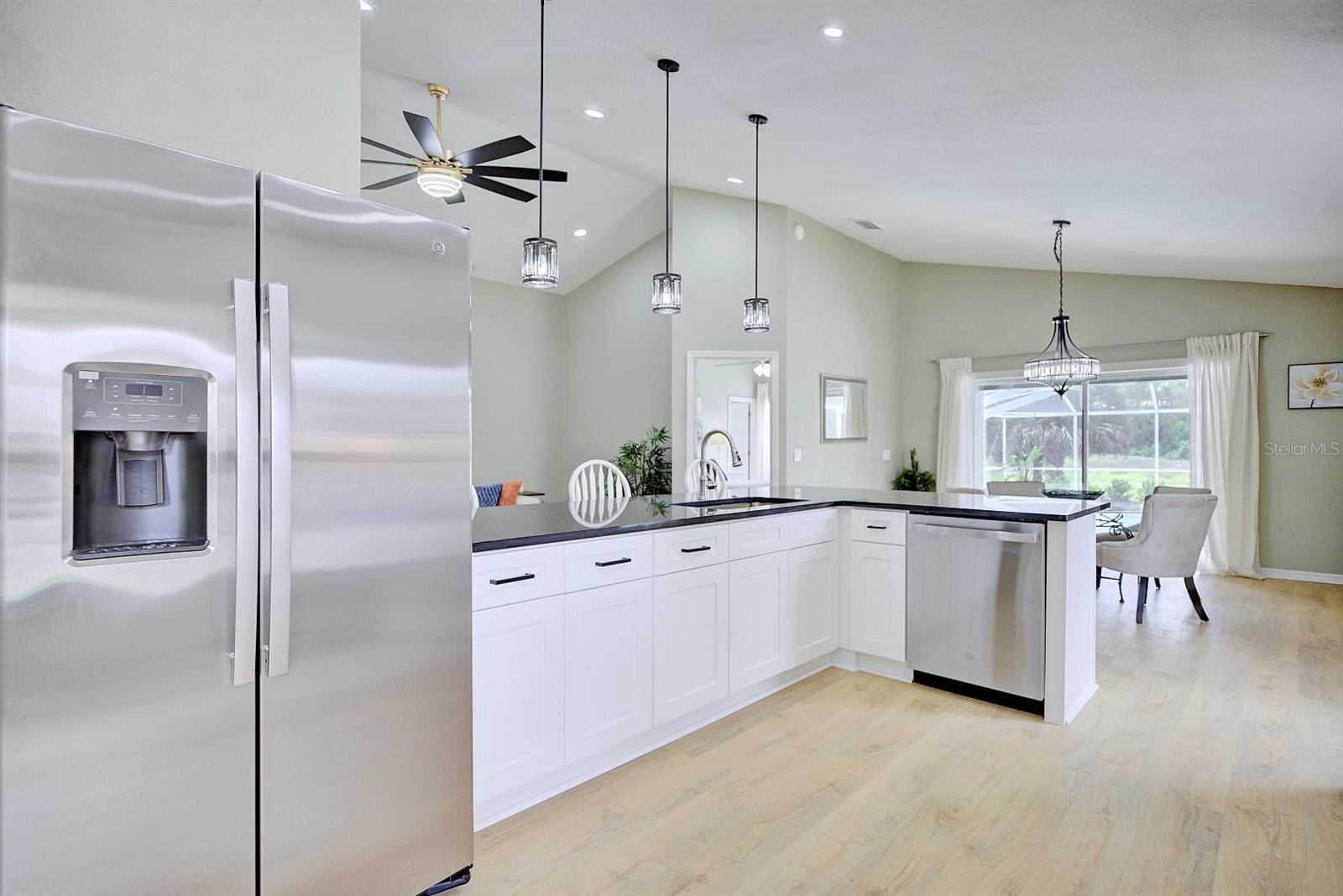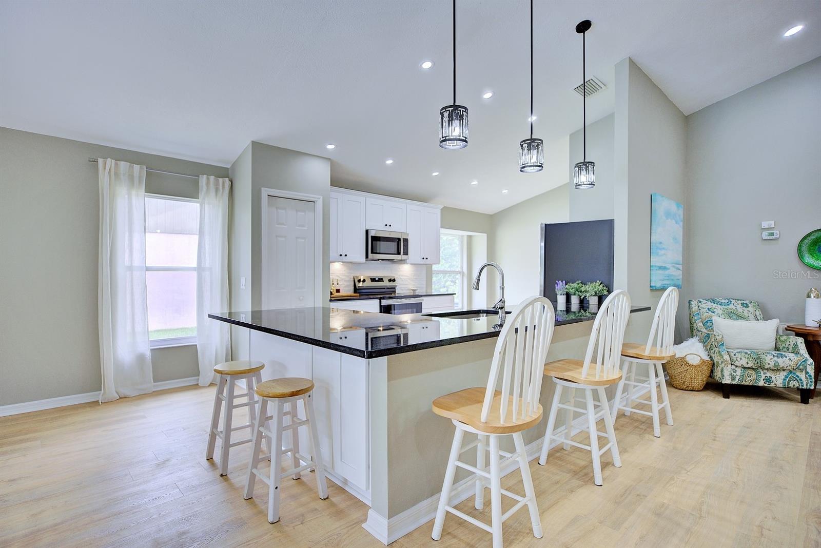 STUNNING 3-bedroom, 2 bath POOL HOME in Oakwood Golf Club Community, TASTEFULLY RENOVATED WITH HIGH END FINISHES TOP TO BOTTOM... NEW ROOF, BRAND NEW KITCHEN WITH SPARKLING GRANITE COUNTERTOPS, NEW BATHROOMS, INTERIOR AND EXTERIOR PAINT, LUXURY VINYL FLOORING THROUGHOUT AND DESIGNER TILE IN THE BATHROOMS, GORGEOUS MODERN ACCENT LIGHTING... also lots of natural light that flows beautifully through this open split floor plan with vaulted ceilings and gorgeous views of the pool that overlooks a private view of lush green foliage and golf course, GREAT outdoor space to just relax or entertain your family and friends. This home will not disappoint, a MUST SEE!!!