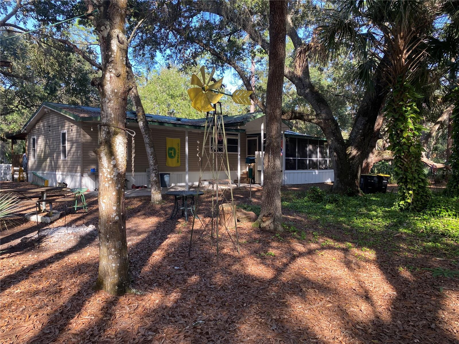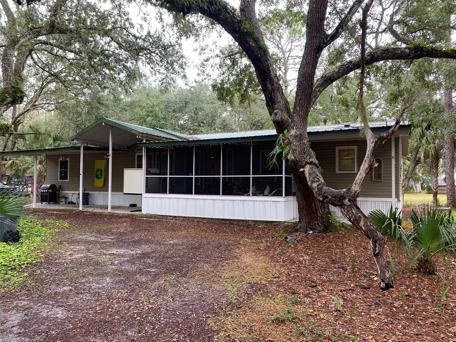 Price improvement. No HOA. It is worth the drive to come and see your private personal paradise in the country. Set on 3 lots this is .89 acres under a beautiful mature Oak canopy with plenty of space to keep all your toys. The home is over 1600 sq ft upgraded with a metal roof and impact windows. Home is Handicap accessible with 3 bedrooms, 2 full bathrooms, a separate office/bar room with wet bar and a wood burning fireplace in the living room. It has large covered porches on the front and back. Take a seat on the back porch and watch you fur babies run in the fenced in area. The back porch has a handicap accessible bathroom. The property has a small barn and separate workshop. You have Camp Mack just down the road which gives you access to the Kissimmee Chain of Lakes. You have access to Lake Rosalie boat ramp for your fishing and airboating pleasure. Additional lots behind this property are available. Seller motivated.
