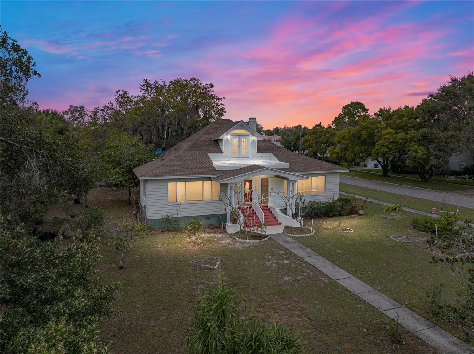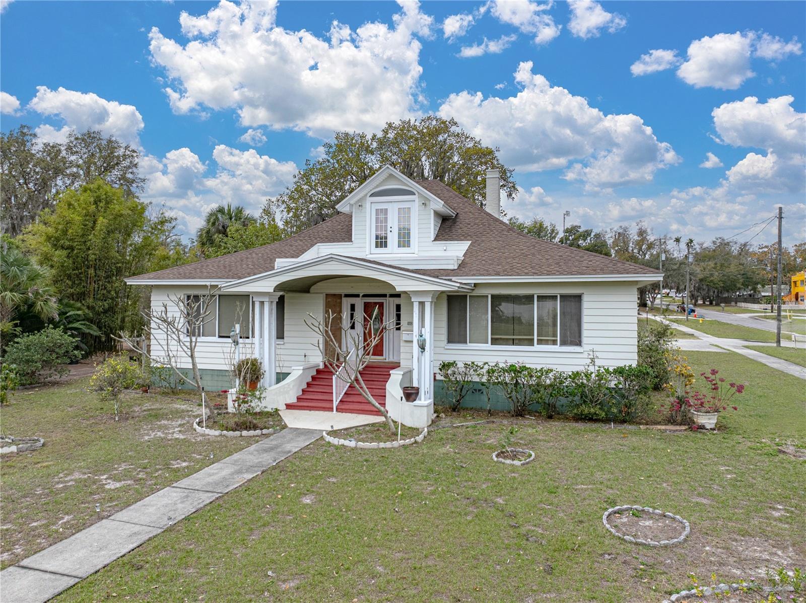 This charming 3 bedroom, 3 bath is located on a corner lot offering amazing lake views and has been restored to its original condition. This spacious home boasts high ceilings and picture molding with beautiful wood flooring. The living room has picturesque views of the lake, with a beautiful wooden staircase that leads up to a loft on the second floor and can be used for an office, a library or a bedroom. The Master Bedroom has a large sitting room that also offers lake view windows. The hallways have the old Florida southern pine paneling which leads to the dining room and kitchen. Each bedroom features its own full bath. The rear entry leads to a detached garage that features a laundry room with an additional bathroom. Located close to downtown, scenic areas, and parks. This also would be an excellent Bed & Breakfast! With a large down payment, seller would entertain a purchase money mortgage. Don't miss your opportunity to own now!