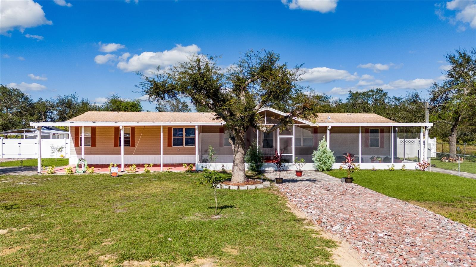 Rare opportunity to own a double-wide manufactured home on over an acre of land in Lake Wales! This property features a spacious master bedroom with a walk-in closet and an en-suite bathroom with dual sinks. There are also five additional bedrooms, each with its own closet, and three full bathrooms. The kitchen has been beautifully renovated, along with updated flooring throughout the home. The entire house has been freshly painted, offering a modern, fresh feel. For added convenience, there's an indoor laundry area with extra storage space. The property provides plenty of parking with a carport for six cars, plus another carport with space for one more vehicle. Two sheds great potential for storage or various uses. The beautifully landscaped lot boasts mature trees, vibrant flowering plants, and a variety of fruit trees, creating an ideal environment for raising animals or starting a garden. Please note, there is a dog on the property, and showings are by appointment only. Don’t miss out on this fantastic opportunity!