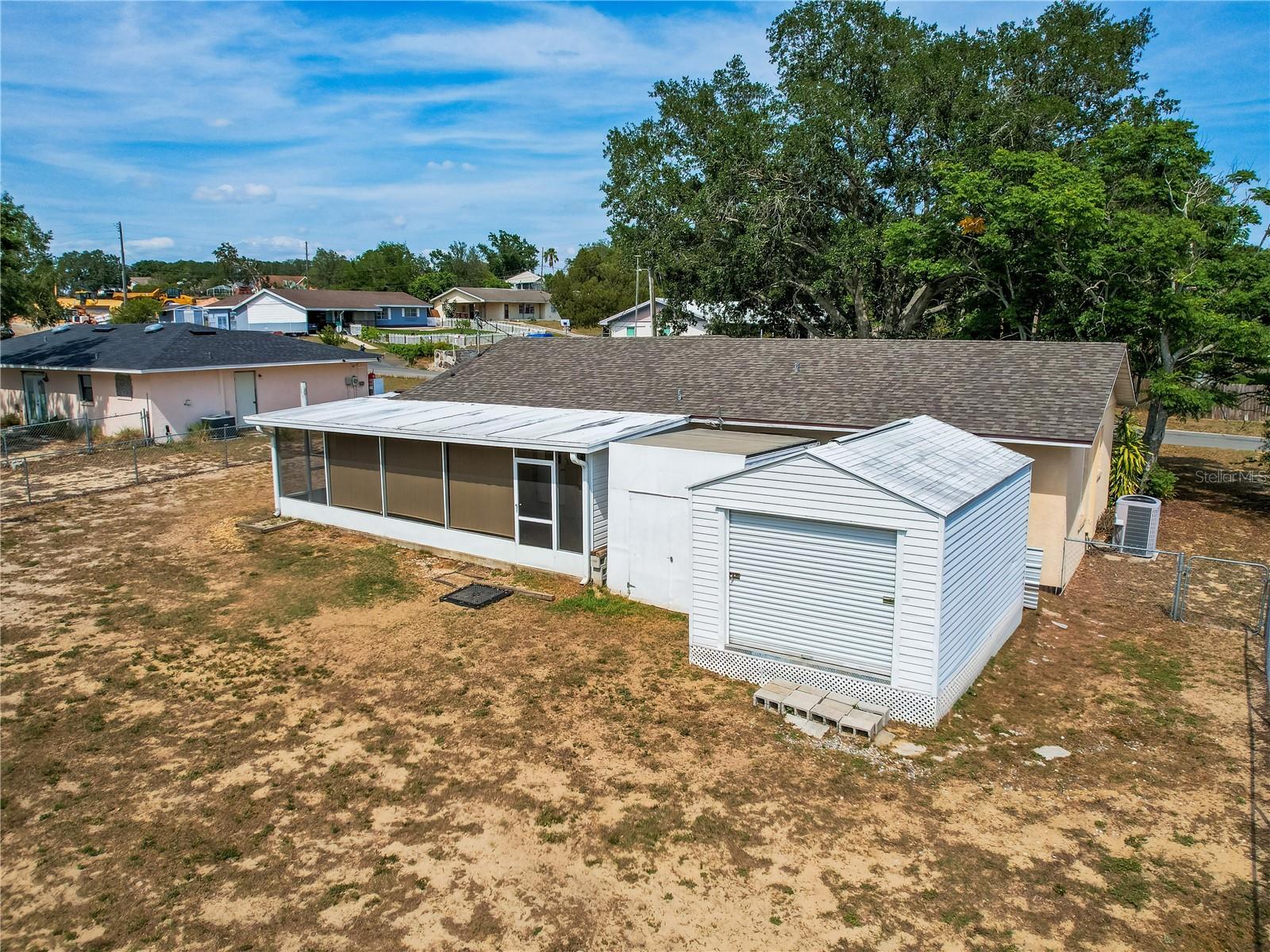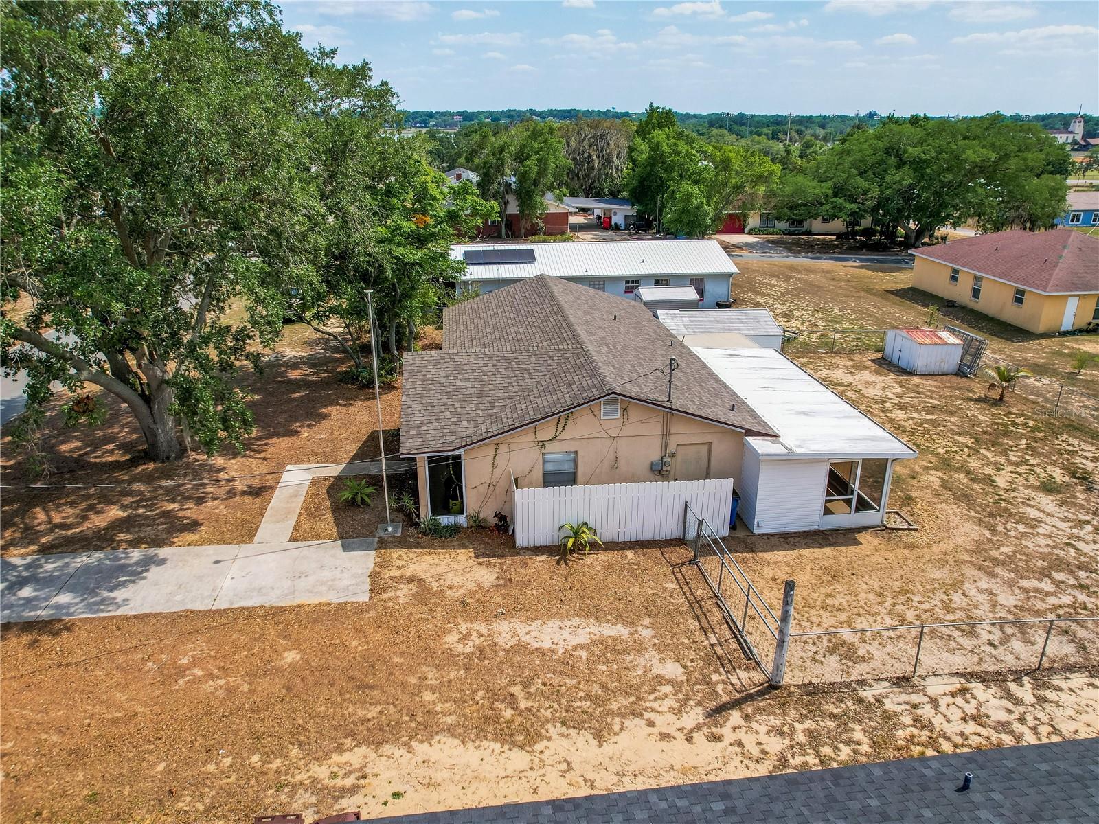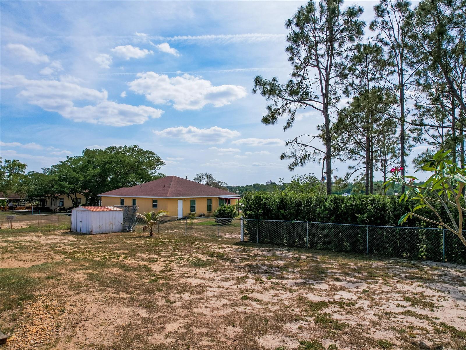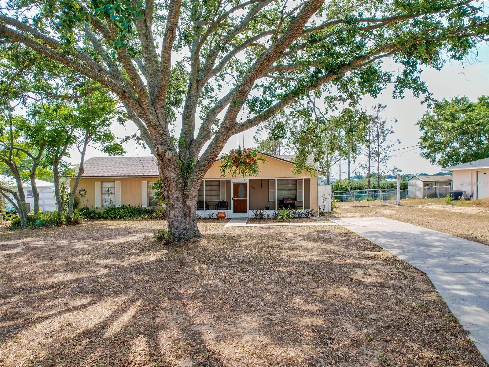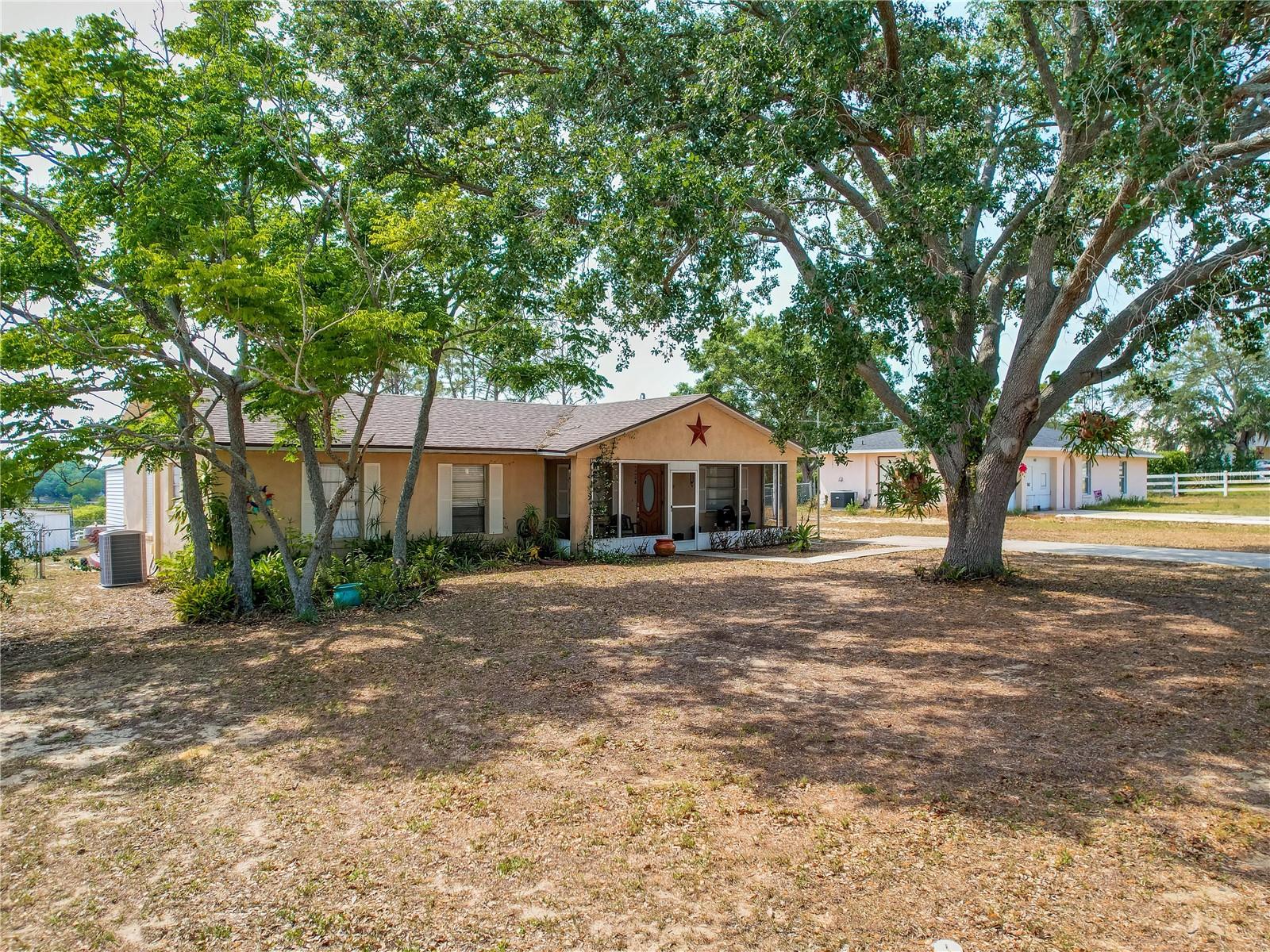 Welcome to your dream home! Featuring a brand-new roof installed in 2023, this beautifully maintained 3-bedroom, 2-bathroom property sits on over a quarter-acre of fully fenced land, offering 1,250 square feet of comfort, style, and peace of mind. Enjoy stunning sunset views over Spook Hill and North Lake Wales Lake—all with no HOA and no CDD restrictions. Step inside from the charming screened-in front porch to discover a spacious family room highlighted by a shiplap accent wall and gleaming laminate floors throughout. Tile flooring in the kitchen and bonus room makes for easy maintenance—perfect for busy households and pet owners. The large kitchen offers plenty of space and scenic views, while the separate formal dining room is ideal for family meals and entertaining. The primary bedroom comfortably fits a king-sized bed and features a private en-suite bathroom with a large walk-in shower and an updated vanity. The second full bathroom also includes an updated vanity and a convenient tub-shower combo. Attractive wall accent trim throughout the bedrooms adds a polished, custom touch. Outdoor living is a dream with both a front screened porch and an extended rear screened porch, complete with an external TV hookup—perfect for relaxing or hosting gatherings. Three exterior storage sheds provide ample space for tools, toys, and equipment. Additional updates, including the upgraded electrical panel, ensure this move-in ready home checks all the boxes. Homes offering this level of value, updates, and freedom are rare—schedule your private showing today!