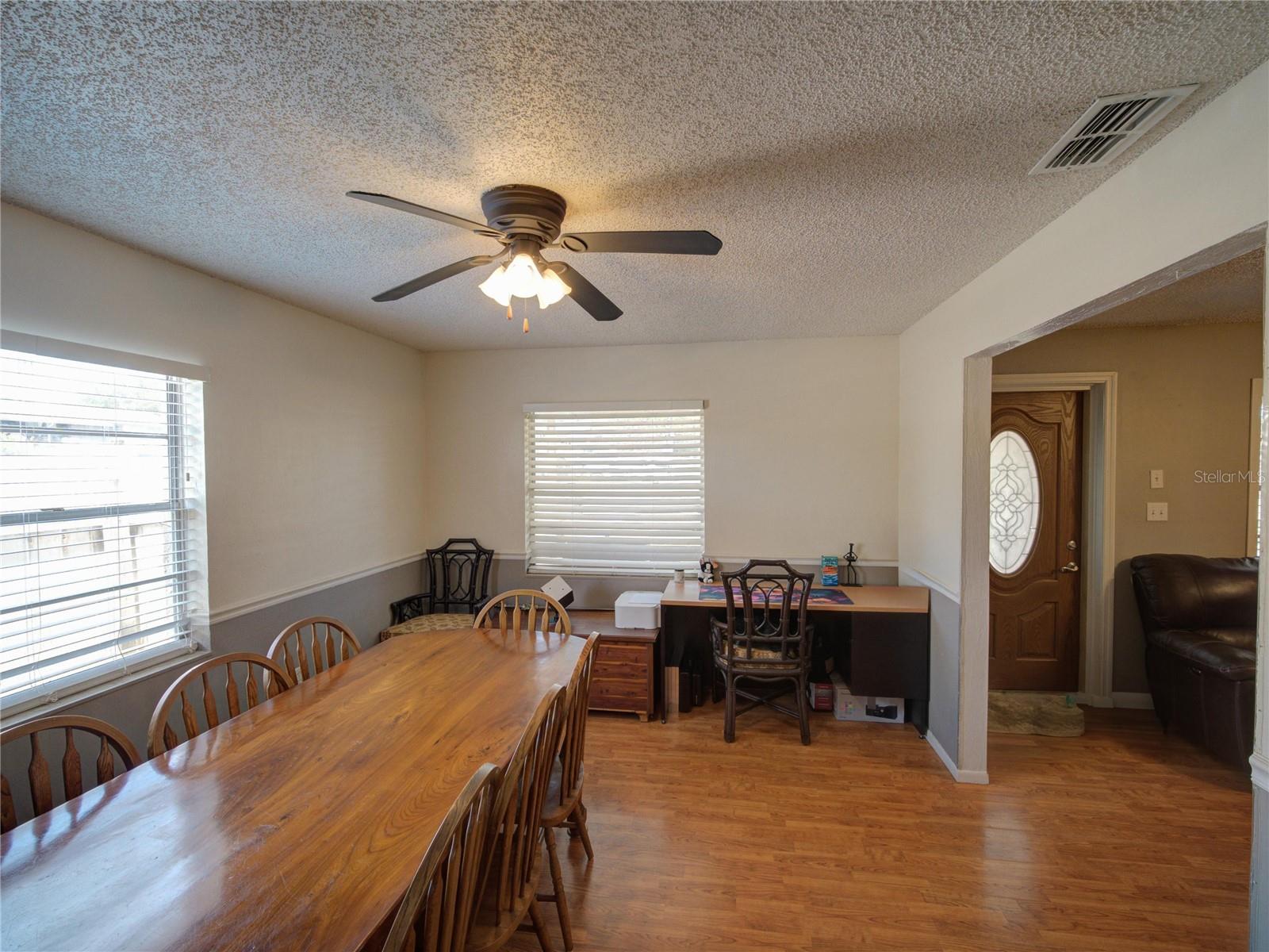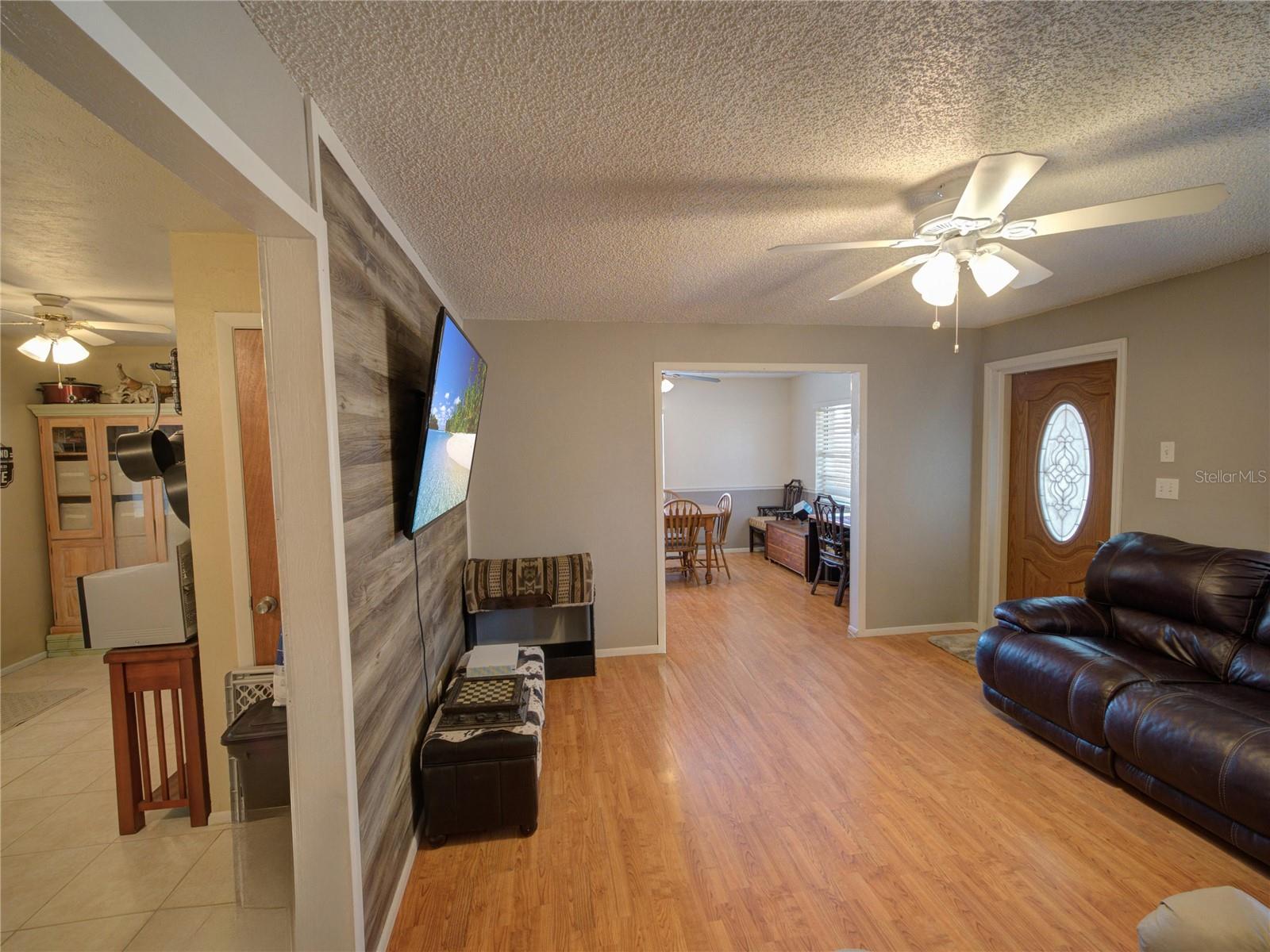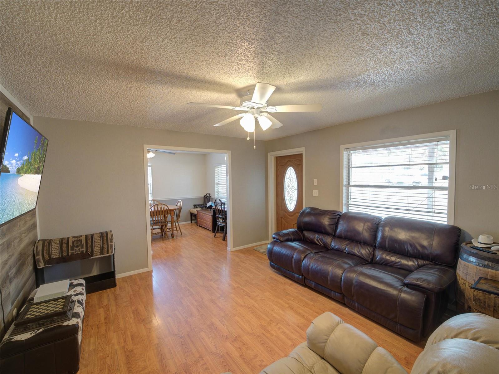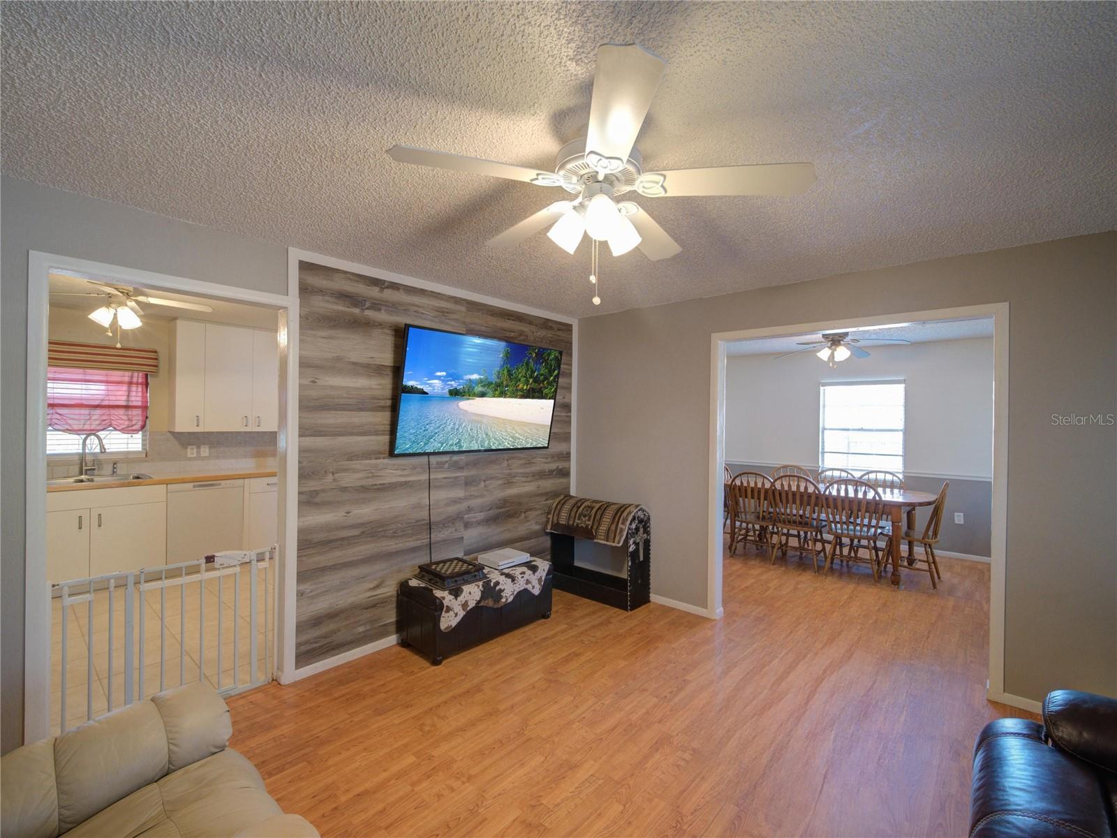 Welcome to your dream home! Featuring a brand-new roof installed in 2023, this beautifully maintained 3-bedroom, 2-bathroom property sits on over a quarter-acre of fully fenced land, offering 1,250 square feet of comfort, style, and peace of mind. Enjoy stunning sunset views over Spook Hill and North Lake Wales Lake—all with no HOA and no CDD restrictions. Step inside from the charming screened-in front porch to discover a spacious family room highlighted by a shiplap accent wall and gleaming laminate floors throughout. Tile flooring in the kitchen and bonus room makes for easy maintenance—perfect for busy households and pet owners. The large kitchen offers plenty of space and scenic views, while the separate formal dining room is ideal for family meals and entertaining. The primary bedroom comfortably fits a king-sized bed and features a private en-suite bathroom with a large walk-in shower and an updated vanity. The second full bathroom also includes an updated vanity and a convenient tub-shower combo. Attractive wall accent trim throughout the bedrooms adds a polished, custom touch. Outdoor living is a dream with both a front screened porch and an extended rear screened porch, complete with an external TV hookup—perfect for relaxing or hosting gatherings. Three exterior storage sheds provide ample space for tools, toys, and equipment. Additional updates, including the upgraded electrical panel, ensure this move-in ready home checks all the boxes. Homes offering this level of value, updates, and freedom are rare—schedule your private showing today!