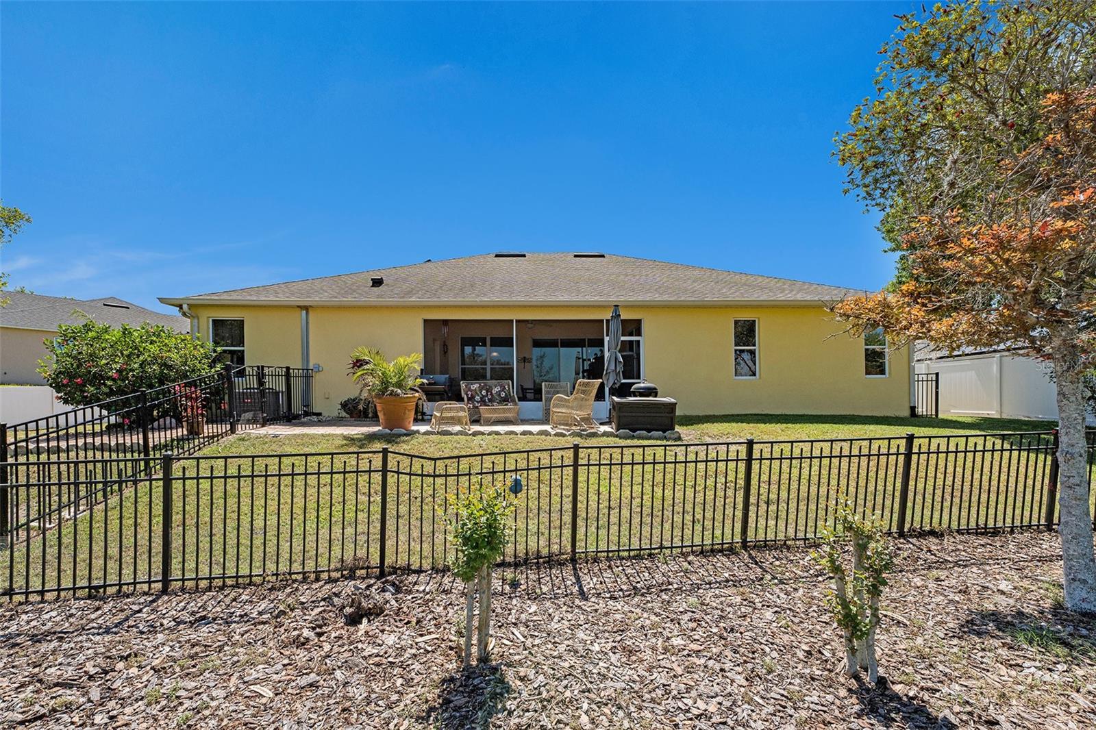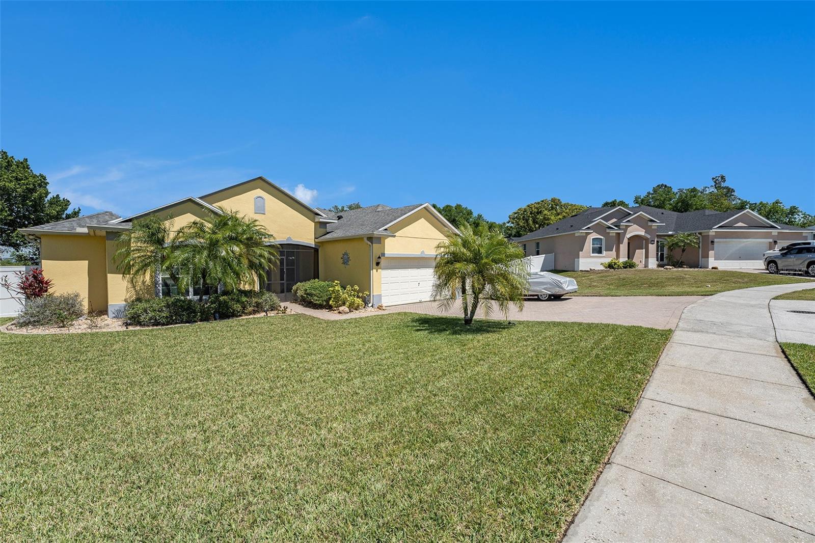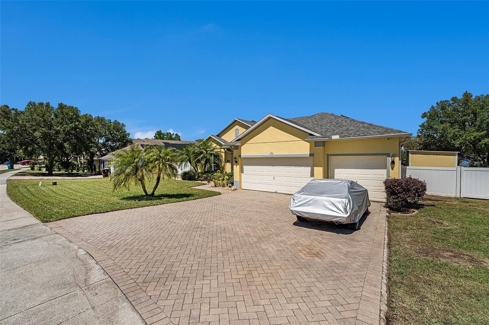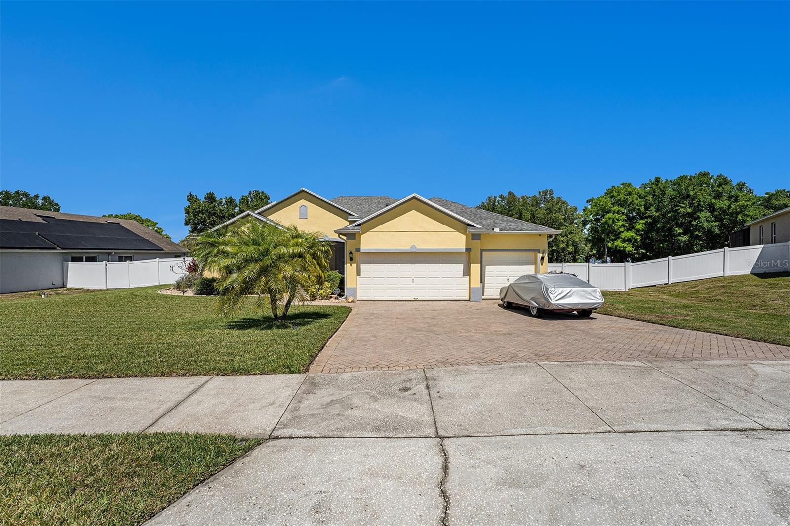 Enjoy the panoramic views from this Lake Wales Home. The spacious 2579 sf floor plan offers 4 bedrooms & 3 bathrooms, elegant foyer with interior arch leading to formal dining room and great room with breakfast nook. The kitchen features island and breakfast bar, oak cabinets, black and stainless steel appliances. Master suite has garden tub and separate shower. Tile flooring with carpet in bedrooms. Covered lanai with tile flooring. Outdoor brick patio offers lake views. 3 car garage. Brick paved driveway and walkway with front courtyard entrance. Property is fenced with attractive black railing.