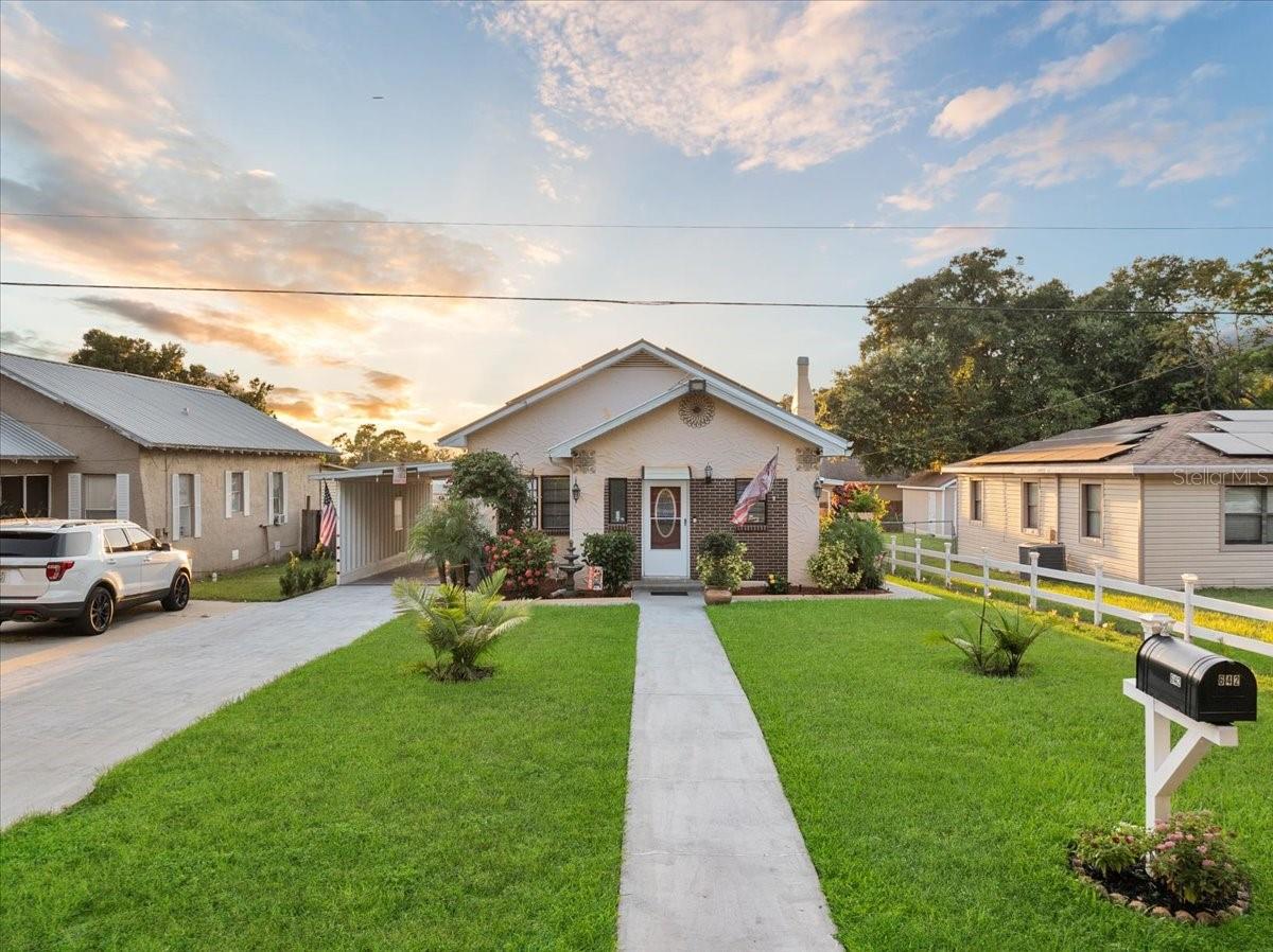A very welcoming well-maintained home in Lake Wales located in the Orange Heights Syndicate Community. The Main Home has three bedrooms, two bathrooms, a living room that features a fireplace, and an inside Laundry Room as well as a Covered Carport. The backyard is completely fenced and there is a covered porch area on the side of the home. The Detached In-Law apartment contains a Living room / Bedroom combo a Kitchen and a bathroom. This lovely home has a very open feel and plenty of natural light. Centrally located in Lake Wales close to shopping, schools, and medical. The house has Solar Panels. Call or text to schedule a showing today.