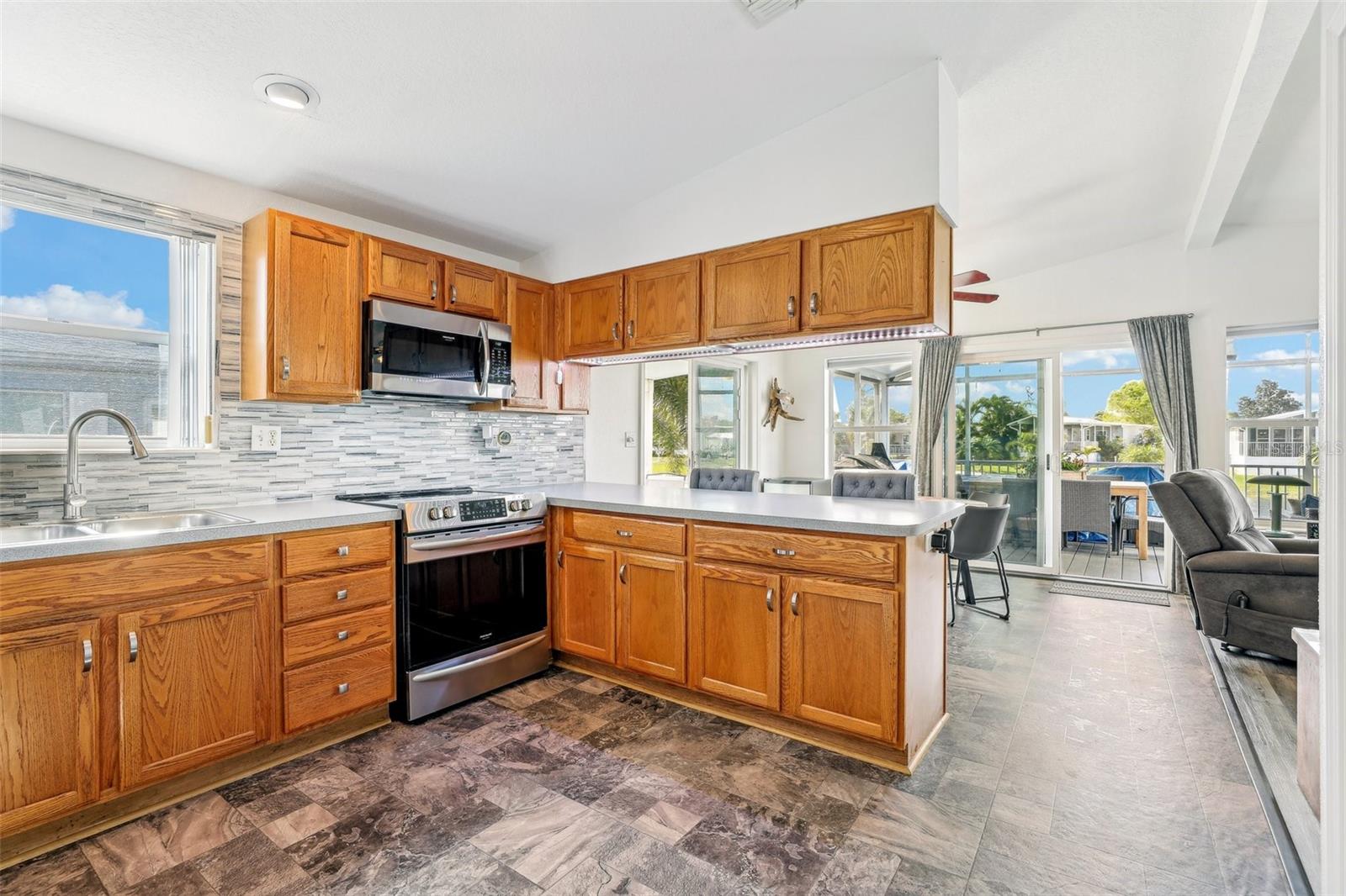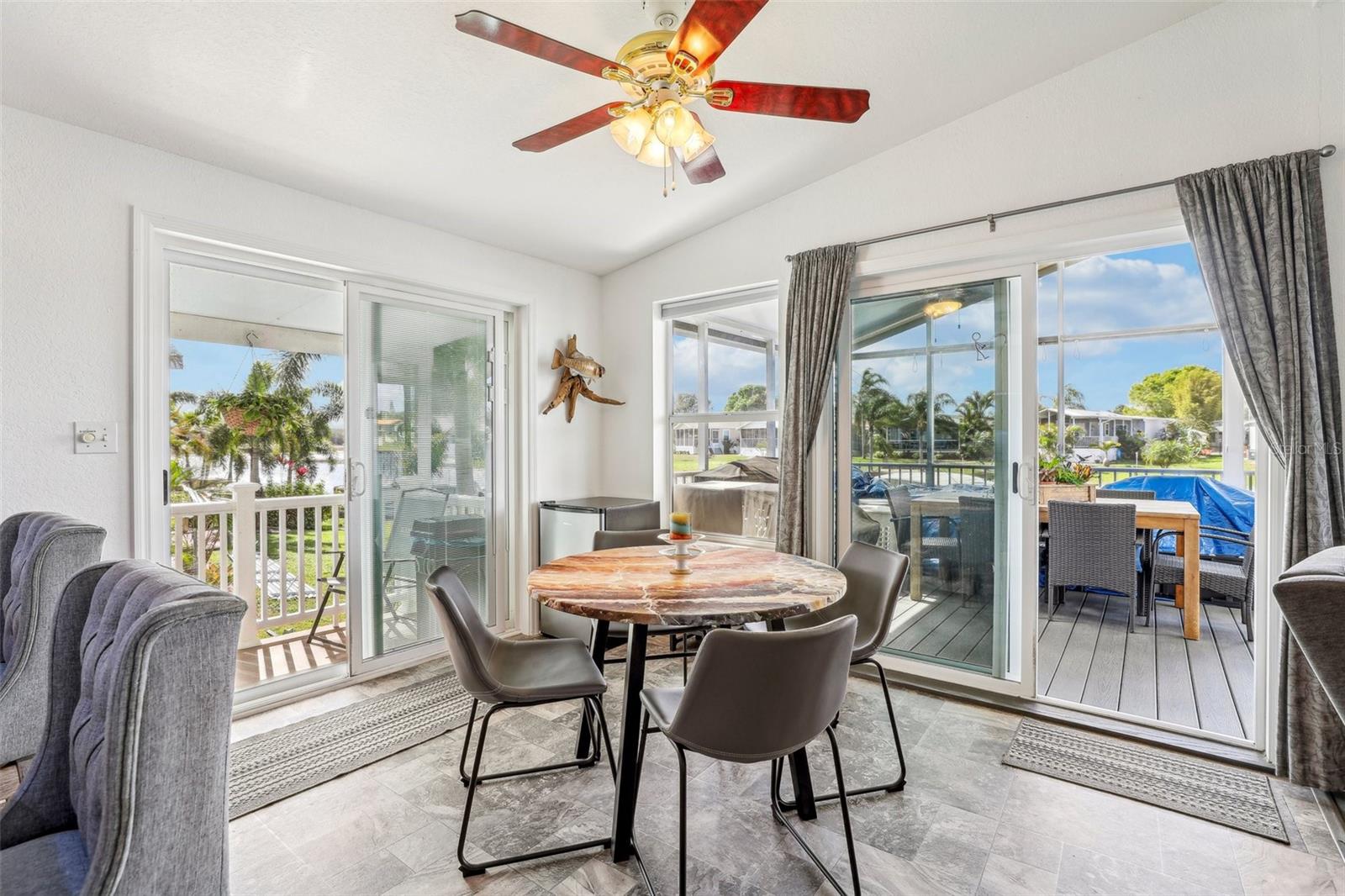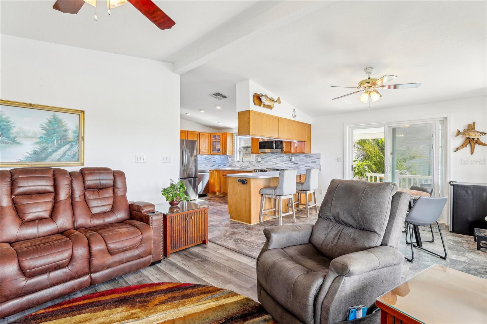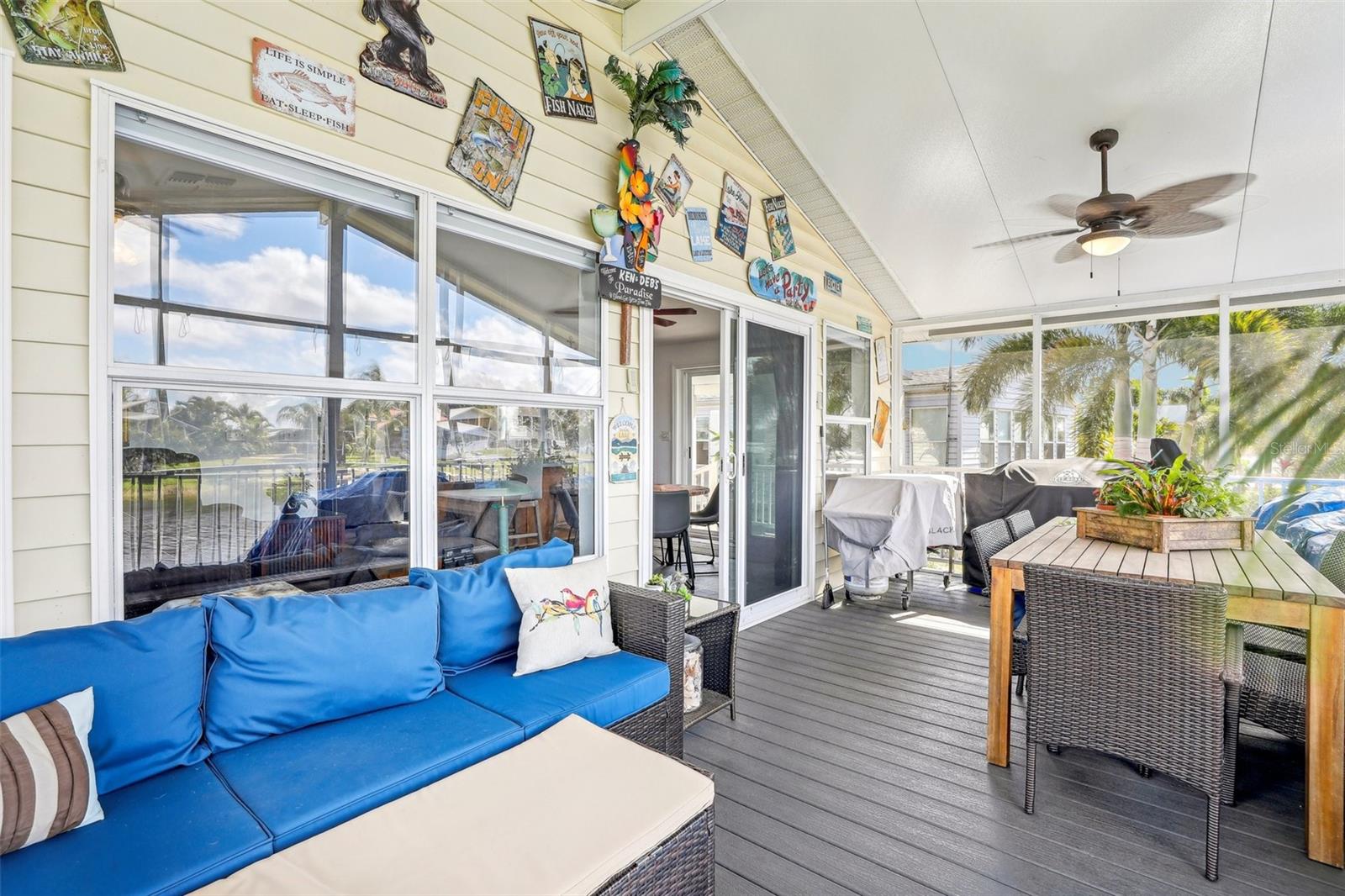 55+ Private Waterfront Home! Welcome to Saddlebag Lake Resort, a premier 55+ gated community where you can enjoy private waterfront living with your own pier and direct lake access! Whether you love boating, fishing, or simply relaxing by the water, this home offers the ultimate Florida lifestyle. Sit back and take in the serene views from your spacious 12x24 screened lanai, complete with ceiling fans with lights and roller shades for added comfort. A double driveway provides ample parking, and a 10x10x10 Smithbilt shed with AC makes a great workshop, man cave, or she-shed. This home is being sold turnkey and mostly furnished —just bring your suitcase and start enjoying life at the lake! (Please note: Lanai and front porch furniture does not stay.) Inside, the bright and open living room is filled with natural light, thanks to large windows showcasing water views. The sunny dining area offers picturesque scenery from multiple angles, while the roomy kitchen is designed for both style and function, featuring a snack bar for extra seating, a closet pantry, and wood cabinets with pull-out lower shelves to keep everything organized. The primary suite includes a private bath with Safe Step jetted walk-in tub with two showerheads. A dedicated laundry room provides additional storage space too. Recent upgrades ensure peace of mind, including a metal roof installed in 2023 and a Carrier brand HVAC system installed in 2020. Bonus! Boat & Golf Cart for Sale! For those who love exploring the water, a 2019 18ft Bennington boat with a 60HP Yamaha motor and trailer (2023) is available for purchase. A golf cart with new Trojan batteries is also for sale, perfect for getting around the neighborhood and enjoying everything the community has to offer. Beyond your private retreat, Saddlebag Lake Resort offers an unparalleled lifestyle with an incredible range of clubs, activities, and amenities. Residents enjoy: Clubhouse with full kitchen & planned activities, Swimming pool, hot tub, and sauna, Tennis & pickleball courts, Shuffleboard & horseshoe pits, Golf range, Billiards & game room, Library & exercise building, Dog park & dog wash station, Boat launch & community dock. Keep your calendar full with community events like Bingo, craft groups, potlucks, card games (euchre, rummy, bridge, etc.), block parties, and Canada Day celebrations. One of the highlights of the year is the Christmas boat parade and golf cart parade, where residents decorate their boats and carts with festive lights and music, creating a magical holiday experience! Whether you're looking for an active lifestyle or a peaceful retreat, this home and community offer the best of both worlds. Schedule your private tour today and experience the Saddlebag Lake lifestyle for yourself!