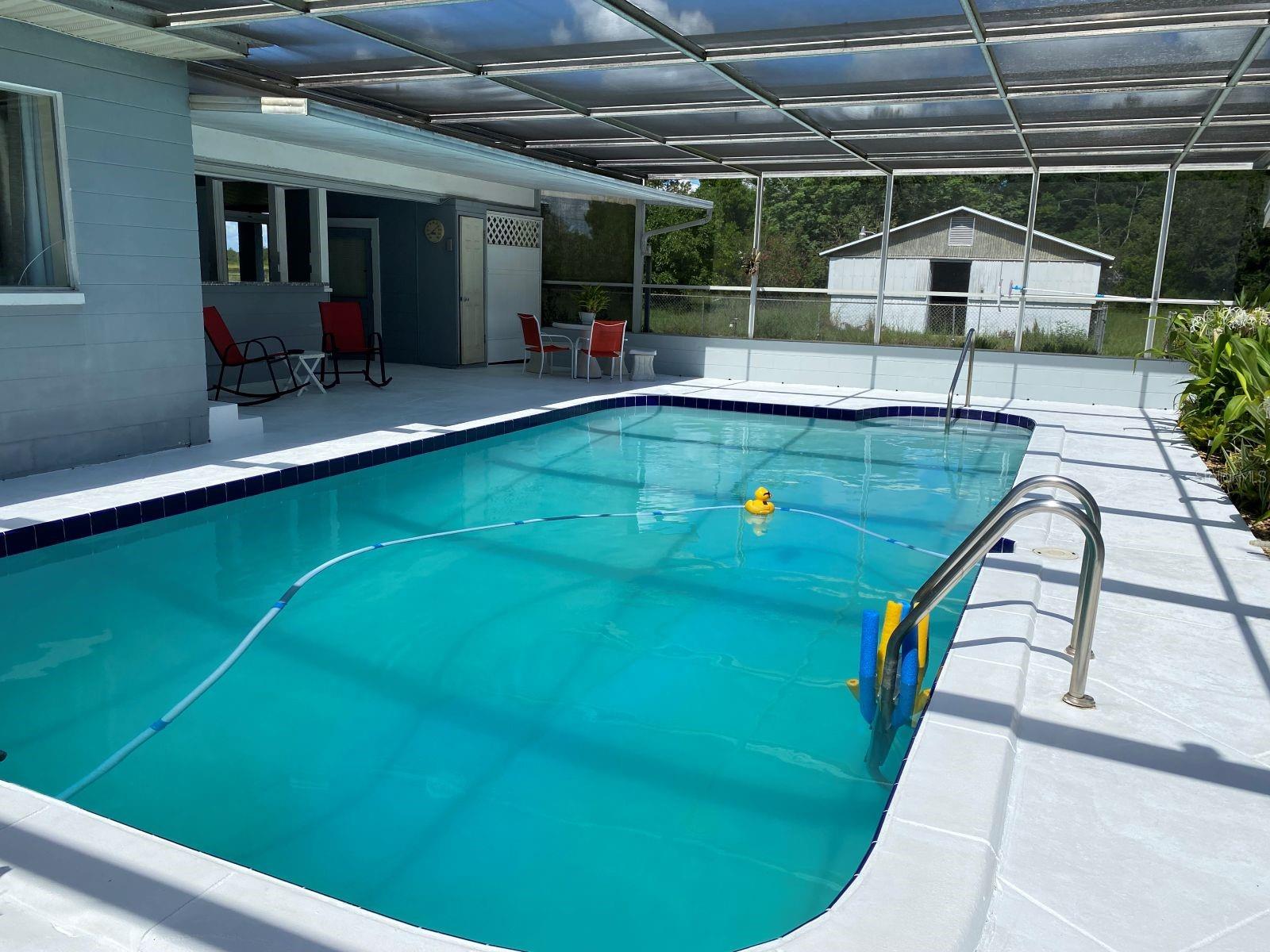 Discover the charm and peaceful country life of this delightful 3-bedroom, 1 bathroom pool home. It is a move-in ready haven! Enter through the fenced in yard and access the house from the porch front door or the carport pool door. This farmhouse has been used as an airbnb since 2018. The Kitchen has a walk-in pantry and the appliances are just several years old. The eat in kitchen is a highlight as you can see into the spacious living room enjoying your favorite movie! The master bedroom has decorative barn doors, a shiplap wall and room for a seating area. It was renovated in 2023 and has pool access through the sliding glass doors and a beautiful view of the swimming pool. Two other bedrooms have also been tastefully decorated. The bathroom shower has marble tile on the walls and a closet for your towels and bathroom supplies. You will love relaxing by the pool in your rocking chair or having a sunset dinner by the pool table or using the pool bar table for a buffet. There is a small office or utility room by the pool area, we use it for our supply room. This home comes completely landscaped with plants not only in the pool area but also on 4 sides of the house. There are 3 sprinklers that are stationed on the fence that can manually be turned on for partial irrigation. There is a Mulberry, Lemon and Pecan tree and multiple pineapple plants in the yard. The washing machine, six windows and the front door have been replaced in the last several years along with a new garage door opener and keypad in 2025. Behind the pool is an addition Garage and work area 32 X 24 that adds an additional 768 sq ft. Plus, a second carport behind the garage that is 24 x 12 and adds another 288 square feet bringing total under roof 3,048 square feet. The last several photos feature the property next door which has a 1728 sq ft 72 x 24 greenhouse-workshop (or could be a kennel) and 3 huge concrete slabs. It can also be purchased with this property or have 1st option to purchase in the future for an additional $100,000. If you prefer a little country life and more privacy then don't miss the opportunity for this unique property, make this house your home!