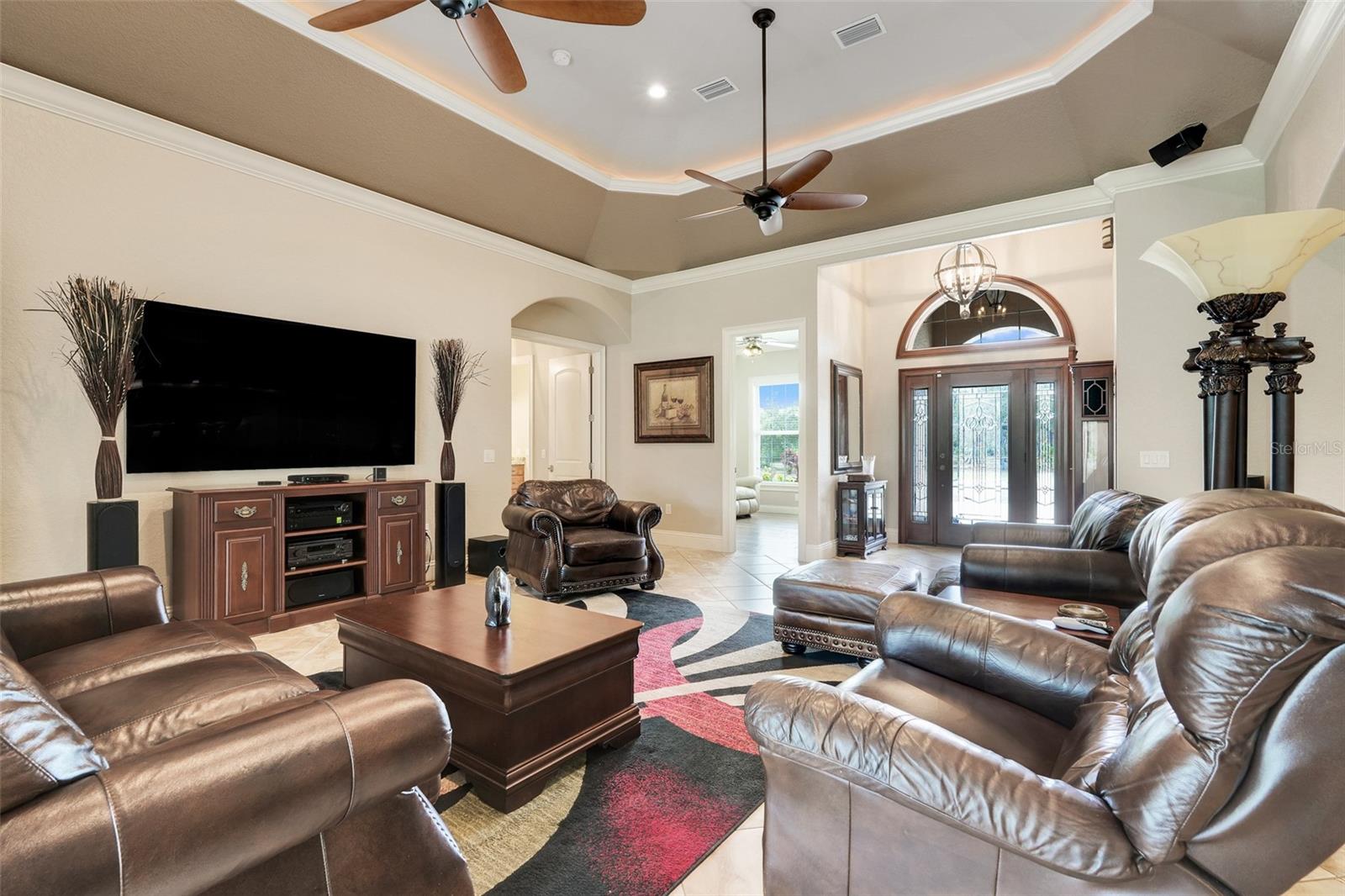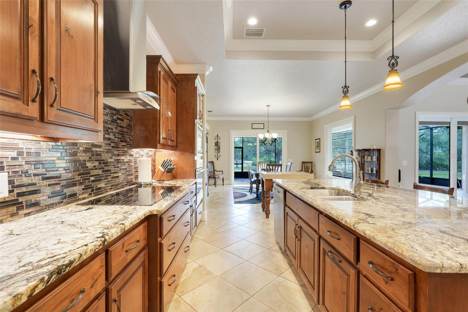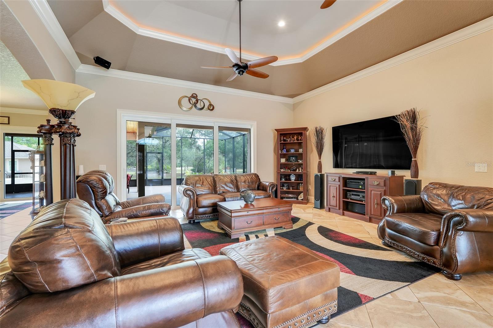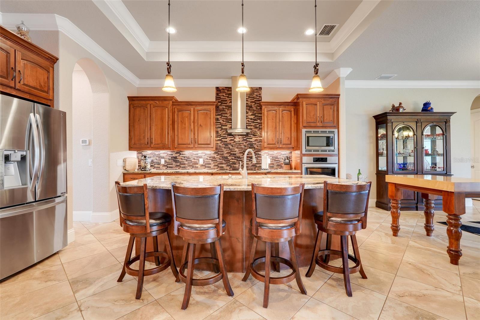 Welcome to a One-of-a-Kind Energy-Efficient Custom Home with Workshop & Outdoor Kitchen in Lake Wales, FL! This is ‘A MUST SEE!’ Make this custom-built, energy-efficient gem your forever home! Nestled on a private, gated 4.79-acre oasis in Lake Wales FL, this stunning 3-bedroom, 3-bathroom home boasts 2,999 sq ft of luxury living with unmatched craftsmanship and efficiency. Step through a solar-powered gate and into elegance via a solid mahogany front door with patina leaded glass. Inside, soaring 10’–14’ ceilings and oversized crown and base molding set the tone, complemented by ambient rope lighting in the great room, primary suite, and above the custom Knotty Alder kitchen cabinetry. This kitchen boasts top of the line stainless steel appliances, Bosch induction cooktop, oven, microwave, LG French Door Refrigerator and an Electrolux 45 Bottle Wine Cooler. Designed with energy performance in mind, this 2016-built home features, Dual Trane 17 SEER HVAC units with hard cast ductwork and individual room return vents. The R-56 insulated attic with foil-backed decking has three solar vents for air circulation. All exterior block walls are Foam-filled with polystyrene board insulation, enjoy the Argon-filled Low-E insulated windows with wood casings, Two Rinnai tankless water heaters, Porcelain tile flooring (reinforced with Schluter DITRA underlayment) extends through high-traffic areas, while both primary suites has custom closet systems. For peace of mind, a reinforced safe room with concrete block walls, 5/8” rebar, and a steel door is built to withstand extreme weather. Perfect for entertaining, the home opens to an 18’ x 12’ screened lanai with a knotty wood ceiling, four ceiling fans, and built-in audio. The adjacent outdoor kitchen includes a Built-In gas grill and LG range with stainless steel vent hoods, granite countertops, faux rock finishes, and ample cabinetry. Bonus features include, a 1,560 sq ft fully serviced, insulated, and AC-cooled workshop with 200-amp electrical service and a 1,300 sq ft front pad—ideal for conversion to living space, Oversized insulated garage doors (18’ x 8’) with R-56-rated insulation, Zoned sprinkler system with raised garden beds and a dedicated water line, 8 security cameras, LED lighting, abundant electrical outlets, Generator-ready electrical/propane hookup, Finished RV pad with underground electric. Located just 15 miles from Legoland and under an hour from Disney World, this exceptional property offers luxury, sustainability, and privacy, making it a true hidden gem in Central Florida. Schedule your private showing today and fall in love with your forever home!
