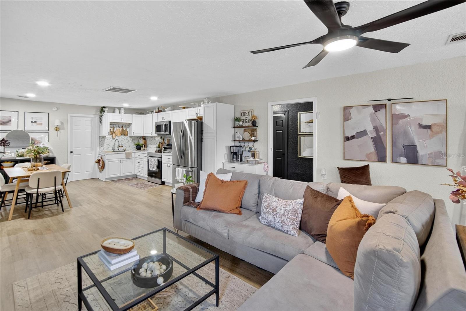 This fully renovated home offers the tranquility you’ve been searching for. Relax in the spacious living room with views of the neighborhood pond, or retreat to the cozy bedrooms for a well-deserved recharge. A versatile flex space provides extra room for kids, a home office, or hobbies. Love to entertain? The expansive backyard is perfect for family gatherings, celebrations, or simply enjoying the outdoors. The long driveway offers plenty of parking—and with no HOA, you’ll have freedom without the hassle. Conveniently located near downtown, shopping, schools, medical facilities, government offices, and a community park with a playground just a mile away. This home has been completely renovated in 2023, featuring luxury vinyl plank flooring, fresh stucco and siding, new windows, doors, light fixtures, ceiling fans in every room, and a hidden pocket door that separates the living area from the bedrooms—ideal for gatherings. Major updates include a new roof, HVAC system, and hot water heater. Don’t wait—schedule your private showing today and make this move-in-ready home yours.