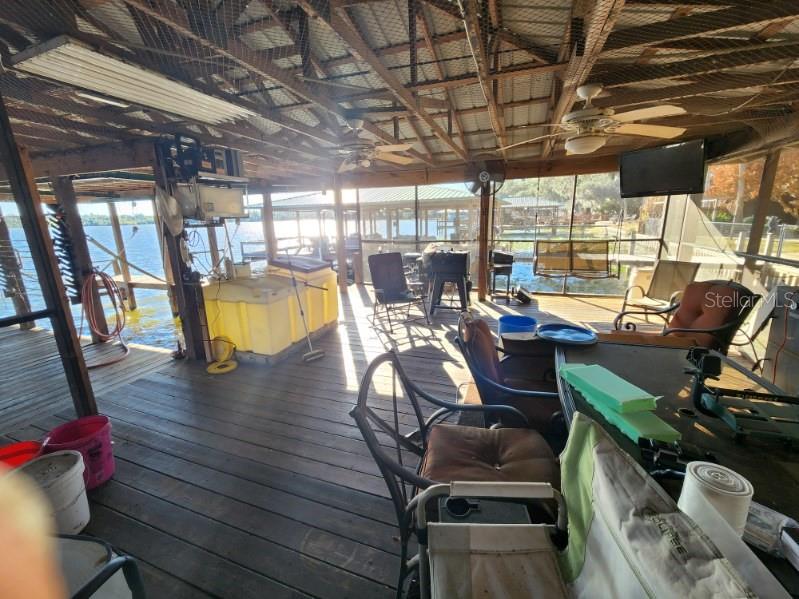 9428 Cat Track Trail is located on a unique inlet of Lake Walk-in-Water in Central Florida. Walk-in-Water Lake is the largest lake in Polk County and has long been recognized as the premier bass fishing lake in Central Florida. The Unique inlet shields the dock from typical winds prominent in Florida most of the year. Great fishing and boating activities abound on this lake. This property has the largest dock under roof on the lake. Featuring a 37 ft. x 53 ft. or 1,950 sq. ft. dock under roof and an 8 ft. x 21 ft. fishing pier. The dock has water and electricity plus a 250 gallon live shiner holding tank, two large boat slips with electric boat lifts, partial kitchen with granite top island including sink. This house is a split level with two large family/game rooms, 4 full baths and easily sleeps 12 or more people. 3 Bedrooms and several other beds are located in unique areas throughout the upstairs area. 3 complete kitchens and plenty of room for family and guests. Metal roof, washer/dryer and fridge to remain, with a garage and carport. Well water Irrigation system and complete automatic water filtration system provides excellent drinking water. This is a sportsman's paradise and weekend or second home dream. Many areas have been remodeled or rebuilt. Seller motivated due to family illness.