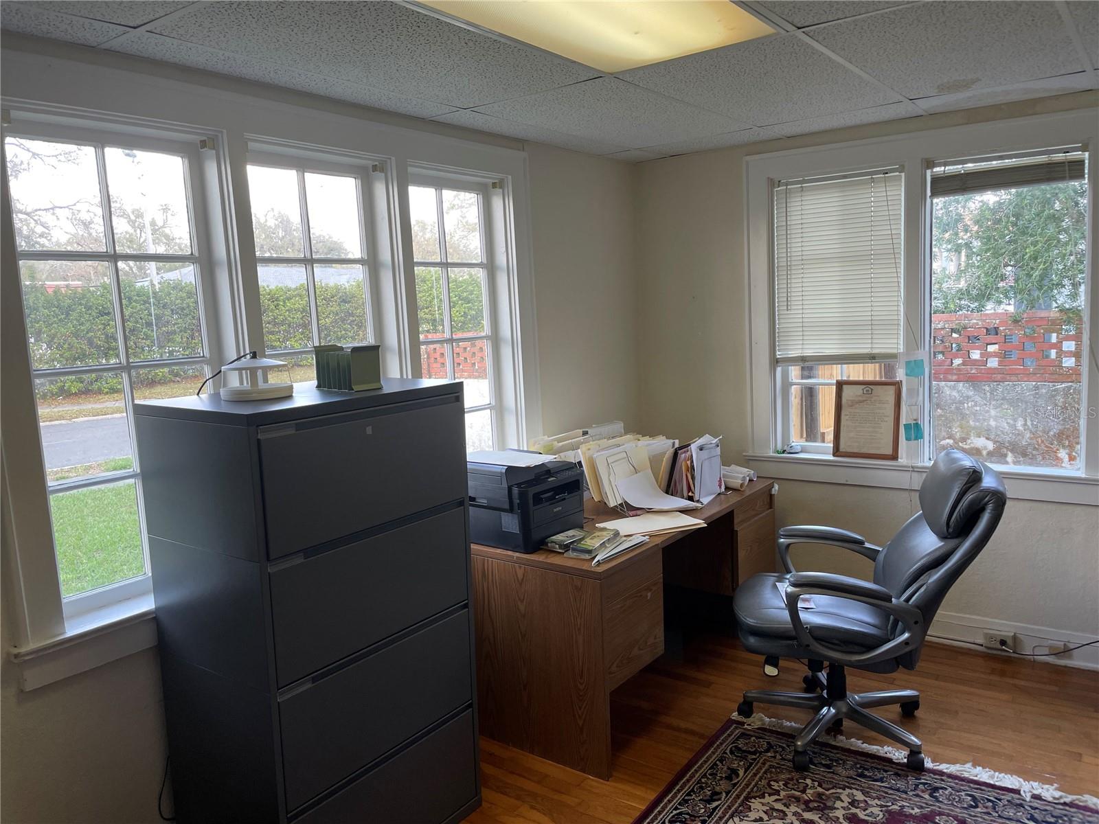 One of Lakeland’s charming historic buildings, ideally situated in a convenient location close to popular restaurants and local amenities. This versatile property is zoned O-1, allowing for a variety of uses including professional office space or a potential bed-and-breakfast. The first floor features a welcoming reception area, two private offices, a kitchen, and a half bath—well suited for client-facing operations. Upstairs, you’ll find three additional offices and a full bath, offering flexible space for staff, meeting rooms, or private suites. Throughout the property, original hardwood floors have been recently refinished, preserving the building’s historic character while providing a fresh, updated feel. Ample on-site parking adds to the property’s convenience for employees and guests alike. An outdoor storage shed measuring 17 x 17 provides additional functional space. This is a rare opportunity to own a well-maintained historic property with modern functionality in a highly desirable Lakeland location.