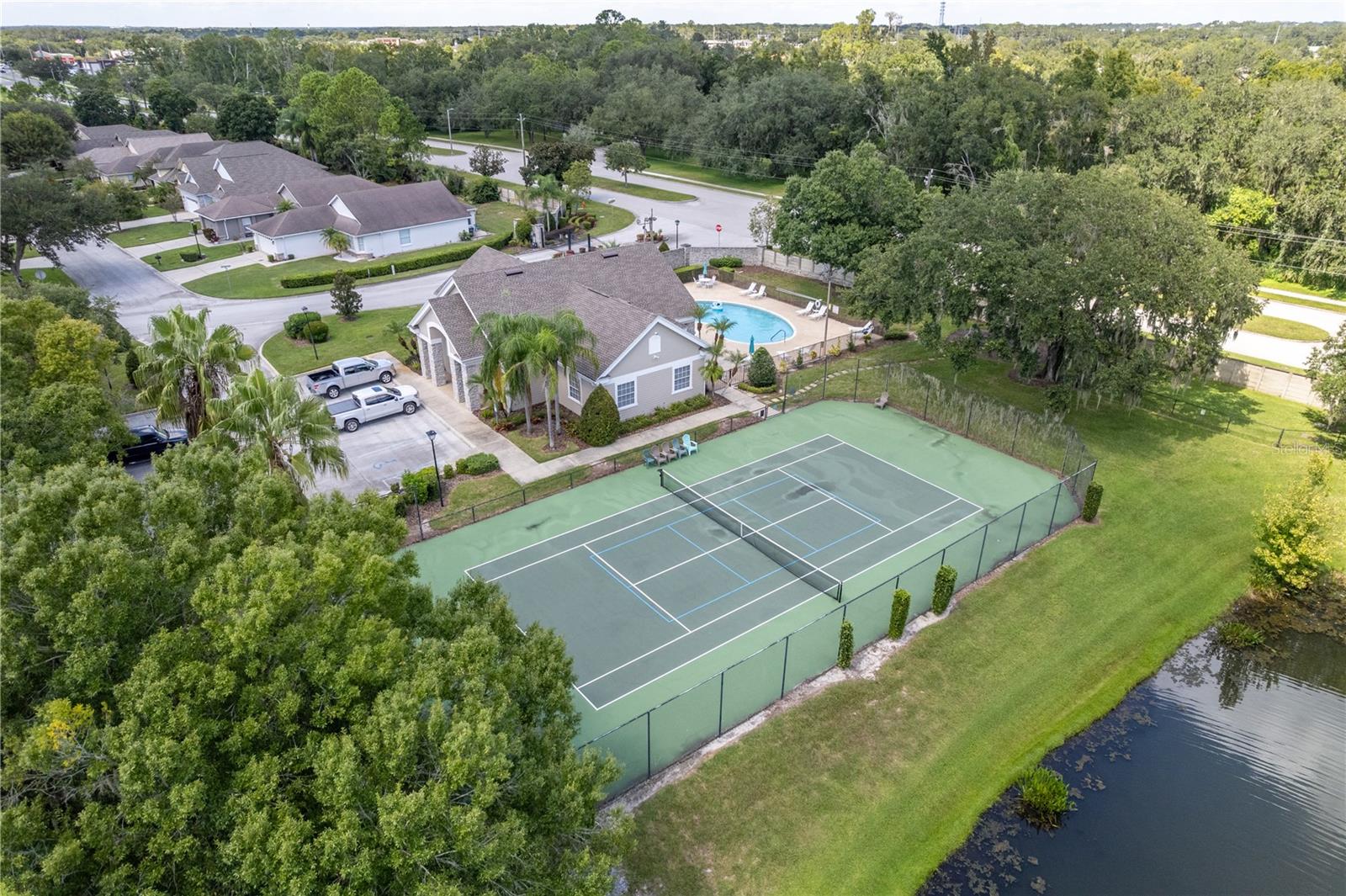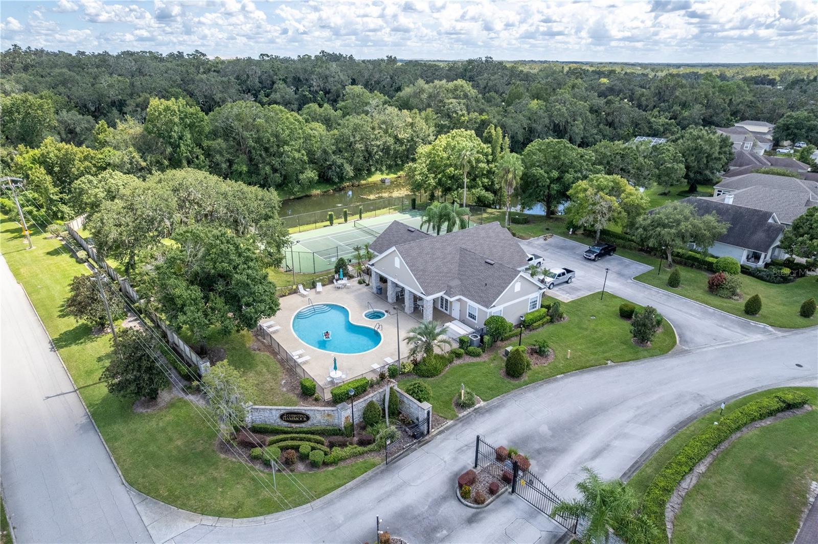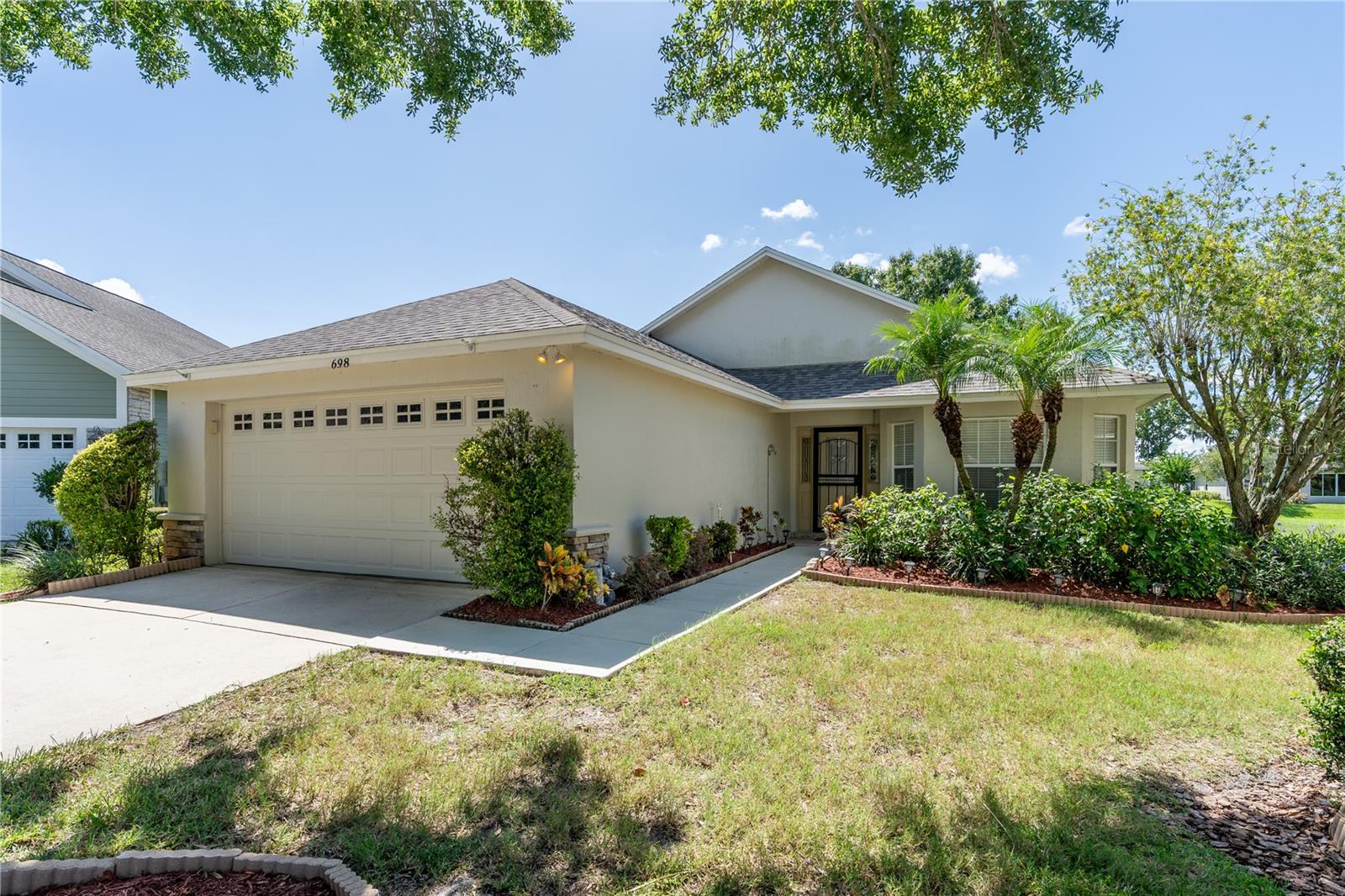 Welcome to 698 Lake Clark Place, a beautifully maintained 3 bedroom, 2 bathroom home located in the gated community of Christina Hammock. This residence offers a desirable split floor plan with impressive 12-foot ceilings in the living room and an abundance of natural light throughout. Recent updates provide peace of mind, including a new roof (2021), new air conditioning unit (2021), new stove and microwave (2022), new water heater (2022), new garbage disposal (2022), exterior paint (2023), and brand-new gutters (2025). The spacious screened lanai overlooks a tranquil pond with wildlife, ensuring no rear neighbors and providing a private retreat right in your backyard. Nestled at the end of a quiet cul-de-sac, this property also features beautiful landscaping and excellent curb appeal. Enjoy the community tennis court, gym, pool, and clubhouse all within just a few minutes' walk from the home. Move-in ready and situated in one of Lakeland’s most sought-after communities, this home combines comfort, convenience, and Florida living at its best.