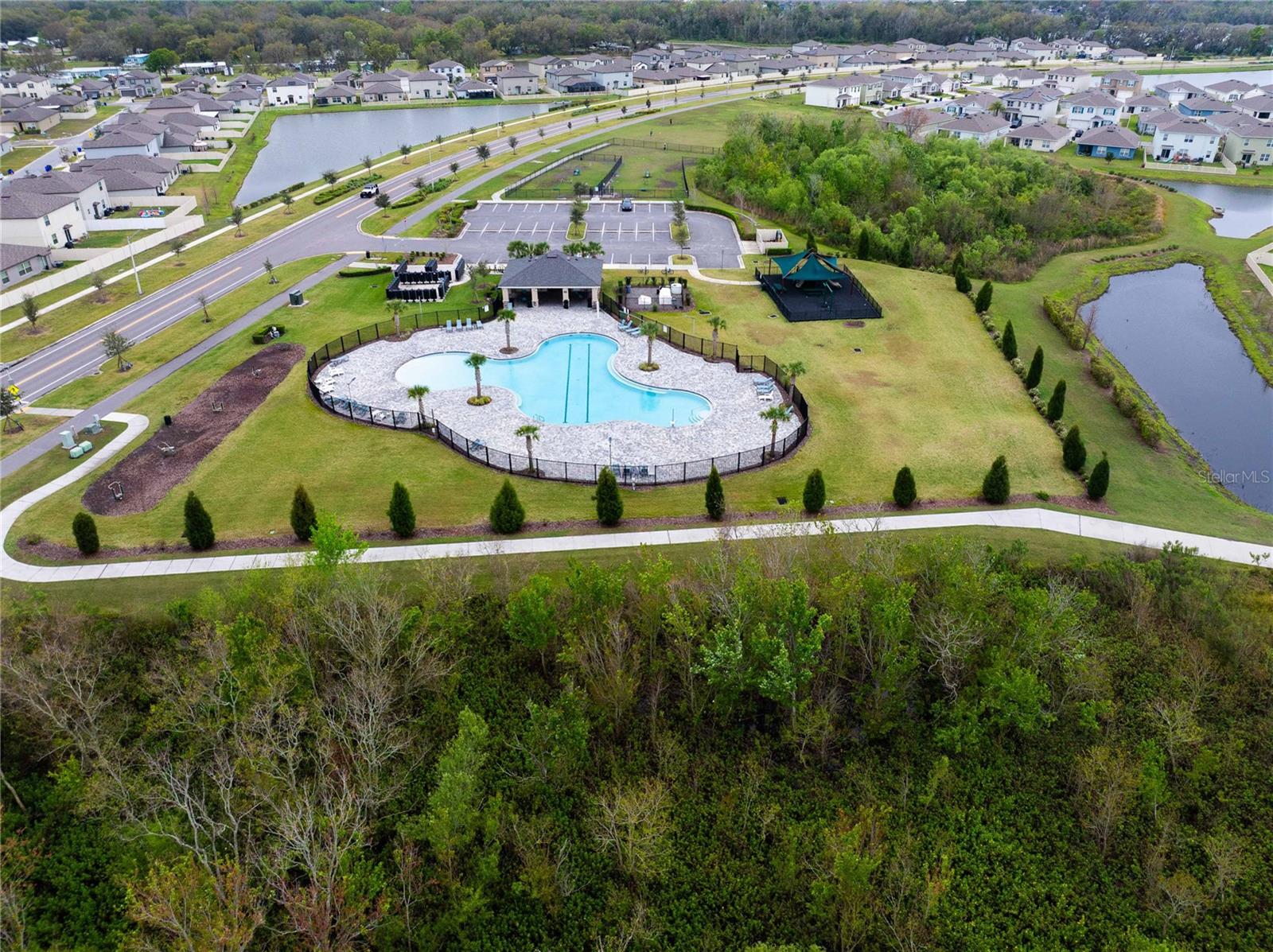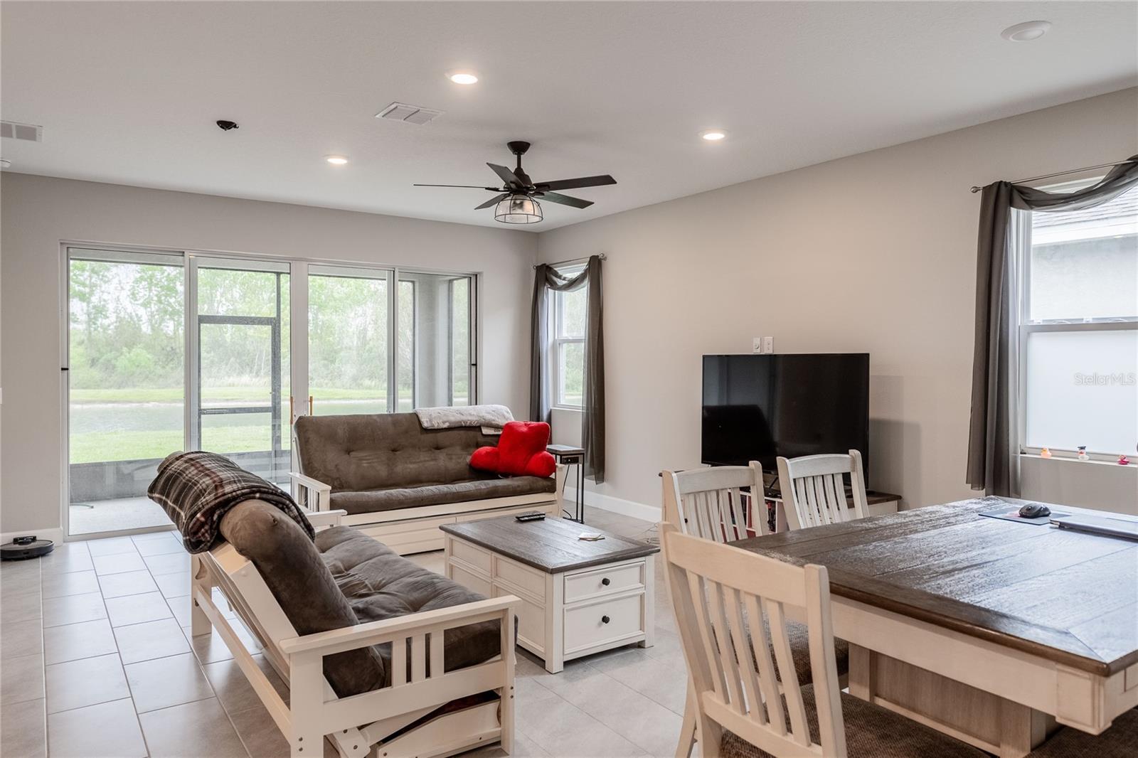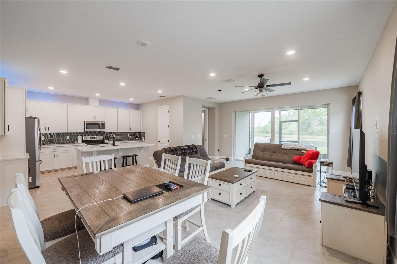 NOT QUITE READY TO BUY? MOVE IN NOW and RENT TO OWN with a LEASE/OPTION OR LEASE/PURCHASE. YOU CAN ENJOY RESORT STYLE LIVING IN THE RIVERSTONE COMMUNITY, in southwest Lakeland. YOU WILL HAVE ACCESS TO 2 RESORT STYLE POOLS, WALKING PATHS, OUTDOOR EXERCISE AREA, DOG PARK, PLAYGROUNDS and MORE. The OPEN FLOOR PLAN has a 3-WAY SPLIT, offering everyone their own personal space with a spacious gathering area. The STONE ACCENTS and GLASSED ENTRY DOOR elevate the look of the exterior. At the entry, the long foyer has a convenient closet and 8 FT. DOORS throughout adding to the spacious open plan. At the back of the house, the PRIMARY BEDROOM also with a water view, is tucked away with an ENSUITE BATH complete with separate shower and tub, behind a frosted barn door. At the front of the house the 2nd BEDROOM ALSO OFFERS an ENSUITE BATH with a shower. Across the foyer at the front of the house there are 2 additional bedrooms that share a hall bath with shower and tub and a linen closet. Also, at the front of the house, the 2-car garage opens directly across from the INDOOR LAUNDRY ROOM. An ISLAND KITCHEN is open to the family room and dining area. The island serves as a food prep area, breakfast bar and a "how was your day?" gathering space. Just off the family room is a screened patio with a calm POND VIEW, with NO BACKYARD NEIGHBORS. This is a great place for coffee or a cool drink any time of day. Ride through the neighborhood, you'll probably see someone walking, jogging, riding their bike or cooling off in one of the pools. Call to view this home, it's always our pleasure to show.