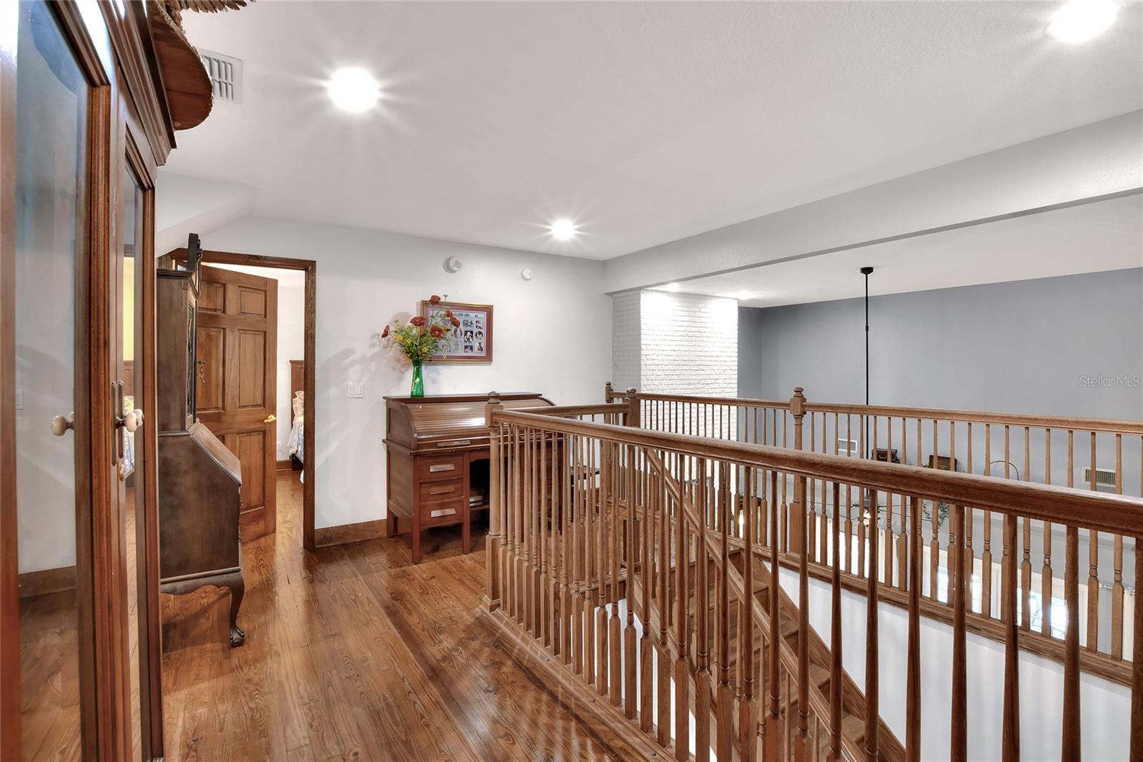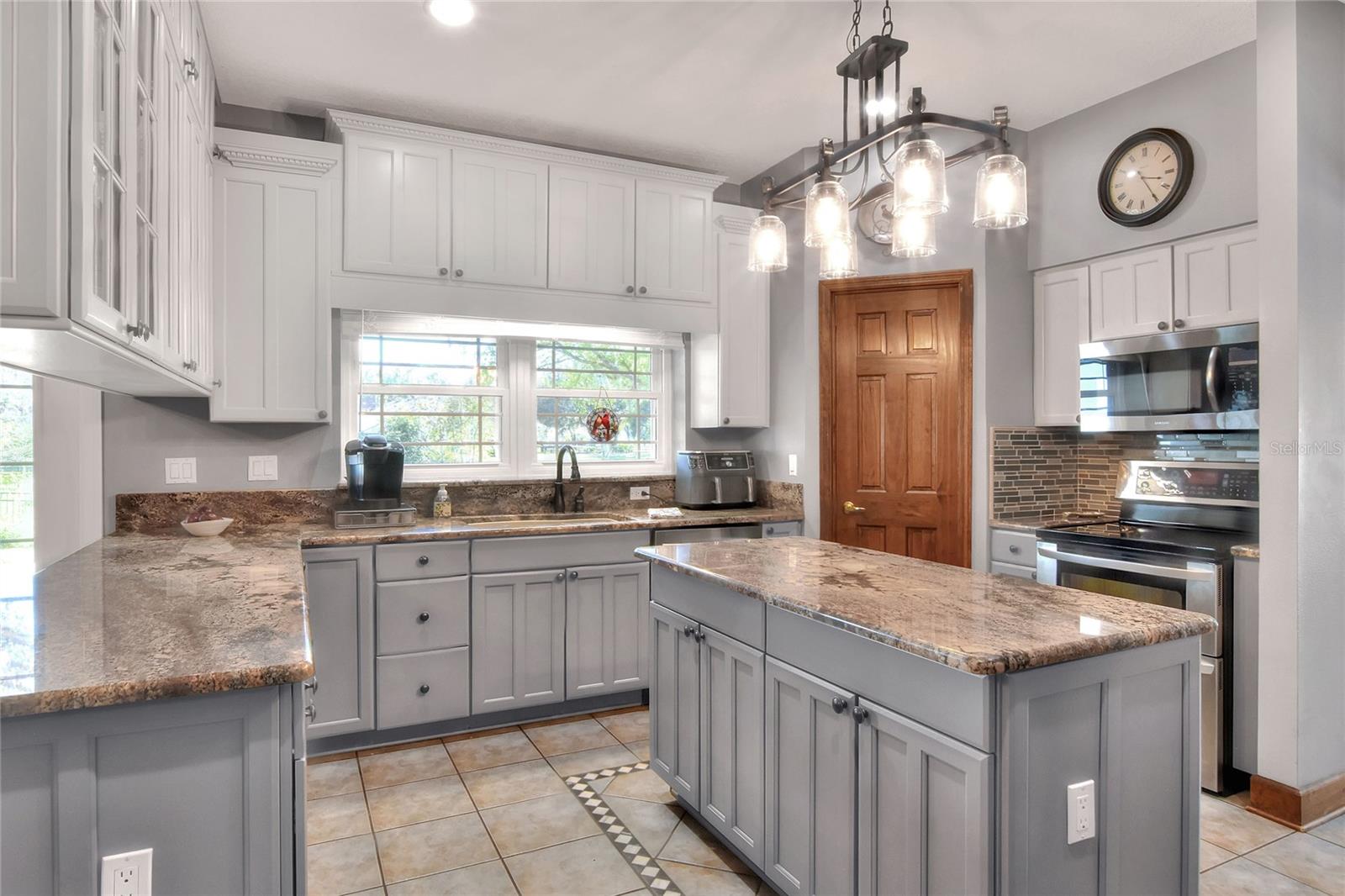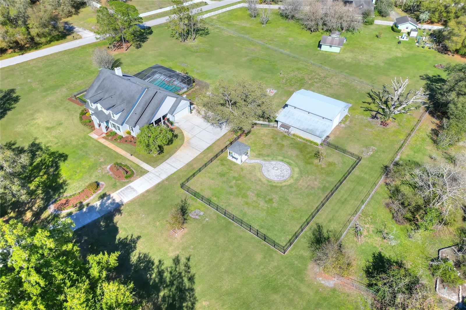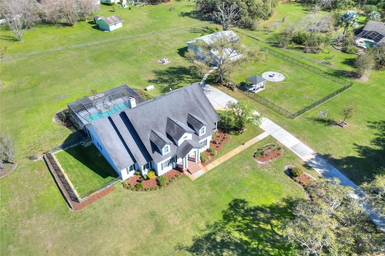 STUNNING & Spacious Retreat on 2.62 Acres! Step into this breathtaking 3,188 sq. ft. home, where comfort and elegance meet. Featuring 4 bedrooms and 3 full bathrooms, this property has everything you’ve been looking for! As you round the corner, you’ll instantly fall in love. The charming side porch invites you to relax before you even step inside. Once through the door, a Gourmet Kitchen awaits—complete with granite countertops, an island, a true walk-in pantry, and ample cabinet space for all your storage needs. The Family Room boasts soaring ceilings and seamlessly opens to a screened-in lanai overlooking the pool—perfect for entertaining or unwinding with a refreshing swim. The Primary Suite, located on the first floor, is a true retreat with French doors leading to the pool area, inviting in a gentle breeze. The luxurious En-Suite Bathroom is newly updated, featuring a spa-like soaking tub and a modern shower. Also on the first floor, Bedroom 2 offers wheelchair accessibility and generous space. Entertain effortlessly in the Formal Dining room with beautiful unique stained glass windows, 10-ft ceilings, large enough for all your family gatherings. A versatile Flex room serves as a living area, office, study, or home gym—tailored to your needs, you decide! Upstairs, a beautiful wood staircase leads to a loft, flanked by two additional bedrooms with real hardwood flooring. A stylish bathroom with quartz countertops and updated tile completes the space. Let's step outside and experience the 2.62-acre property—a private haven with endless possibilities! A HUGE 30x60 SHOP with double doors provides ample storage for tools and toys. The fenced-in pavilion area features a pavered fire pit, perfect for gatherings under the stars or outside movies on the barn. Windows and doors are double paned installed in 2019. This home is a rare gem you will fall in love with—don’t miss your chance to make it yours!