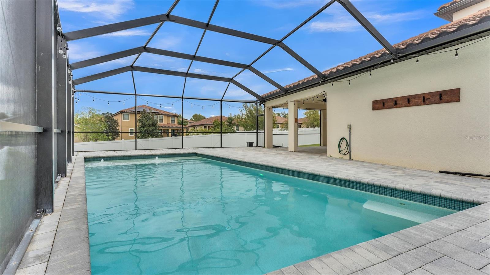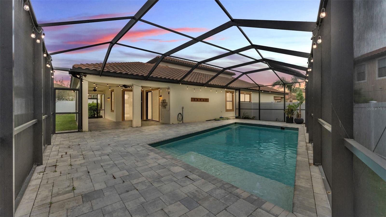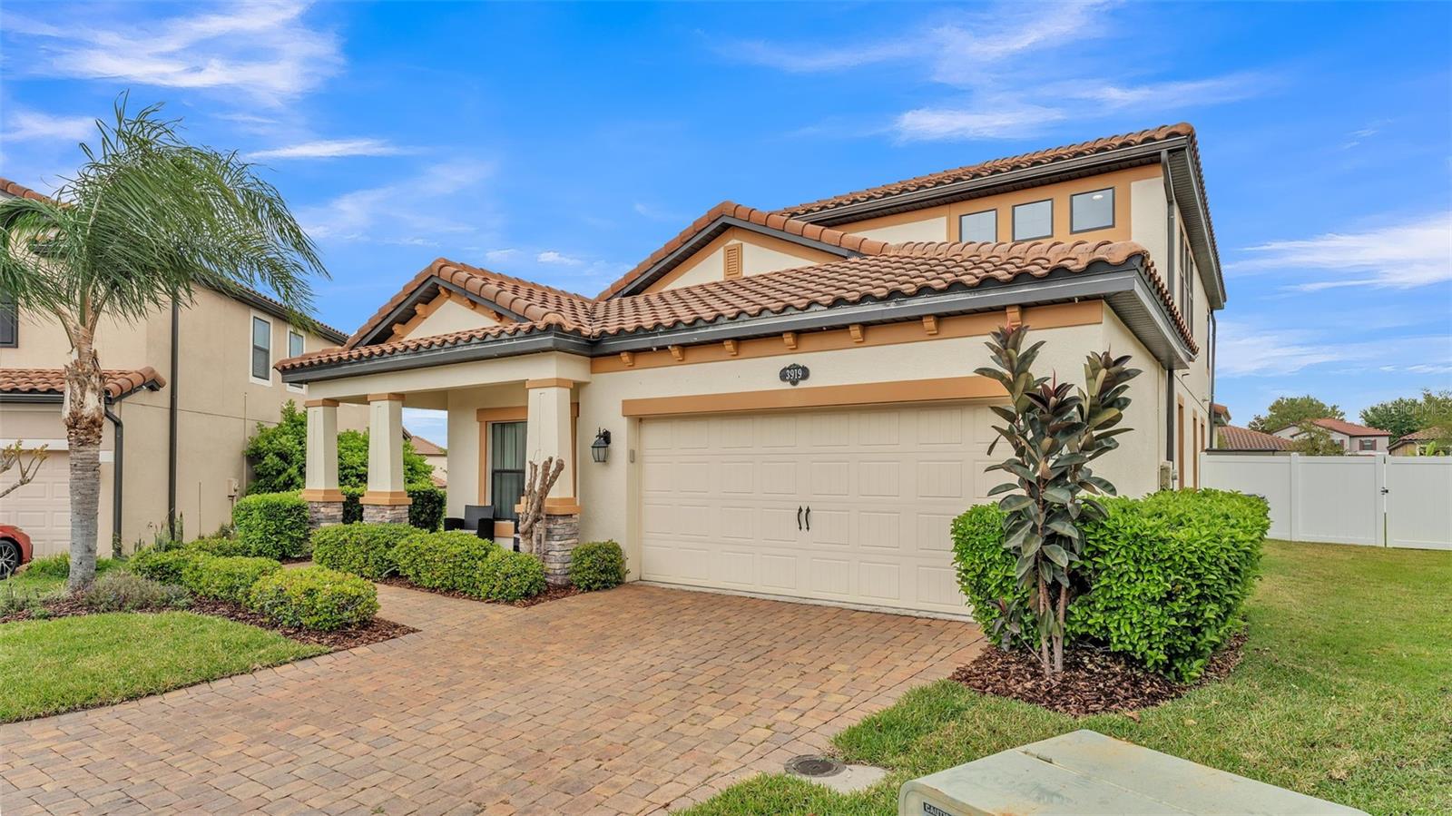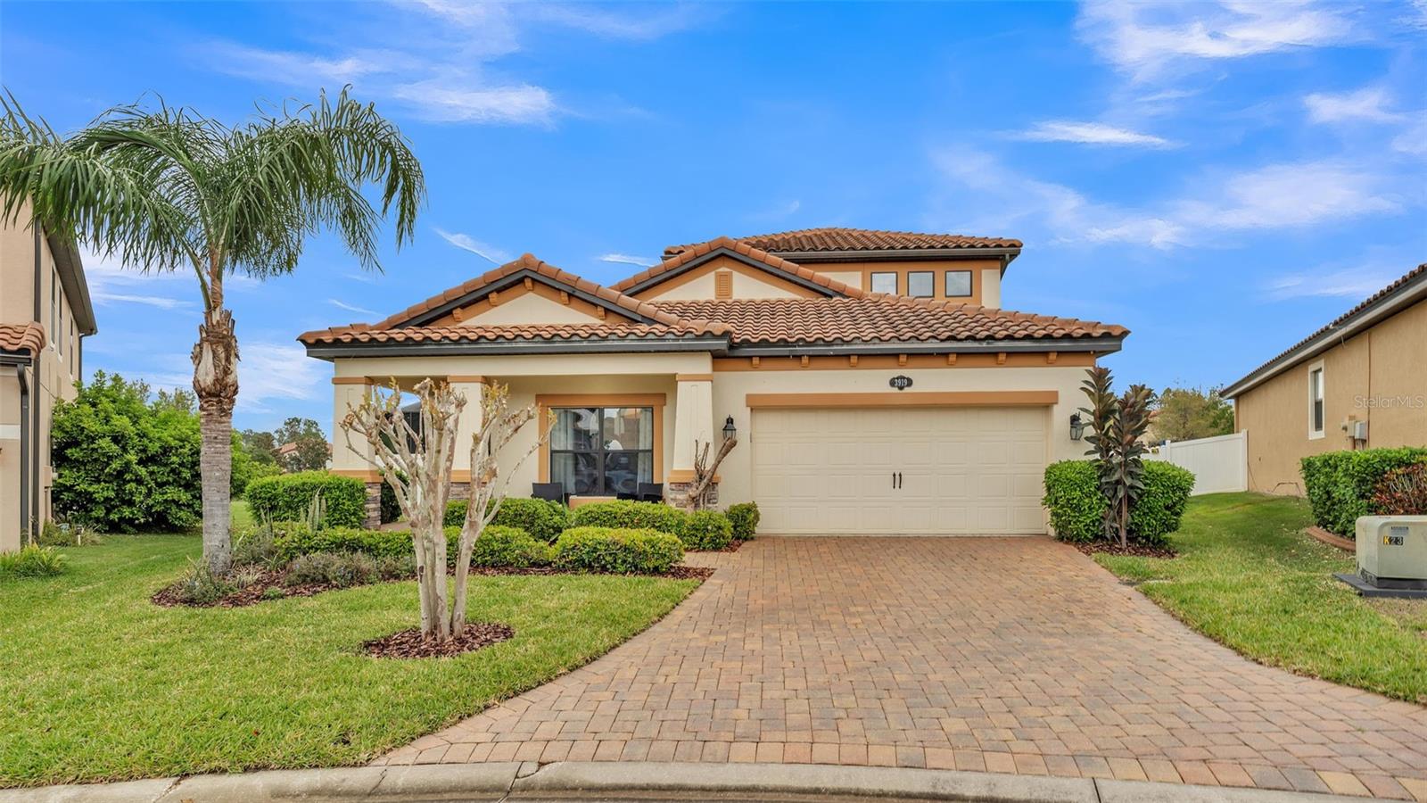 One or more photo(s) has been virtually staged. ACT FAST!! SALT WATER POOL HOME with new price improvement!! Welcome to your dream home nestled in the sought-after gated community of TerraLargo! This luxury M/I homes built residence sits on a serene cul-de-sac and offers the perfect blend of elegance and comfort. With 4 spacious bedrooms, 3 full bathrooms, this home also features a private office/study, and a versatile bonus loft/media room upstairs. Set on a generous 1/4 acre, the backyard is a true retreat, fully fenced with elegant vinyl fencing and adorned with exquisite pavers that extend across the lanai. The highlight of the outdoor space is the inviting screen-in, SALT WATER pool, complete with a tanning shelf—ideal for relaxation or entertaining guests in style. As you approach the home, you'll be charmed by the Spanish-tiled roofing, mature landscaping, and a quaint front porch that beckons you to sit and enjoy the view. Inside, the kitchen is a culinary dream, featuring elegant white cabinets, dual ovens, a hooded range, a stunning granite island, and a beautiful backsplash that adds a touch of sophistication. The primary/master bedroom is conveniently located on the first floor, boasting a private entrance to the outdoor lanai. Its luxurious en suite bathroom offers a tranquil soaking tub, a private shower, a toilet stall, and dual sinks with granite countertops. Upstairs, you’ll find the versatile loft/media room, perfect for family gatherings or movie nights, along with the fourth bedroom and a third bathroom, making it an ideal space for teenagers, guests, or a mother-in-law suite. Living in TerraLargo means enjoying resort-style amenities, including a fabulous clubhouse, zero-entry sparkling pool with swimming lanes, a spa hot tub, a fitness center, a covered play area, and court for tennis, basketball, and pickleball. Conveniently located close to highway 1-4 & 98, shopping plazas, banks, restaurants, and major medical facilities, and nearby theme parks. This home truly has it all within this vibrant community. PLUS the HOA includes their cable and internet for your convenience! This exceptional home combines luxury, comfort, and functionality, making it a must-see! Schedule your private showing today and experience the lifestyle this remarkable property has to offer.