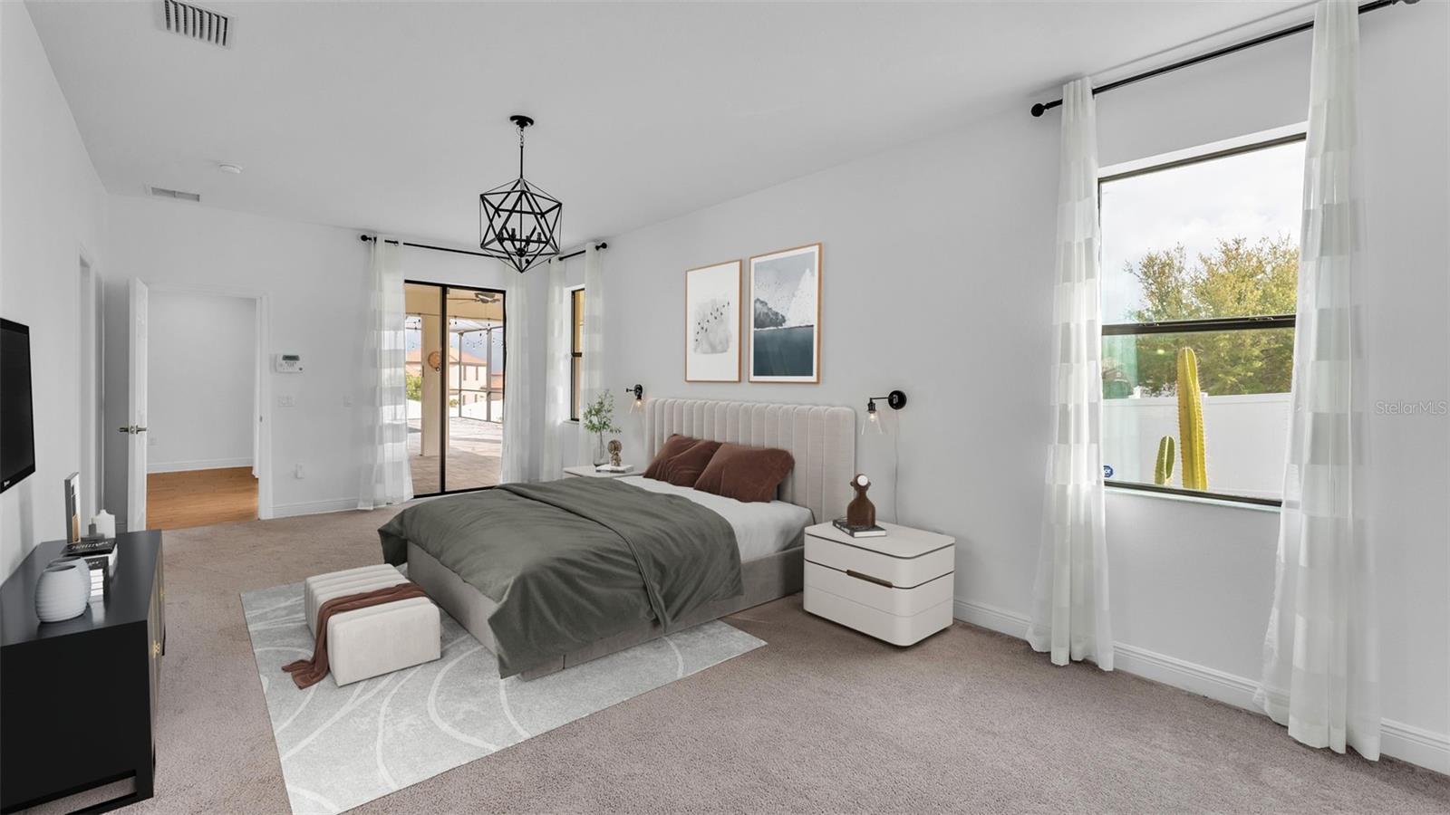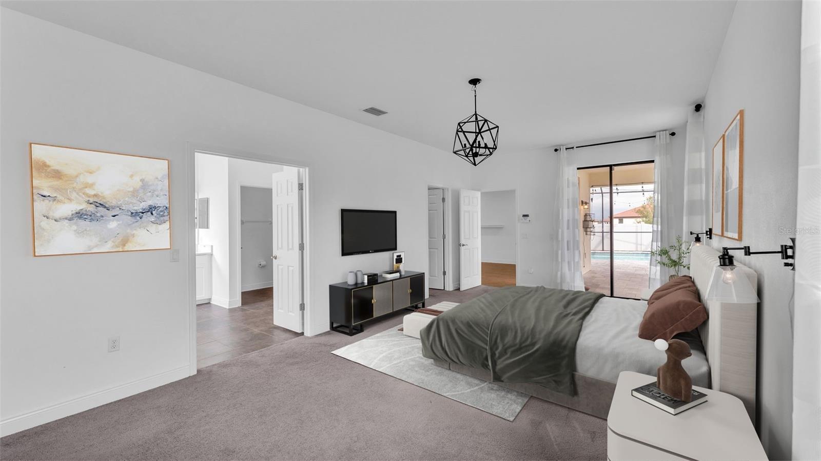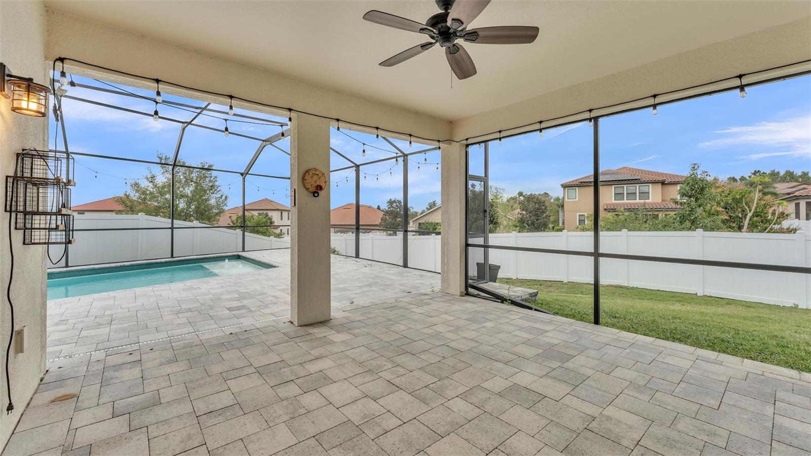 One or more photo(s) has been virtually staged. ACT FAST!! SALT WATER POOL HOME with new price improvement!! Welcome to your dream home nestled in the sought-after gated community of TerraLargo! This luxury M/I homes built residence sits on a serene cul-de-sac and offers the perfect blend of elegance and comfort. With 4 spacious bedrooms, 3 full bathrooms, this home also features a private office/study, and a versatile bonus loft/media room upstairs. Set on a generous 1/4 acre, the backyard is a true retreat, fully fenced with elegant vinyl fencing and adorned with exquisite pavers that extend across the lanai. The highlight of the outdoor space is the inviting screen-in, SALT WATER pool, complete with a tanning shelf—ideal for relaxation or entertaining guests in style. As you approach the home, you'll be charmed by the Spanish-tiled roofing, mature landscaping, and a quaint front porch that beckons you to sit and enjoy the view. Inside, the kitchen is a culinary dream, featuring elegant white cabinets, dual ovens, a hooded range, a stunning granite island, and a beautiful backsplash that adds a touch of sophistication. The primary/master bedroom is conveniently located on the first floor, boasting a private entrance to the outdoor lanai. Its luxurious en suite bathroom offers a tranquil soaking tub, a private shower, a toilet stall, and dual sinks with granite countertops. Upstairs, you’ll find the versatile loft/media room, perfect for family gatherings or movie nights, along with the fourth bedroom and a third bathroom, making it an ideal space for teenagers, guests, or a mother-in-law suite. Living in TerraLargo means enjoying resort-style amenities, including a fabulous clubhouse, zero-entry sparkling pool with swimming lanes, a spa hot tub, a fitness center, a covered play area, and court for tennis, basketball, and pickleball. Conveniently located close to highway 1-4 & 98, shopping plazas, banks, restaurants, and major medical facilities, and nearby theme parks. This home truly has it all within this vibrant community. PLUS the HOA includes their cable and internet for your convenience! This exceptional home combines luxury, comfort, and functionality, making it a must-see! Schedule your private showing today and experience the lifestyle this remarkable property has to offer.