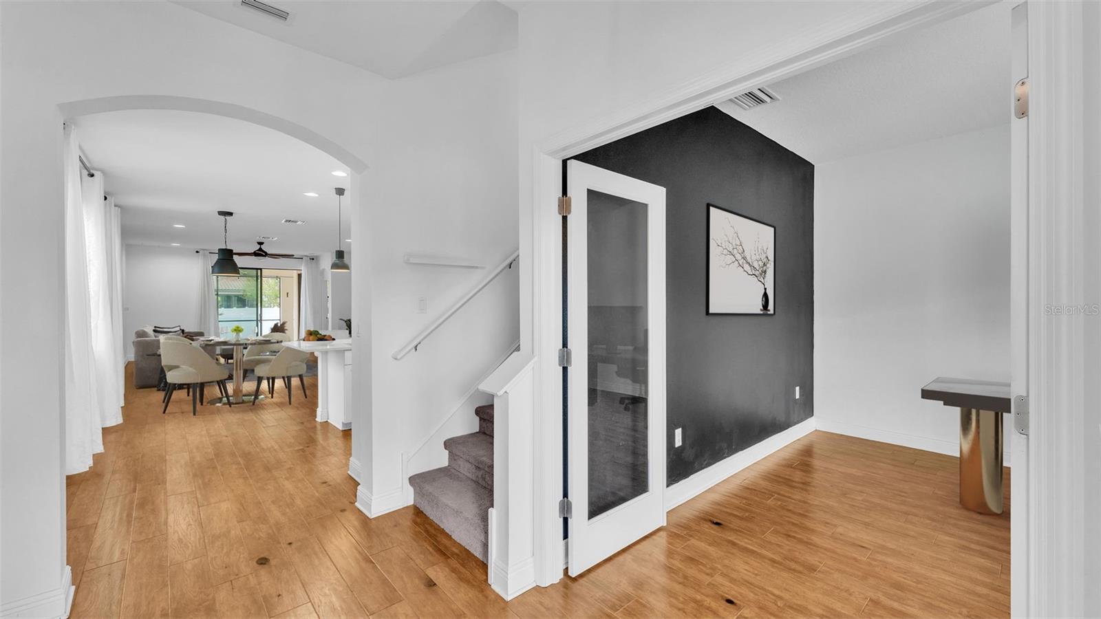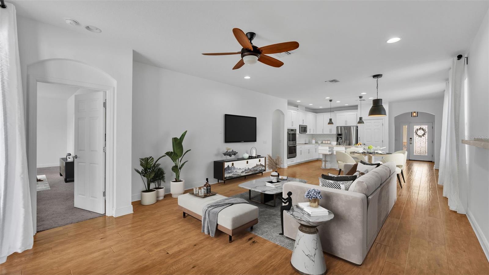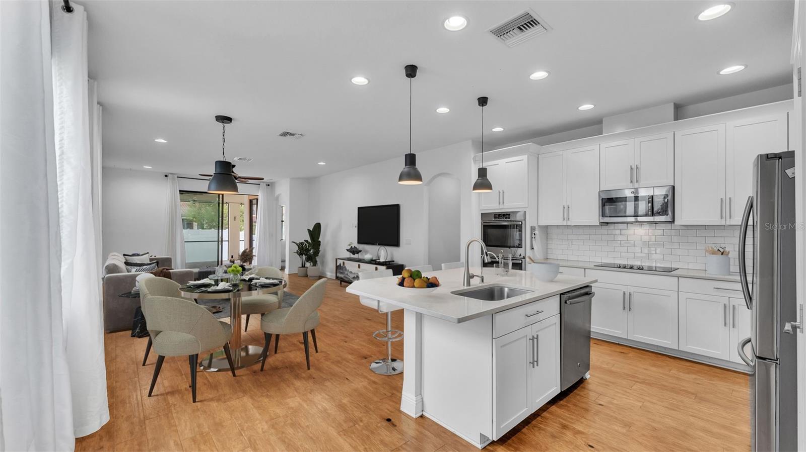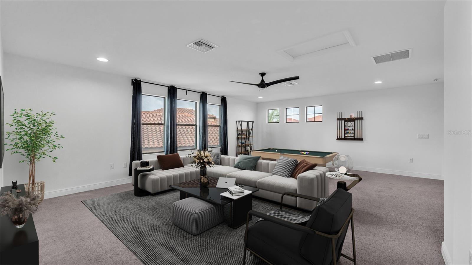 One or more photo(s) has been virtually staged. ACT FAST!! SALT WATER POOL HOME with new price improvement!! Welcome to your dream home nestled in the sought-after gated community of TerraLargo! This luxury M/I homes built residence sits on a serene cul-de-sac and offers the perfect blend of elegance and comfort. With 4 spacious bedrooms, 3 full bathrooms, this home also features a private office/study, and a versatile bonus loft/media room upstairs. Set on a generous 1/4 acre, the backyard is a true retreat, fully fenced with elegant vinyl fencing and adorned with exquisite pavers that extend across the lanai. The highlight of the outdoor space is the inviting screen-in, SALT WATER pool, complete with a tanning shelf—ideal for relaxation or entertaining guests in style. As you approach the home, you'll be charmed by the Spanish-tiled roofing, mature landscaping, and a quaint front porch that beckons you to sit and enjoy the view. Inside, the kitchen is a culinary dream, featuring elegant white cabinets, dual ovens, a hooded range, a stunning granite island, and a beautiful backsplash that adds a touch of sophistication. The primary/master bedroom is conveniently located on the first floor, boasting a private entrance to the outdoor lanai. Its luxurious en suite bathroom offers a tranquil soaking tub, a private shower, a toilet stall, and dual sinks with granite countertops. Upstairs, you’ll find the versatile loft/media room, perfect for family gatherings or movie nights, along with the fourth bedroom and a third bathroom, making it an ideal space for teenagers, guests, or a mother-in-law suite. Living in TerraLargo means enjoying resort-style amenities, including a fabulous clubhouse, zero-entry sparkling pool with swimming lanes, a spa hot tub, a fitness center, a covered play area, and court for tennis, basketball, and pickleball. Conveniently located close to highway 1-4 & 98, shopping plazas, banks, restaurants, and major medical facilities, and nearby theme parks. This home truly has it all within this vibrant community. PLUS the HOA includes their cable and internet for your convenience! This exceptional home combines luxury, comfort, and functionality, making it a must-see! Schedule your private showing today and experience the lifestyle this remarkable property has to offer.