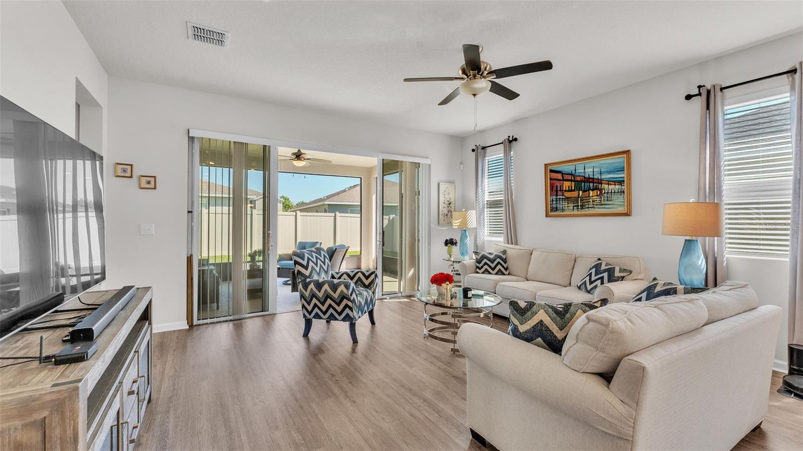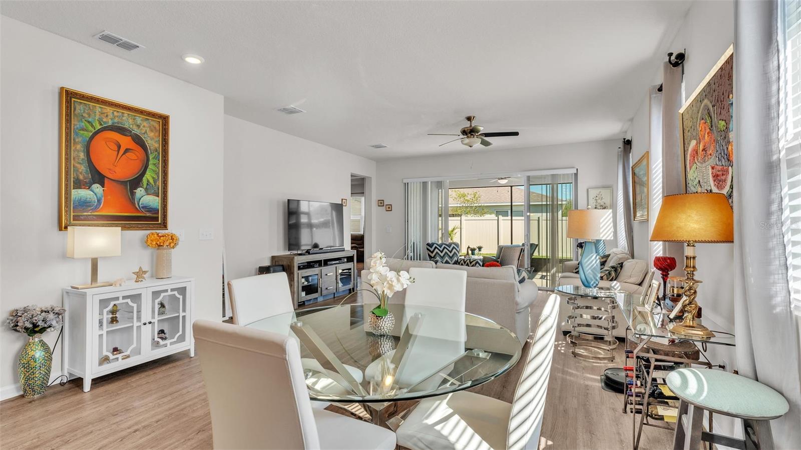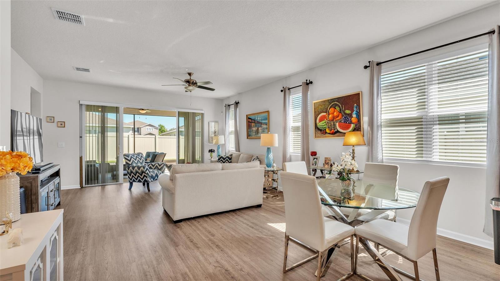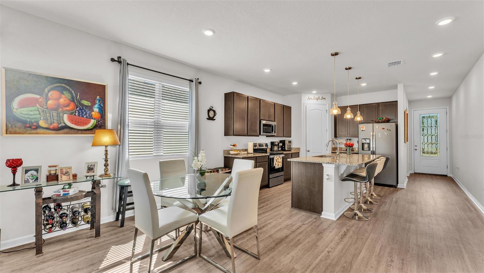 Welcome to this stunning four-bedroom, two-bathroom home in the Riverstone community of South Lakeland. Built by Richmond American Homes in 2021, this home boasts a perfect blend of modern upgrades and comfortable living. As you enter, you'll be greeted by an open floor plan that seamlessly connects the living spaces, perfect for entertaining family and friends. The home features 8-foot doors throughout, adding a touch of sophistication to every room. The kitchen is equipped with beautiful 42-inch cabinets, stainless steel appliances, and an oversized island with bar seating- ideal for casual dining. Pendant lighting adds a warm ambience, while the deep sink and walk-in pantry provide functionality for all your culinary needs. Retreat to the spacious master bedroom where you'll find a luxurious en-suite bathroom featuring double sink vanities, a modern shower, and a beautiful geometric floral ceramic tile design. The generous walk-in closet offers ample storage space, making this master suite a true oasis. The additional three bedrooms are well-appointed, providing plenty of space for family or guests, or a home office. An indoor laundry room adds convenience to your daily routine. Step outside to discover a large screened-in patio, complete with four-panel sliding glass doors, creating a seamless transition between indoor and outdoor living. The backyard is fully fenced with vinyl fencing, offering privacy, and a safe play area. Living in Riverstone means enjoying community amenities that enhance your lifestyle. Take advantage of the community pool on hot days, stay active in the fitness center, or enjoy the playground with the family. With plenty of sidewalks throughout the neighborhood, it's perfect for leisurely walks with your pet. Don't miss your chance to own this beautiful, like-new home without the wait of building! Schedule your private showing and experience this Riverstone gem in person!