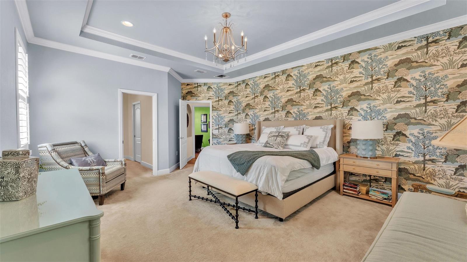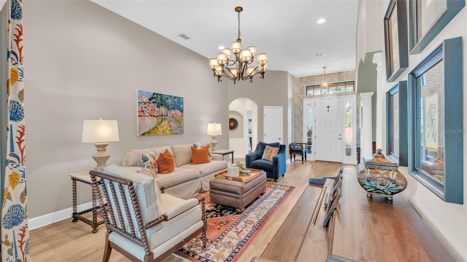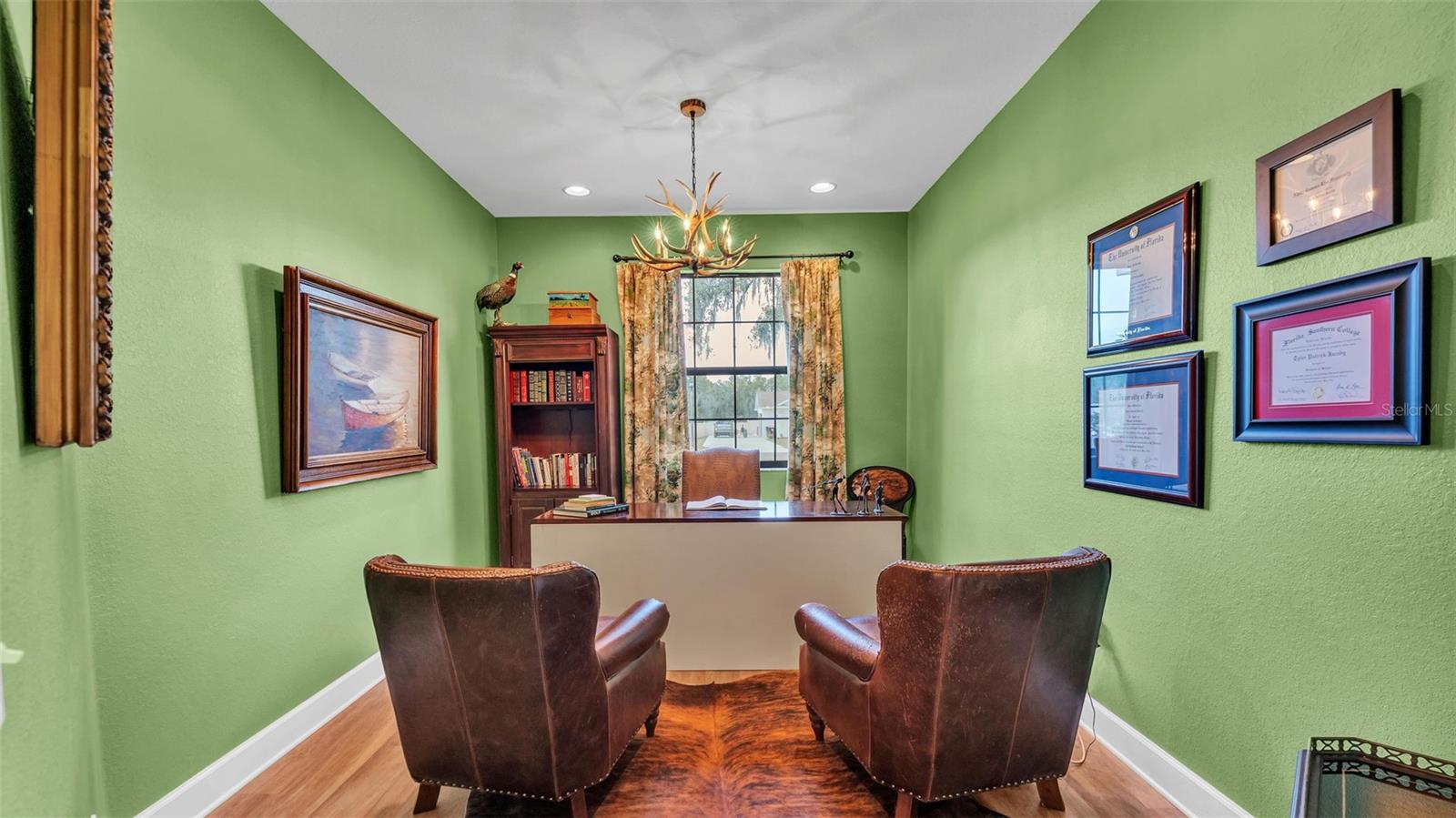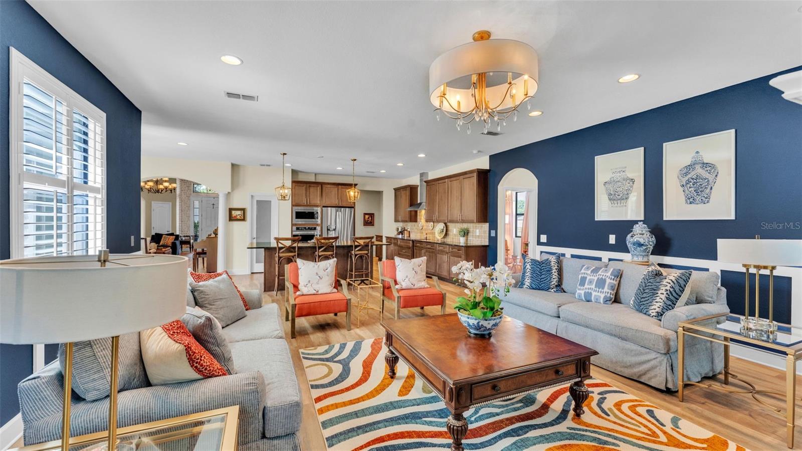 Nestled on approximately one acre of land within the desirable gated community of English Creek in South Lakeland, this exquisite four-bedroom dream home presents an unparalleled opportunity to indulge in luxurious living amidst a tranquil and private setting. Elegant design elements and upgraded finishes elevate the home’s presentation, creating an impressive, yet inviting ambiance for both daily life and entertaining. The corner lot provides ample green space, while the curb appeal is further enhanced by stone accents, meticulously manicured landscaping, a side-loading two-car garage with an extended driveway, and a beautiful fountain at the entryway. Upon entering the home, you will immediately take note of the attractive wallpaper and color palette, the trim details and stylish fixtures, and the seamless blend of classic charm and transitional design throughout. The welcoming foyers lead to a lovely formal living area, with an adjacent dining room offering plenty of space for formal meals with loved ones. The heart of the home is comprised of a large and open chef’s kitchen, overlooking the family room with wainscotting trim, plantation shutters, and a wood-burning fireplace as the focal point. From a functional standpoint, you will appreciate the preparation and serving space provided by the granite countertops, a butler’s pantry, and an expansive island-style breakfast bar in the kitchen, as well as the storage available in the wood cabinetry and closet pantry. Stainless steel appliances and backsplash add additional style, as well. The primary wing of the home includes a private office with French doors, as well as an oversized bedroom, two walk-in closets, and an en-suite bathroom with water closet, dual sinks, water closet, soaking tub, and shower. This triple-split floor plan includes two additional bedrooms with a guest bathroom, as well as a fourth bedroom with an en-suite bathroom, perfect for long-term guests or multi-generational needs. A covered back porch leads to the huge back yard, which offers space for a pool, play, gardening, and more – the options are truly endless in this space, and the opportunity to live in a gated community with a lot this size in South Lakeland is quite rare! All of this, plus the convenience of being just minutes away from the Polk Parkway, Highway 60, I-4, and the Lakeland International Airport.