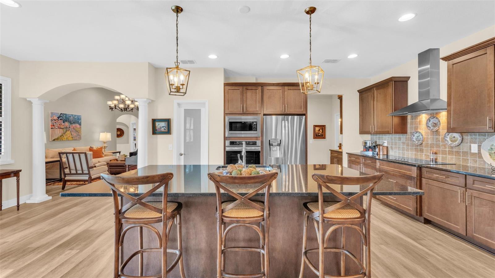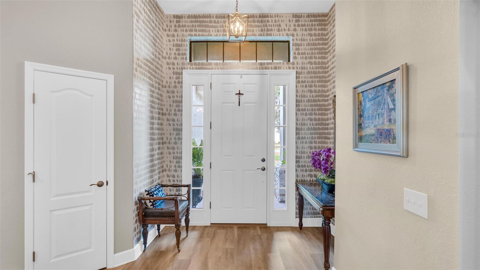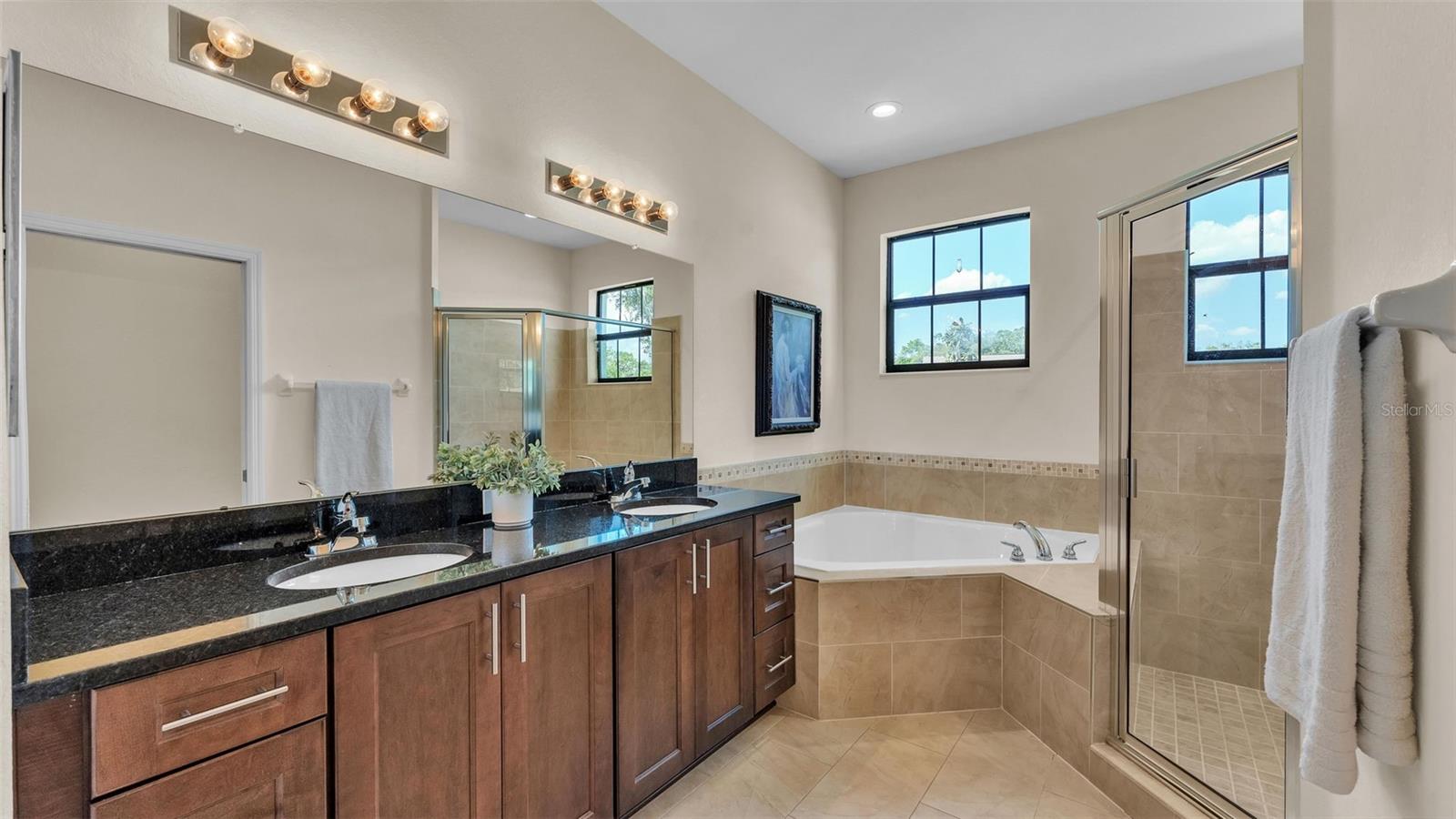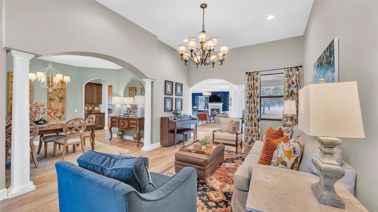 Nestled on approximately one acre of land within the desirable gated community of English Creek in South Lakeland, this exquisite four-bedroom dream home presents an unparalleled opportunity to indulge in luxurious living amidst a tranquil and private setting. Elegant design elements and upgraded finishes elevate the home’s presentation, creating an impressive, yet inviting ambiance for both daily life and entertaining. The corner lot provides ample green space, while the curb appeal is further enhanced by stone accents, meticulously manicured landscaping, a side-loading two-car garage with an extended driveway, and a beautiful fountain at the entryway. Upon entering the home, you will immediately take note of the attractive wallpaper and color palette, the trim details and stylish fixtures, and the seamless blend of classic charm and transitional design throughout. The welcoming foyers lead to a lovely formal living area, with an adjacent dining room offering plenty of space for formal meals with loved ones. The heart of the home is comprised of a large and open chef’s kitchen, overlooking the family room with wainscotting trim, plantation shutters, and a wood-burning fireplace as the focal point. From a functional standpoint, you will appreciate the preparation and serving space provided by the granite countertops, a butler’s pantry, and an expansive island-style breakfast bar in the kitchen, as well as the storage available in the wood cabinetry and closet pantry. Stainless steel appliances and backsplash add additional style, as well. The primary wing of the home includes a private office with French doors, as well as an oversized bedroom, two walk-in closets, and an en-suite bathroom with water closet, dual sinks, water closet, soaking tub, and shower. This triple-split floor plan includes two additional bedrooms with a guest bathroom, as well as a fourth bedroom with an en-suite bathroom, perfect for long-term guests or multi-generational needs. A covered back porch leads to the huge back yard, which offers space for a pool, play, gardening, and more – the options are truly endless in this space, and the opportunity to live in a gated community with a lot this size in South Lakeland is quite rare! All of this, plus the convenience of being just minutes away from the Polk Parkway, Highway 60, I-4, and the Lakeland International Airport.