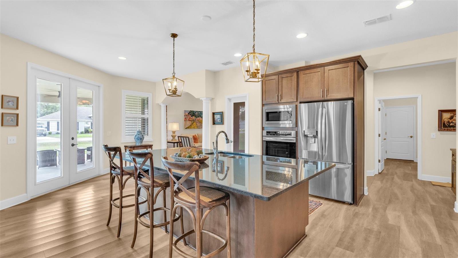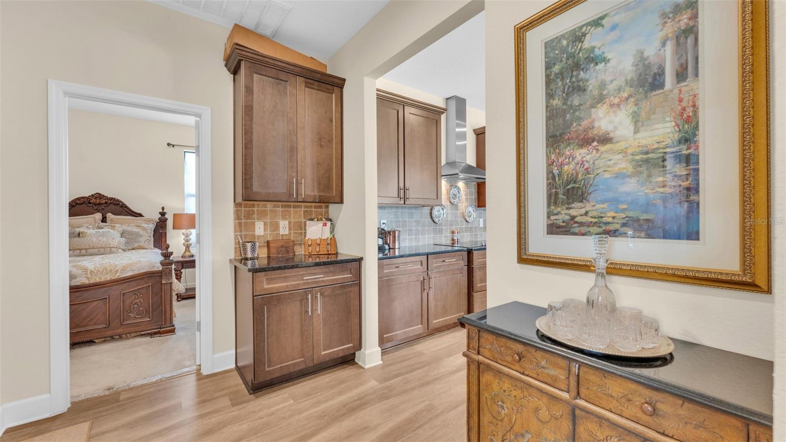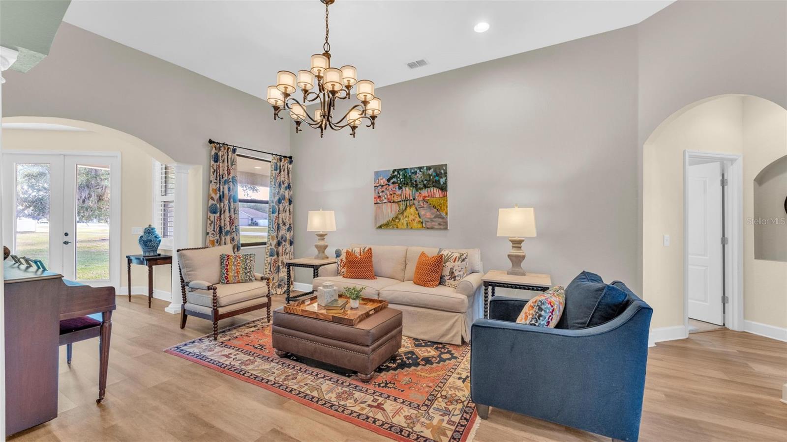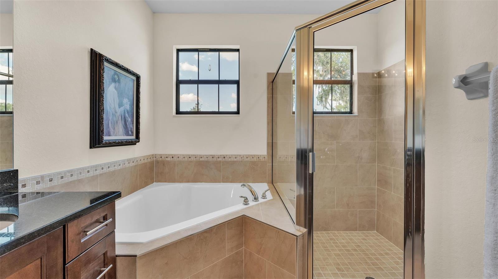 Nestled on approximately one acre of land within the desirable gated community of English Creek in South Lakeland, this exquisite four-bedroom dream home presents an unparalleled opportunity to indulge in luxurious living amidst a tranquil and private setting. Elegant design elements and upgraded finishes elevate the home’s presentation, creating an impressive, yet inviting ambiance for both daily life and entertaining. The corner lot provides ample green space, while the curb appeal is further enhanced by stone accents, meticulously manicured landscaping, a side-loading two-car garage with an extended driveway, and a beautiful fountain at the entryway. Upon entering the home, you will immediately take note of the attractive wallpaper and color palette, the trim details and stylish fixtures, and the seamless blend of classic charm and transitional design throughout. The welcoming foyers lead to a lovely formal living area, with an adjacent dining room offering plenty of space for formal meals with loved ones. The heart of the home is comprised of a large and open chef’s kitchen, overlooking the family room with wainscotting trim, plantation shutters, and a wood-burning fireplace as the focal point. From a functional standpoint, you will appreciate the preparation and serving space provided by the granite countertops, a butler’s pantry, and an expansive island-style breakfast bar in the kitchen, as well as the storage available in the wood cabinetry and closet pantry. Stainless steel appliances and backsplash add additional style, as well. The primary wing of the home includes a private office with French doors, as well as an oversized bedroom, two walk-in closets, and an en-suite bathroom with water closet, dual sinks, water closet, soaking tub, and shower. This triple-split floor plan includes two additional bedrooms with a guest bathroom, as well as a fourth bedroom with an en-suite bathroom, perfect for long-term guests or multi-generational needs. A covered back porch leads to the huge back yard, which offers space for a pool, play, gardening, and more – the options are truly endless in this space, and the opportunity to live in a gated community with a lot this size in South Lakeland is quite rare! All of this, plus the convenience of being just minutes away from the Polk Parkway, Highway 60, I-4, and the Lakeland International Airport.