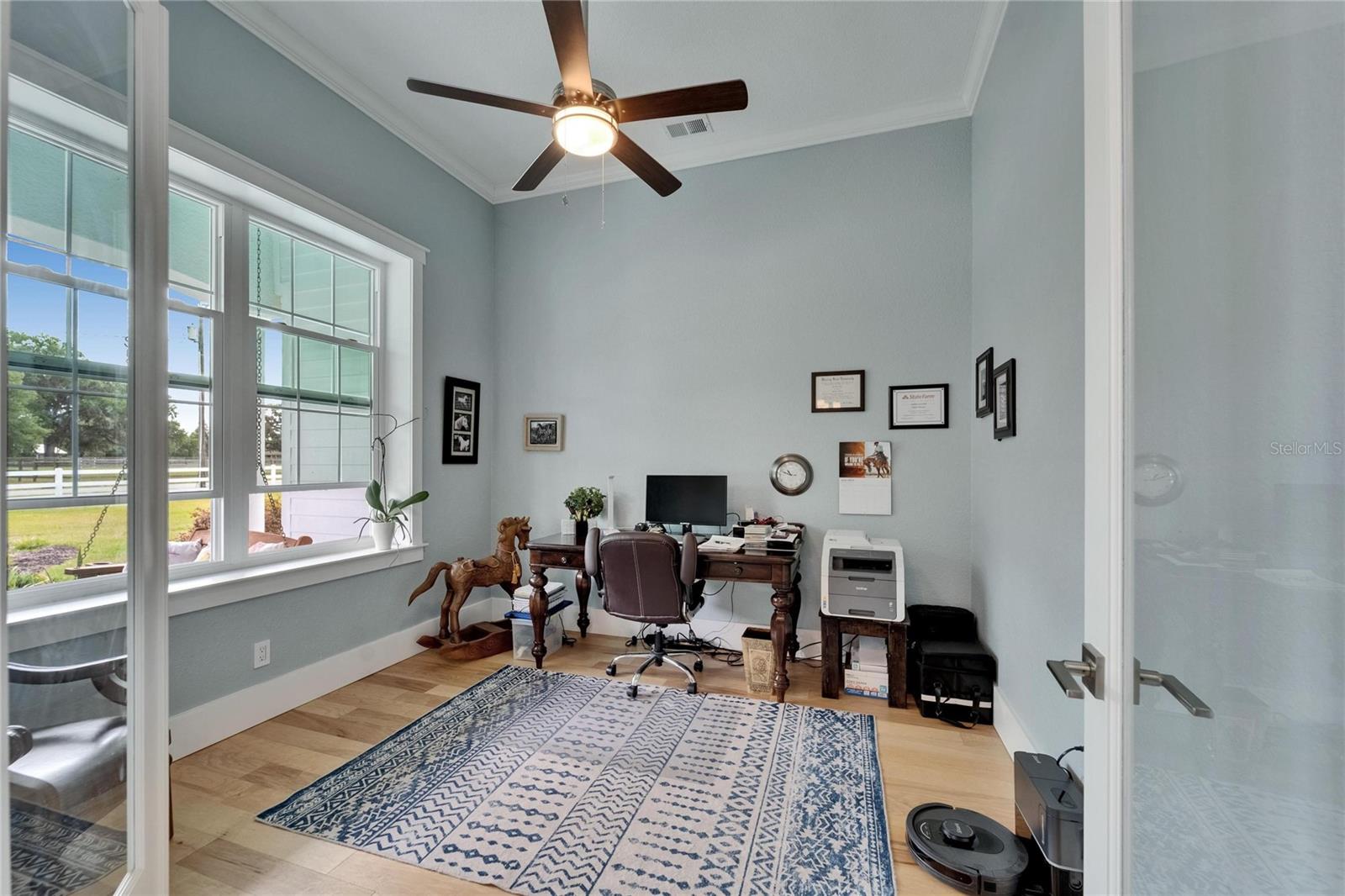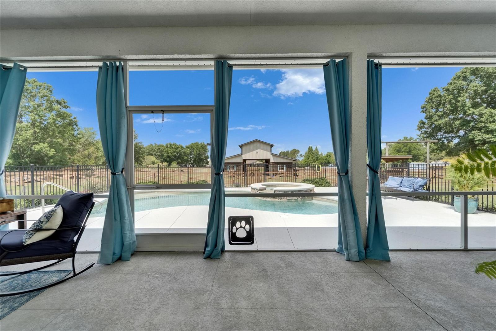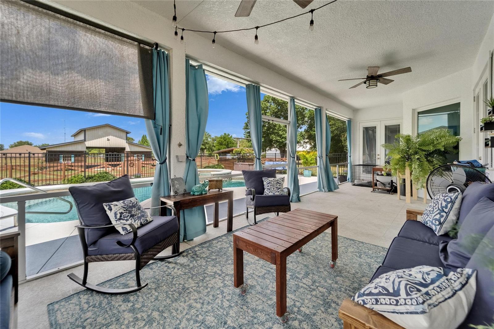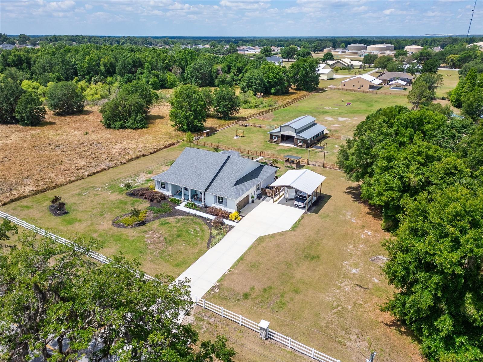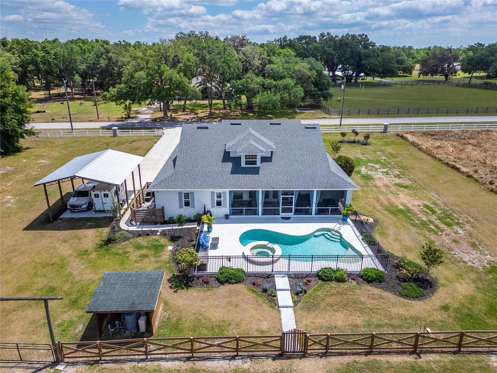 NEW PRICE! Bring your horses, donkeys, and chickens—this is the North Lakeland equestrian retreat completely renovated you've been waiting for! Welcome to 9004 Selph Road, a custom-built masterpiece sitting on 2.47 fully fenced acres, including an invisible perimeter fence for added peace of mind. NO HOA and NO flood zone mean you have freedom and flexibility—plus unbeatable privacy. From the moment you step onto the wide front porch with its cozy swing, you're greeted by timeless Southern charm. Inside, the home stuns with 10-foot ceilings, gorgeous hickory hardwood flooring throughout, crown molding, and elegant wood trim throughout. A spacious formal foyer opens to a dedicated office and a beautiful dining room, perfect for entertaining. The chef’s kitchen features solid wood cabinetry, marble countertops, stainless steel appliances, and a cozy eat-in breakfast nook with a built-in coffee bar. The large living room flows seamlessly to the outdoor living area, while the split-bedroom layout provides privacy and space. The primary suite is a true retreat with tray ceilings, French doors to the lanai, a spa-style bathroom with dual vanities, an inviting "wet room" that include a soaking tub & shower enclosed, and a huge walk-in closet. Two additional bedrooms with walk-in closets share a spacious bath. Head upstairs to a bonus room that can serve as a media room, man cave, fourth bedroom, or flex space—whatever fits your lifestyle. Out back, relax on the screened lanai with a swing or soak in your underground propane-heated saltwater pool and spa. There’s also a fire pit area, front and back porch swings, and tons of space to entertain. Calling all equestrians and hobbyists—your dream barn awaits! The 2,000 sq ft barn includes 4–7 stalls, electric, water system, auto feeders, and an A/C tack room, ideal for your horses, donkeys, chickens, or even a few goats. Additional highlights include: New 17 SEER 5-ton Trane A/C SMART washer/dryer, thermostat & garage door opener Roof (2021) Riding trails nearby (Gator Creek, Colt Creek, Marshall Hampton & more) This home has been meticulously updated, professionally maintained, and feels brand new. It’s rare to find this level of craftsmanship, land, and luxury all in one property.