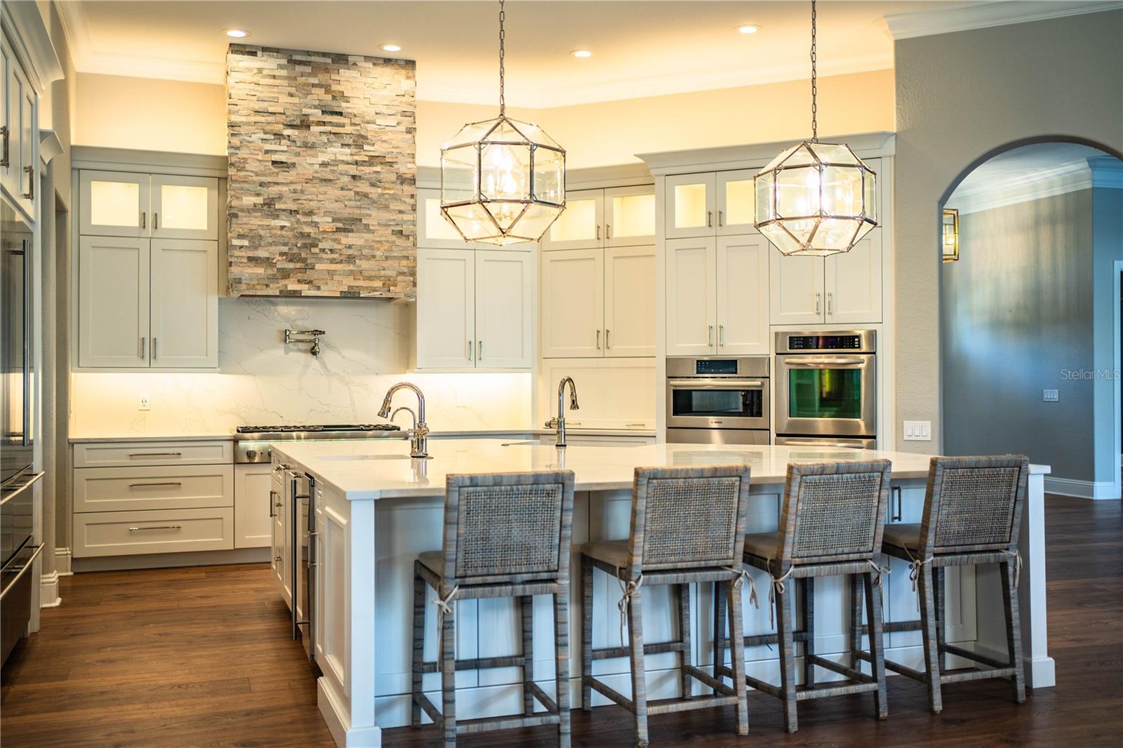 Welcome to 942 Hanover Way, an elegantly renovated 4-bedroom, 3-bath home that exemplifies elevated living on a generous lot in the prestigious Hamilton South community, conveniently located in South Lakeland. As you step inside, you’ll be greeted by an inviting open floor plan adorned with luxurious flooring throughout. The thoughtfully designed layout features a formal living and dining area, a spacious family room, and a versatile bonus room, perfect for a game room, media space, or guest suite. The updated kitchen is a chef's dream, showcasing stunning quartzite countertops, custom cabinetry, and an oversized island that’s ideal for entertaining. Whether you're working from home or simply in need of a quiet space, the dedicated office area—complete with gorgeous lighting fixtures—enhances both productivity and relaxation. Your private retreat awaits in the oversized primary suite, which includes a walk-in closet and a spa-like en-suite bathroom. Three additional bedrooms offer abundant space bathed in natural light, featuring built-in closets, along with a sizable laundry room for convenience. The back guest bathroom is a standout feature, boasting a steam shower—perfect for unwinding after a long day. The expansive 3-car garage provides ample space for your vehicles and storage needs. French doors gracefully open to reveal your private outdoor oasis, ideal for enjoying tranquil moments and relaxing by the pool. This home truly fulfills every desire for comfort and luxury. Schedule your private showing today to experience this exceptional property!
