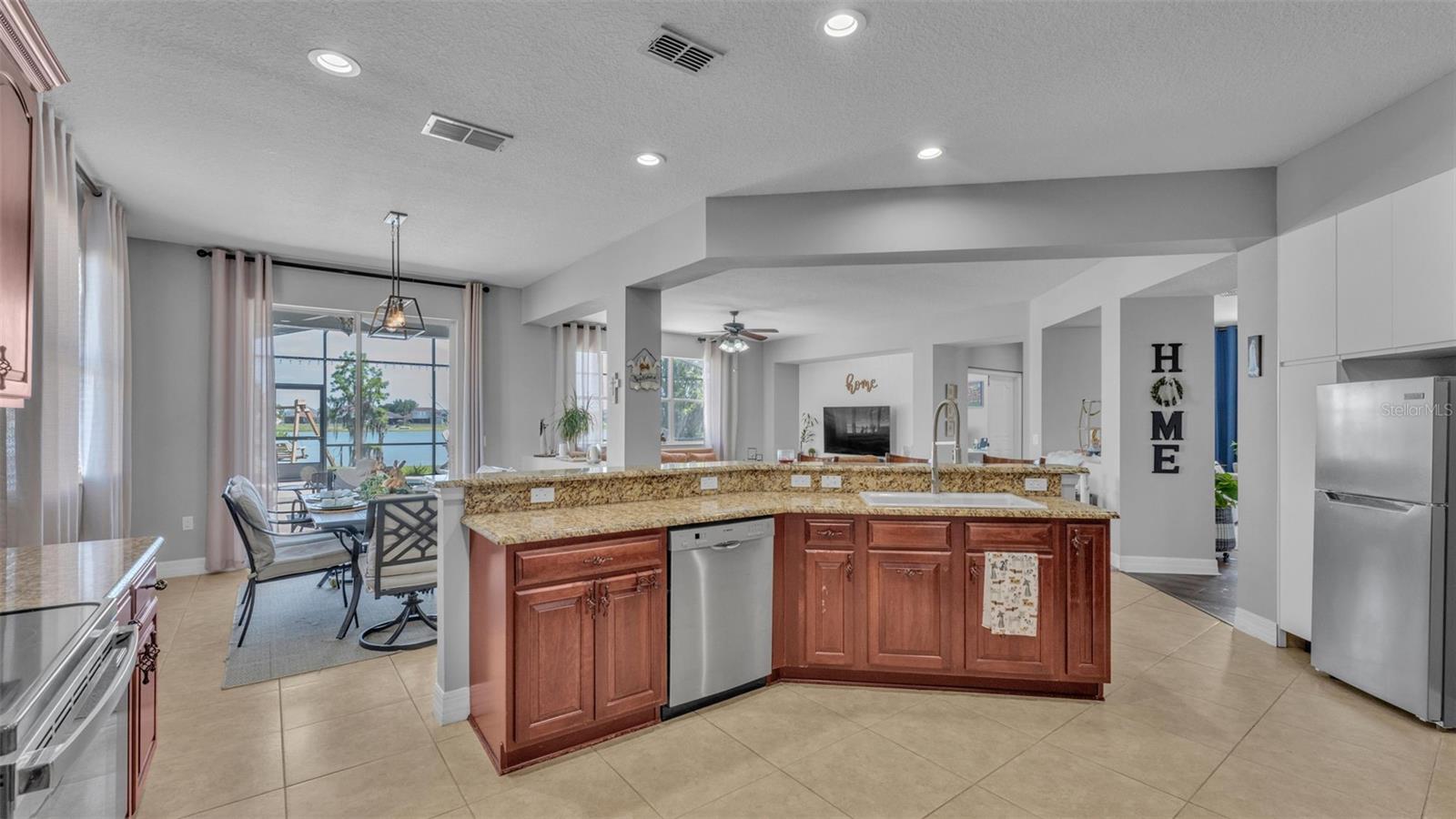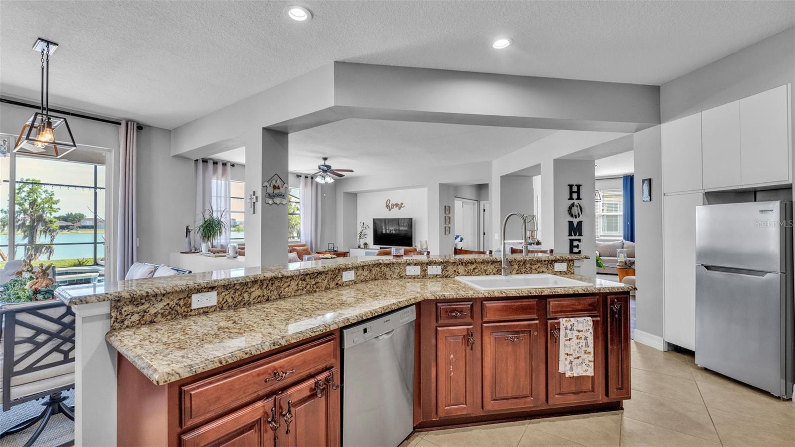 Welcome to your dream lakefront oasis at 2468 Winnipeg Drive in Lakeland's Village at Bridgewater! This stunning home boasts over 3,300 sq ft of luxury, with 3 bedrooms plus a versatile flex room for a fourth bedroom or dedicated office. Enjoy 2.5 baths and an open floor plan with breathtaking lake views. The chef's kitchen features cherry wood cabinets and granite countertops, perfect for entertaining. Retreat to the expansive Master Suite, boasting incredible views of the lake and wildlife. The backyard paradise includes a screened-in pool with fountains, spa, and covered patio, plus direct lake access for fishing, canoeing and kayaking. Recent upgrades include 2 AC units (2021) and a new roof (2022). HOA fee includes Spectrum cable and internet. Enjoy community amenities including a clubhouse, oversized pool, fitness center, playground, gazebo, fishing dock, canoe launch pad, tennis courts, and basketball courts. Conveniently located near I-4 providing an easy drive to Tampa, Orlando, and Disney Springs, as well as only being minutes from the hospital and downtown Lakeland's shops and restaurants. Don't miss this rare opportunity!