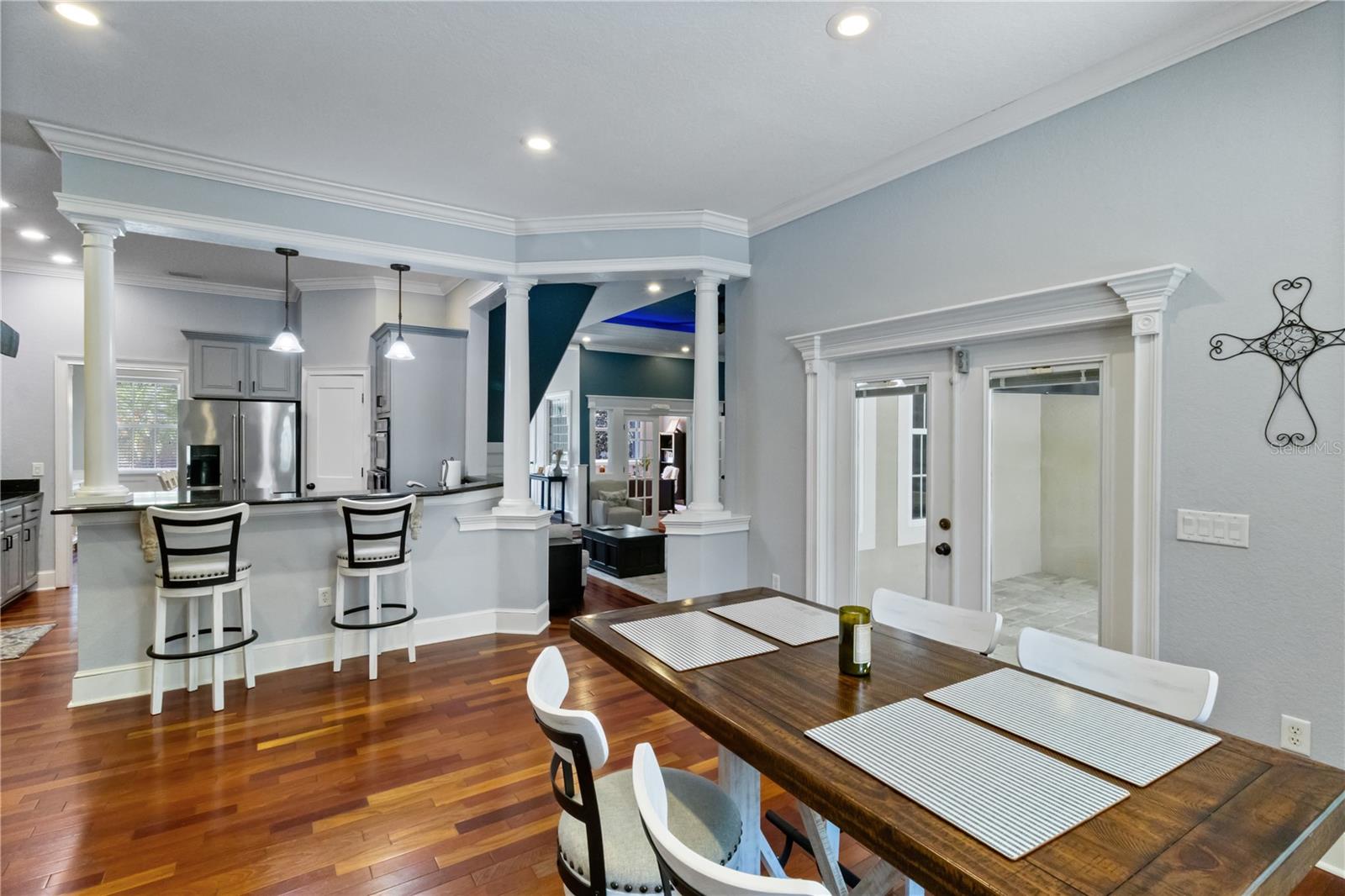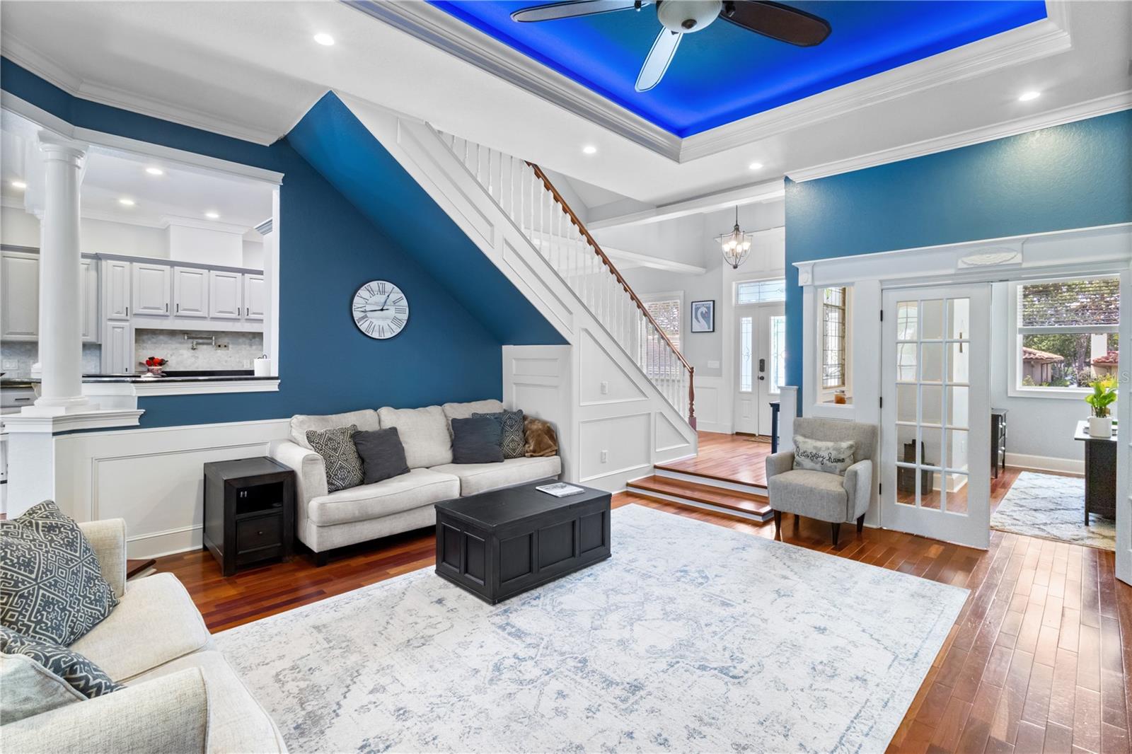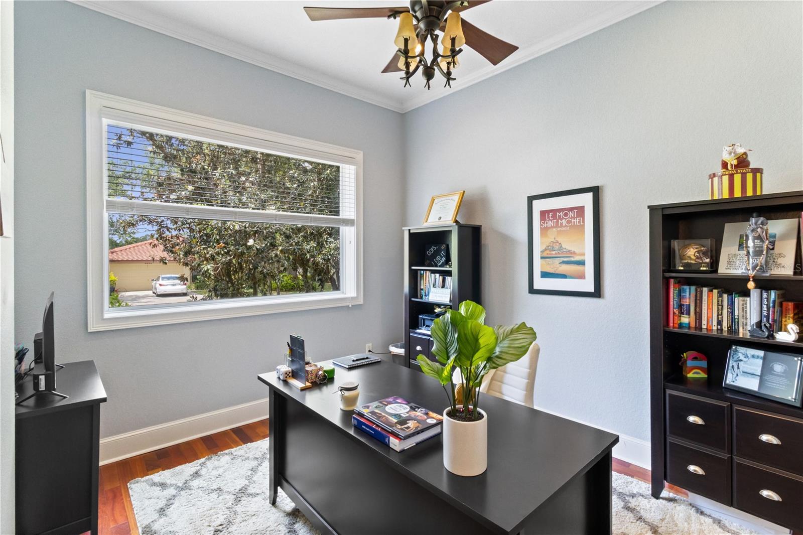 Welcome to your dream home in one of Lakeland’s most desirable communities—no HOA with easy access to all the city has to offer. This exceptional 5-bedroom, 4.5-bath residence seamlessly blends timeless craftsmanship with modern updates, offering comfort, style, and flexibility for today’s lifestyle. Step inside to discover exquisite woodwork, a beautiful stained glass window, gleaming hardwood floors, and soaring high ceilings with elegant lighted tray details that add warmth and sophistication. The open floor plan is filled with stunning custom touches throughout, creating inviting spaces perfect for both relaxing and entertaining. The heart of the home is the updated kitchen, featuring premium finishes, a convenient pot filler, and a seamless flow into spacious living and dining areas—ideal for gatherings with family and friends. For those who work from home, a dedicated office space offers a quiet retreat for productivity or study. The luxurious primary suite is conveniently located on the first floor and boasts a spa-inspired bath remodeled in 2024 plus a generous walk-in closet. Two additional bedrooms on the main level share a well-appointed Jack and Jill bath, providing privacy and comfort. Upstairs, a secondary bedroom and full bath—cooled by a new mini-split A/C (2024)—provide the perfect spot for guests or a media space. Need a private retreat for visitors or in-laws? This home delivers with a separate bedroom and full bath just off the screened-in pool area—an ideal setup for multigenerational living or extended guests. Enjoy your own backyard oasis with an expansive screened pool and entertainment area, perfect for relaxing, dining al fresco, or hosting unforgettable gatherings. True privacy is yours with a lush, full bamboo screen surrounding the outdoor living space. Major updates provide peace of mind: New roof (2023) A/C unit (2022) Mini-split A/C upstairs (2024) Master bath remodel (2024) Upgraded irrigation system (2022) This home is thoughtfully designed for comfortable living and is a potential generational residence ready to serve your family for years to come. If you’re seeking space, comfort, and sophistication in a highly sought-after, non-HOA Lakeland location—this is the one you’ve been waiting for!