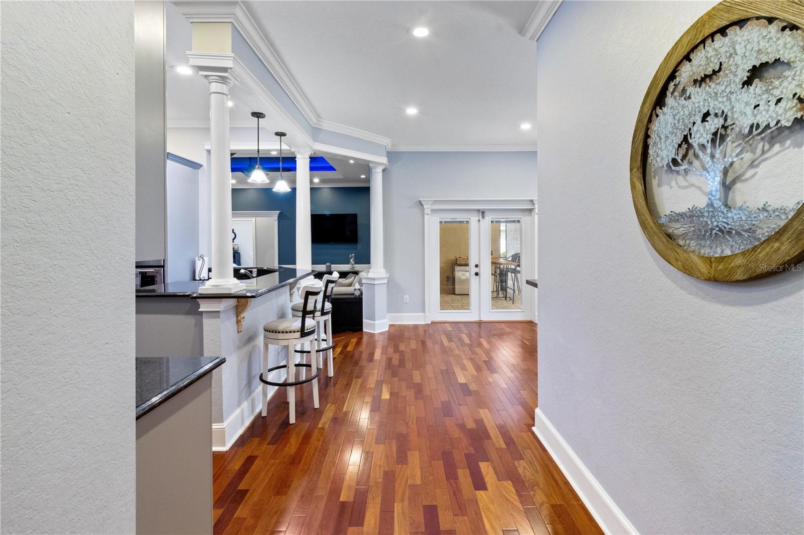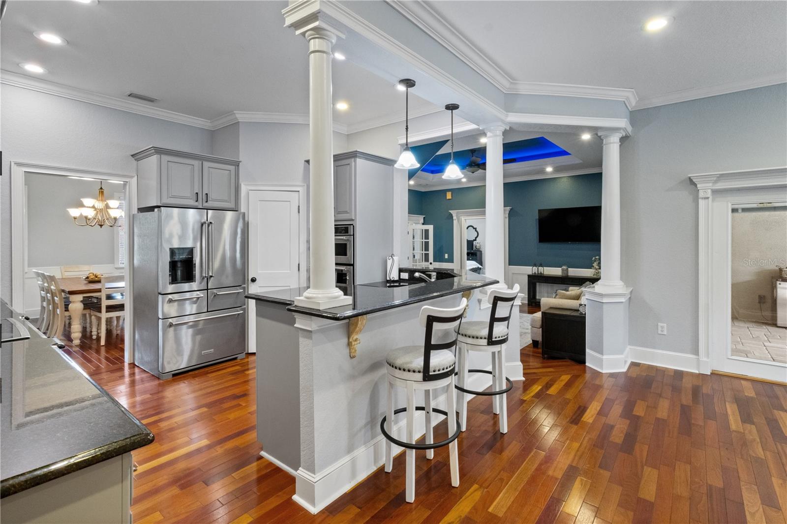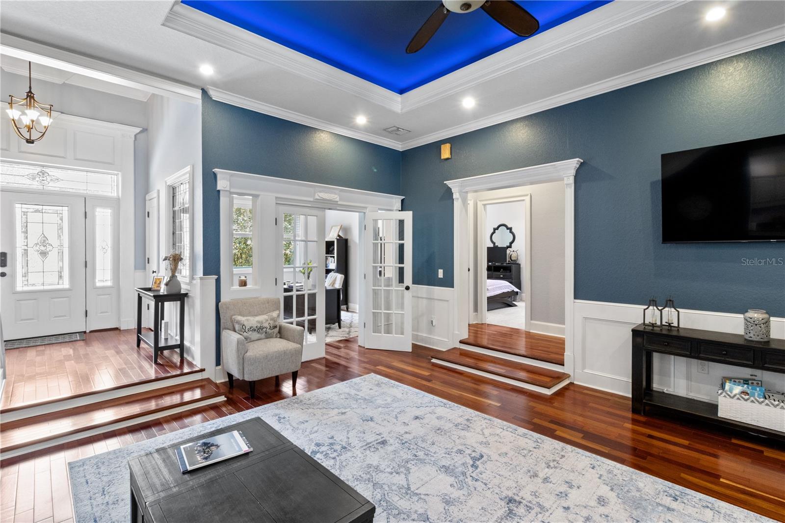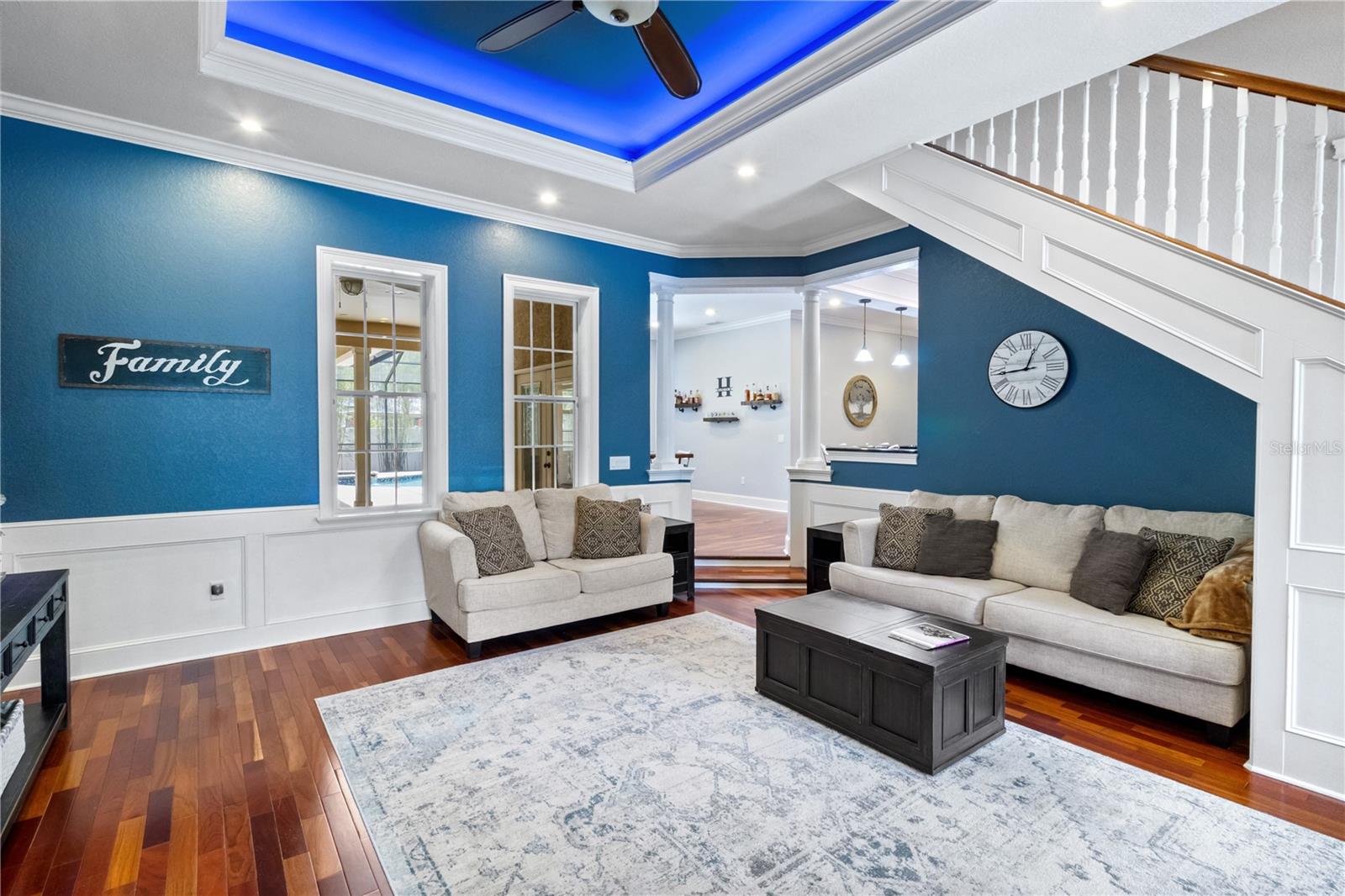 Welcome to your dream home in one of Lakeland’s most desirable communities—no HOA with easy access to all the city has to offer. This exceptional 5-bedroom, 4.5-bath residence seamlessly blends timeless craftsmanship with modern updates, offering comfort, style, and flexibility for today’s lifestyle. Step inside to discover exquisite woodwork, a beautiful stained glass window, gleaming hardwood floors, and soaring high ceilings with elegant lighted tray details that add warmth and sophistication. The open floor plan is filled with stunning custom touches throughout, creating inviting spaces perfect for both relaxing and entertaining. The heart of the home is the updated kitchen, featuring premium finishes, a convenient pot filler, and a seamless flow into spacious living and dining areas—ideal for gatherings with family and friends. For those who work from home, a dedicated office space offers a quiet retreat for productivity or study. The luxurious primary suite is conveniently located on the first floor and boasts a spa-inspired bath remodeled in 2024 plus a generous walk-in closet. Two additional bedrooms on the main level share a well-appointed Jack and Jill bath, providing privacy and comfort. Upstairs, a secondary bedroom and full bath—cooled by a new mini-split A/C (2024)—provide the perfect spot for guests or a media space. Need a private retreat for visitors or in-laws? This home delivers with a separate bedroom and full bath just off the screened-in pool area—an ideal setup for multigenerational living or extended guests. Enjoy your own backyard oasis with an expansive screened pool and entertainment area, perfect for relaxing, dining al fresco, or hosting unforgettable gatherings. True privacy is yours with a lush, full bamboo screen surrounding the outdoor living space. Major updates provide peace of mind: New roof (2023) A/C unit (2022) Mini-split A/C upstairs (2024) Master bath remodel (2024) Upgraded irrigation system (2022) This home is thoughtfully designed for comfortable living and is a potential generational residence ready to serve your family for years to come. If you’re seeking space, comfort, and sophistication in a highly sought-after, non-HOA Lakeland location—this is the one you’ve been waiting for!