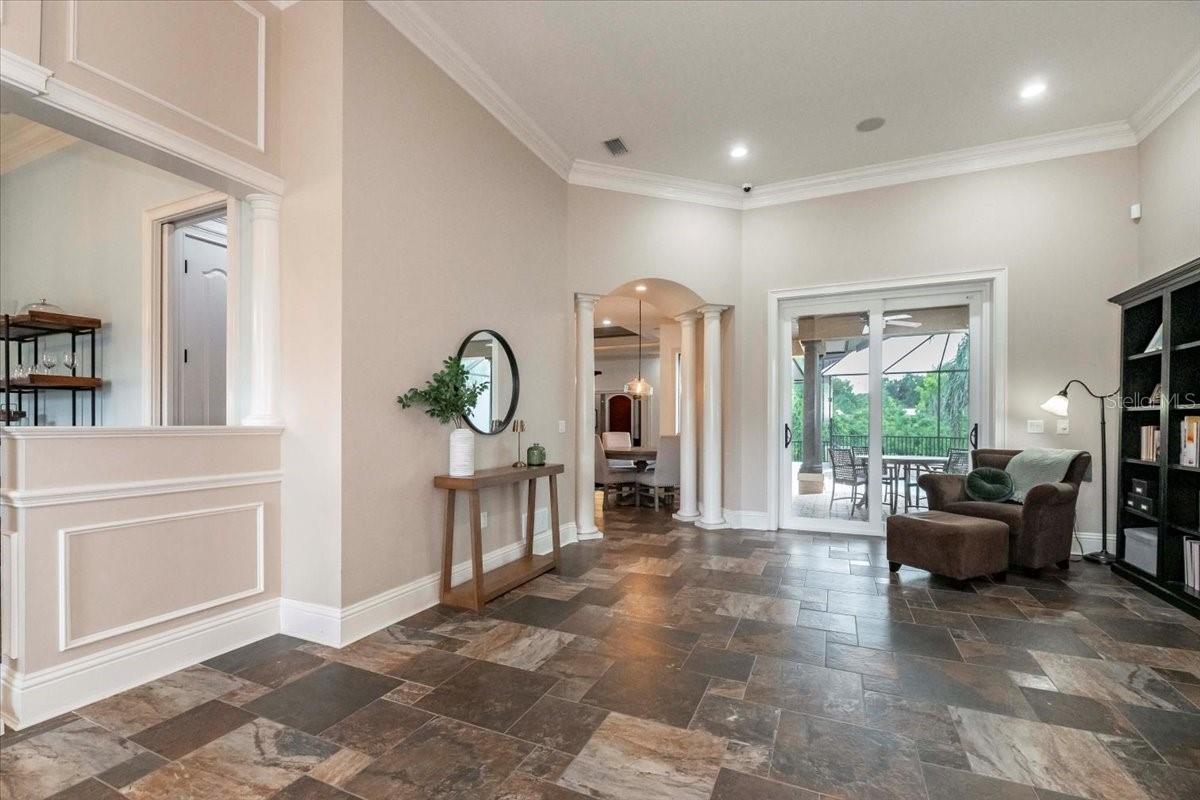 Live Lavishly in the Heart of South Lakeland’s Most Coveted Community – Welcome to The Ashley! Tucked behind the elegant gates of the Ashley community in 33813, this Mediterranean Revival masterpiece blends timeless charm with modern luxury. With 4 spacious bedrooms, 4 full baths, and a dedicated office with its own closet, this split floor plan offers the perfect combination of comfort, functionality, and style. Movie nights just got an upgrade in your private screening room—complete with projector, screen, and whole-house AV system that all convey. Entertain effortlessly in a chef’s dream kitchen featuring a gas cooktop with exterior propane tank, while guests mingle on the screened patio (new in 2019) or lounge by the heated saltwater pool and spa, complete with a 2024 salt generator and beach-style sun shelf. Peace of mind comes standard with a Generac generator system, updated ADT security, closed-circuit cameras, and newer hurricane-rated windows and sliders (all except the front elevation). The tankless water heater, new garage door motor (2024), and epoxy garage floors add extra polish to this well-maintained gem. Plus, enjoy year-round comfort with a new A/C installed in 2025. Whether you’re working from home, hosting unforgettable gatherings, or simply soaking up the Florida sunshine, this home is ready to impress. Don't miss your chance to experience elevated living in one of 33813’s finest neighborhoods. Schedule your private tour today—luxury, comfort, and security await!