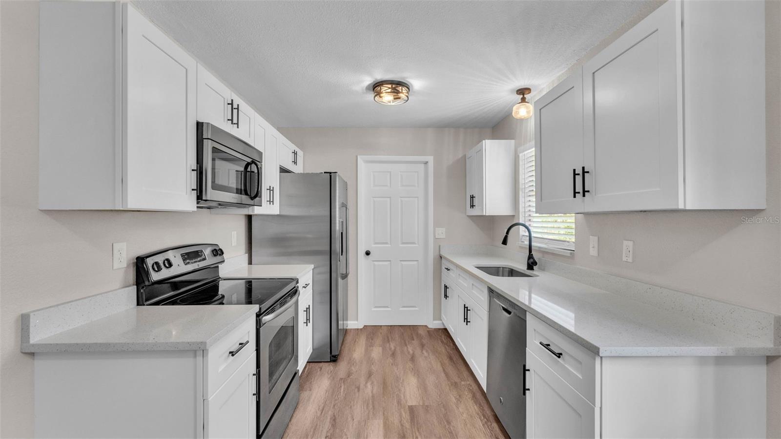 Fully Renovated & Move-In Ready! This beautifully updated 3-bedroom, 1.5-bath home offers modern comfort and peace of mind with a new roof, new AC, new hot water heater, fresh interior and exterior paint, and brand-new finishes throughout. Enjoy the convenience of an indoor laundry room, plus new vinyl plank flooring throughout, new interior doors, new cabinets & countertops, newer appliances, new bathroom vanities, lighting, and hardware—every detail has been thoughtfully updated. Sitting on an oversized fenced-in lot, the backyard features a spacious 32x19 concrete slab—perfect for outdoor entertaining, parking, or future additions. No HOA means more flexibility and fewer restrictions. Located in a quiet North Lakeland neighborhood, this home is a must-see!