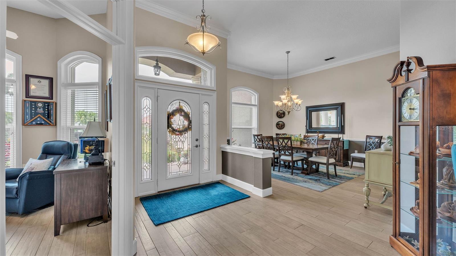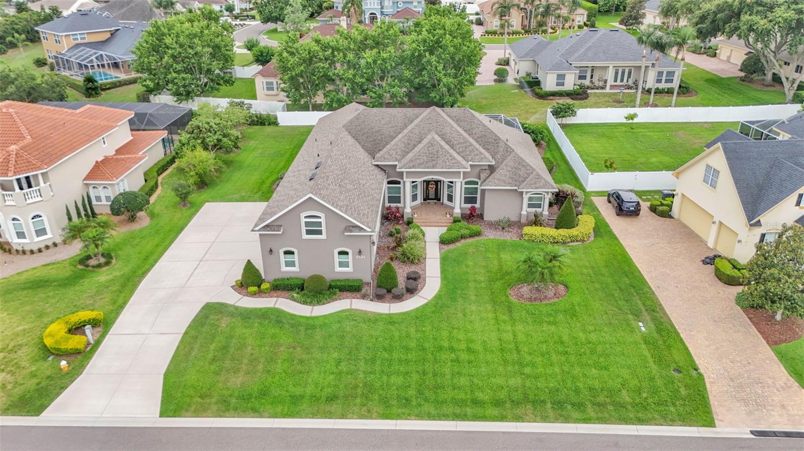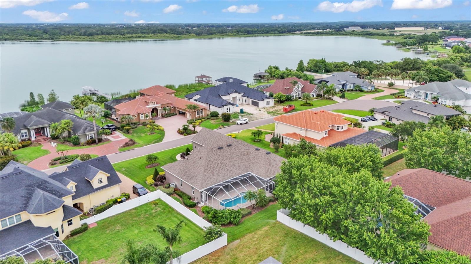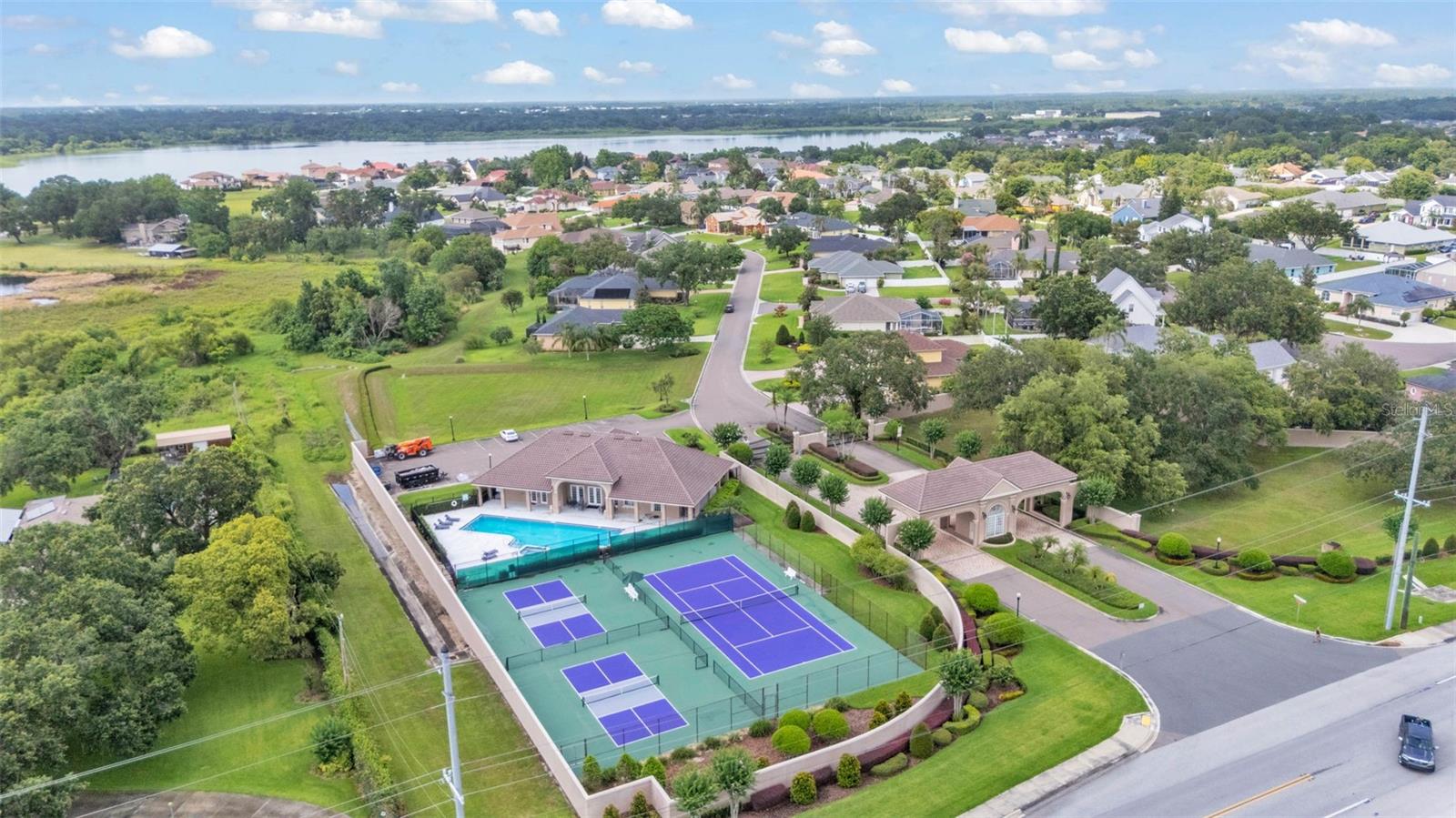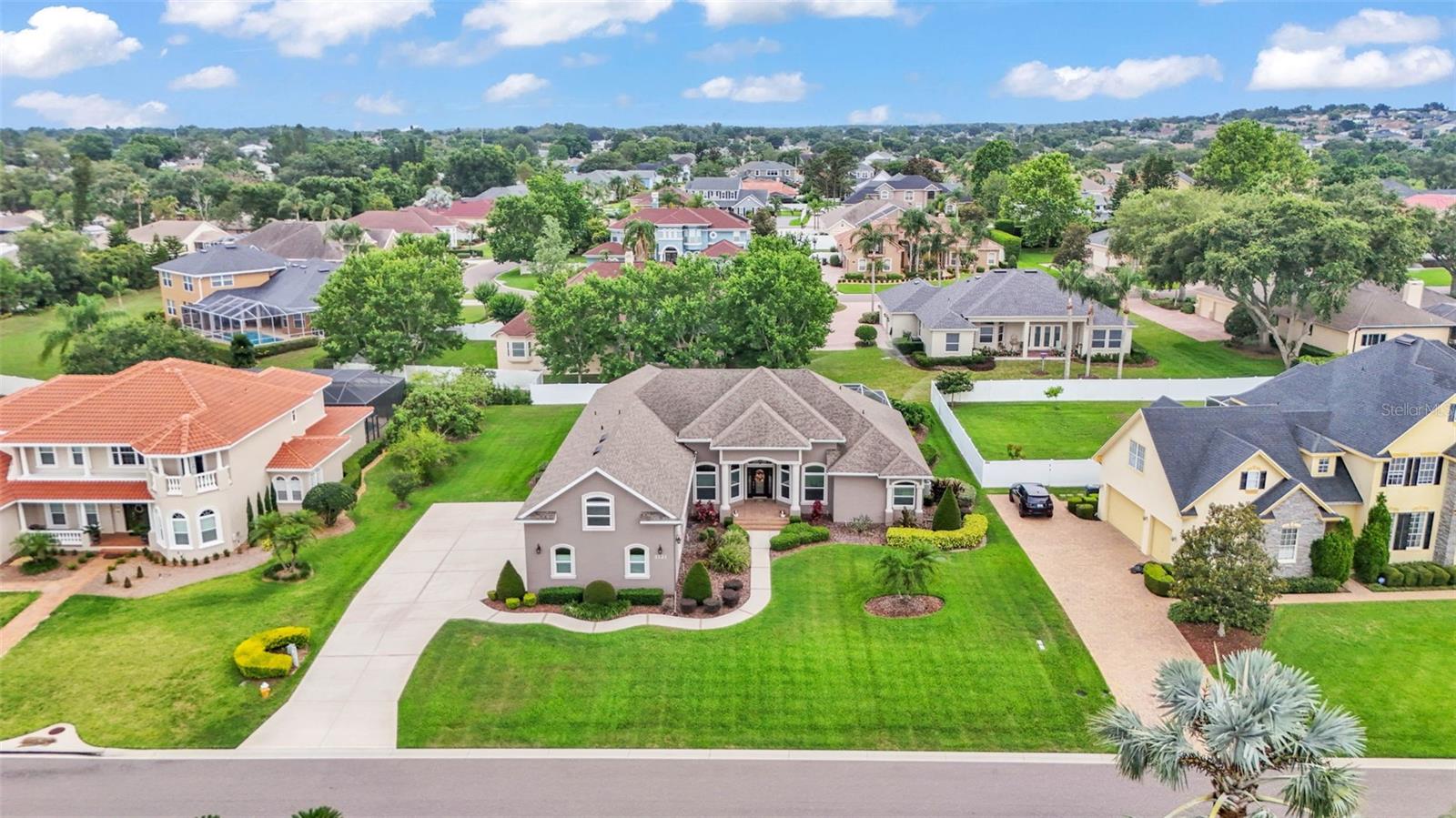 This exceptional, executive-style, custom-built pool home is located in the highly sought-after Highlands by the Lake neighborhood in South Lakeland, offering luxurious living in a prime location. Enjoy peaceful views of Banana Lake right across the street, a tranquil cul-de-sac setting, and the added privacy and security of a gated community featuring a clubhouse, pool, tennis and pickleball courts. You’ll be proud to call both this home and neighborhood your own. From the moment you arrive, you will appreciate the meticulous attention to detail that defines this home— from its impressive curb appeal, manicured lawn, and landscaping to the soaring, stately entryway. Inside, discover a pristine interior adorned with elegant design upgrades such as crown molding, plank-style tile flooring, transom windows, and high ceilings. The triple-split floor plan offers generous living spaces, abundant storage, and a layout perfect for both entertaining and everyday living. The first floor includes formal and informal living and dining areas, a spacious open kitchen, four bedrooms, and a dedicated office (with a closet, easily used as a fifth bedroom). The primary suite is comprised of a large bedroom with double-tray ceilings and French doors leading to the pool, plus a spa-like en-suite bathroom with two walk-in closets, separate vanities, a large tiled shower, soaking tub and water closet. Upstairs, you will find an oversized bonus room with a dry bar, half bathroom and an additional flex room for a second office, hobby area or storage. At the heart of the home lies the remodeled chef’s kitchen, featuring quartz countertops with a flush-mount sink, high-end stainless steel appliances, and a large island overlooking the family room. Custom cabinetry with pull-out shelves, two pantries (closet and cabinet), and built-in storage in the dinette area provide excellent functionality. The stone-accented fireplace adds cozy charm year-round in the Family room, which also features peaceful views and easy access to the pool area. Outdoor living is a true highlight of this home, with a paver-style porch surrounding the recently resurfaced private pool. A half "pool" bathroom and storage closet offer additional convenience, and the covered porch space provides shade and comfort. No detail was overlooked in the floor plan of this home — even the laundry room offers wonderful storage space and includes a washer, dryer, and freezer. The side-loading 3-car garage has a workshop area and added depth, offering ample parking space and an extended driveway for guests. Additional upgrades include energy-efficient double-pane windows, a central vacuum system, and tastefully updated bathrooms throughout the home. Conveniently located just minutes from top-rated schools, shopping, dining, and the upcoming hospital, with easy access to the Polk Parkway, this home offers an elevated lifestyle in a prime location, with a perfect blend of comfort, convenience, function and style.