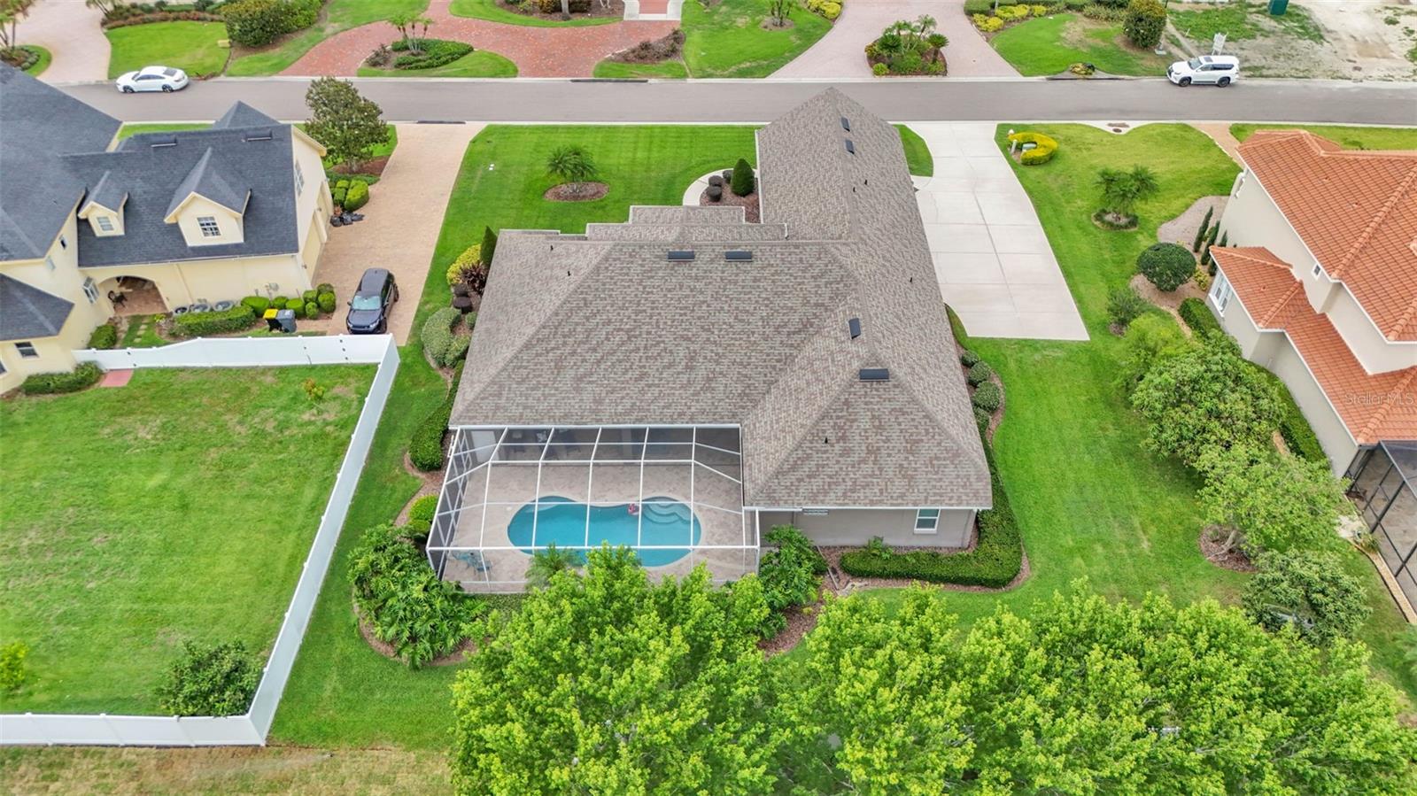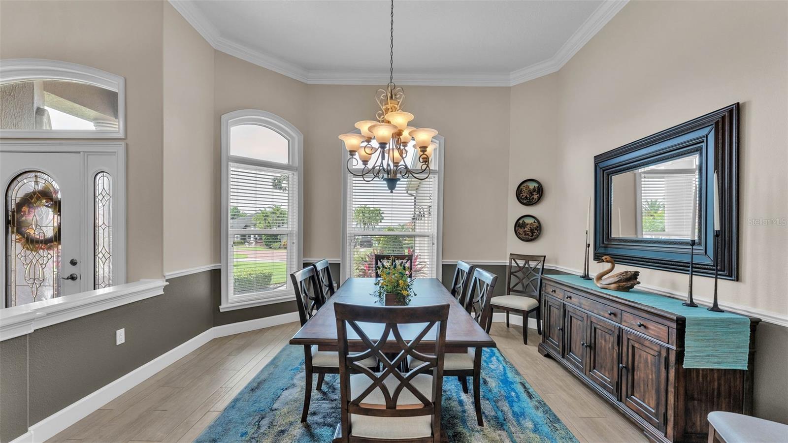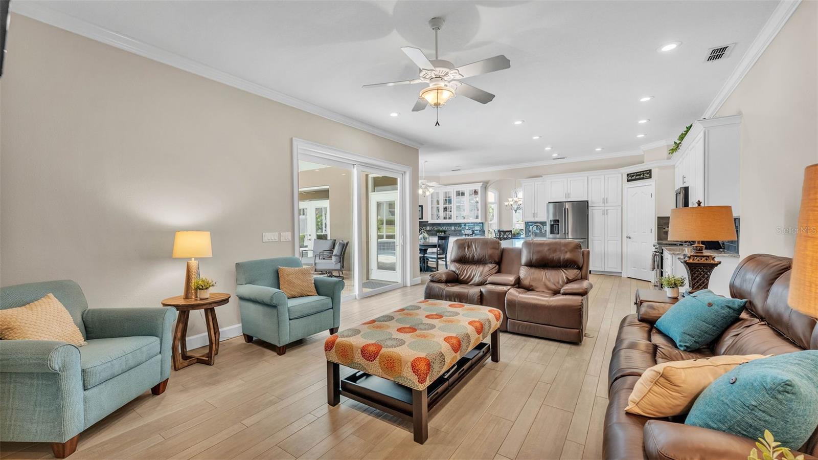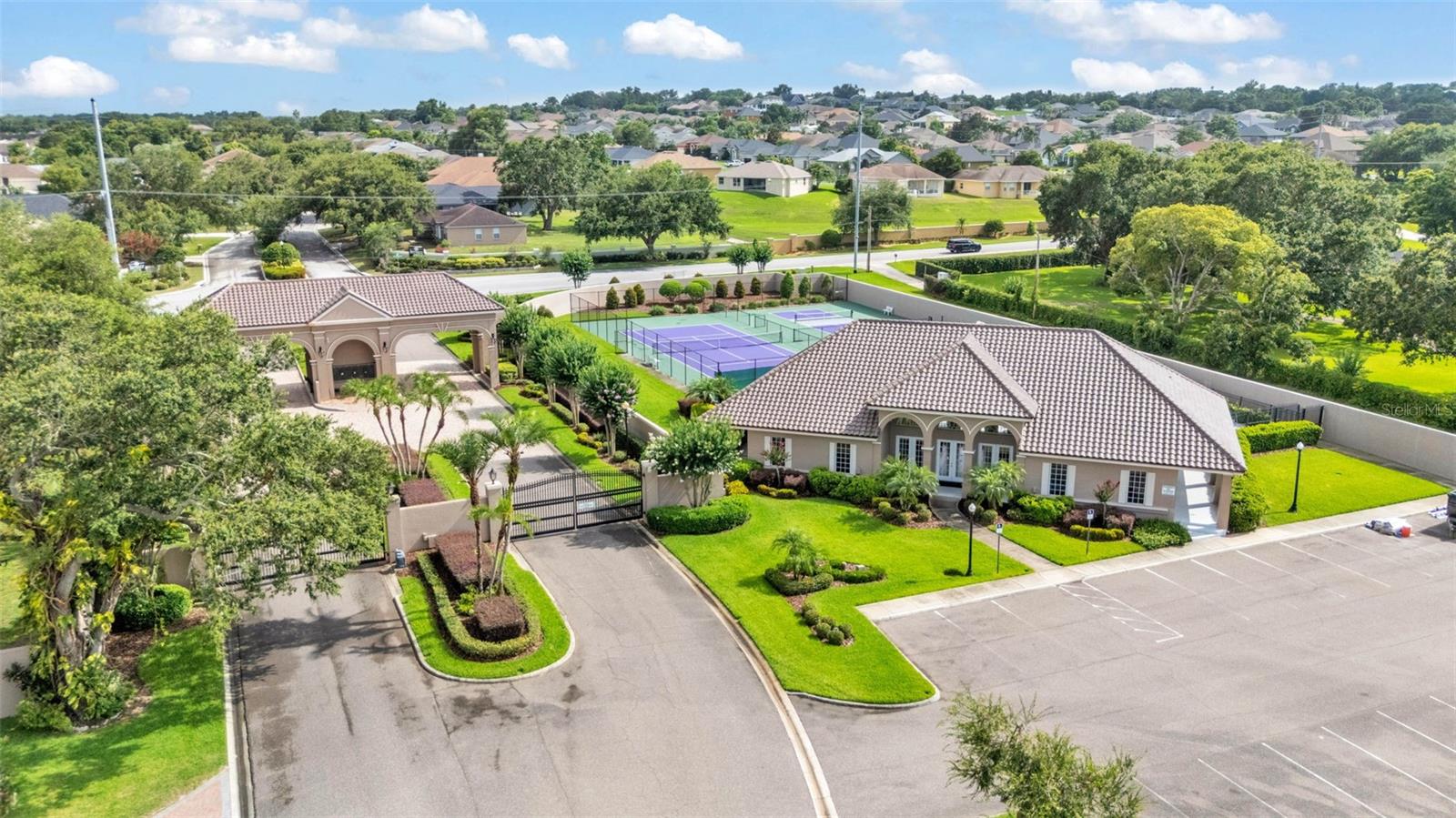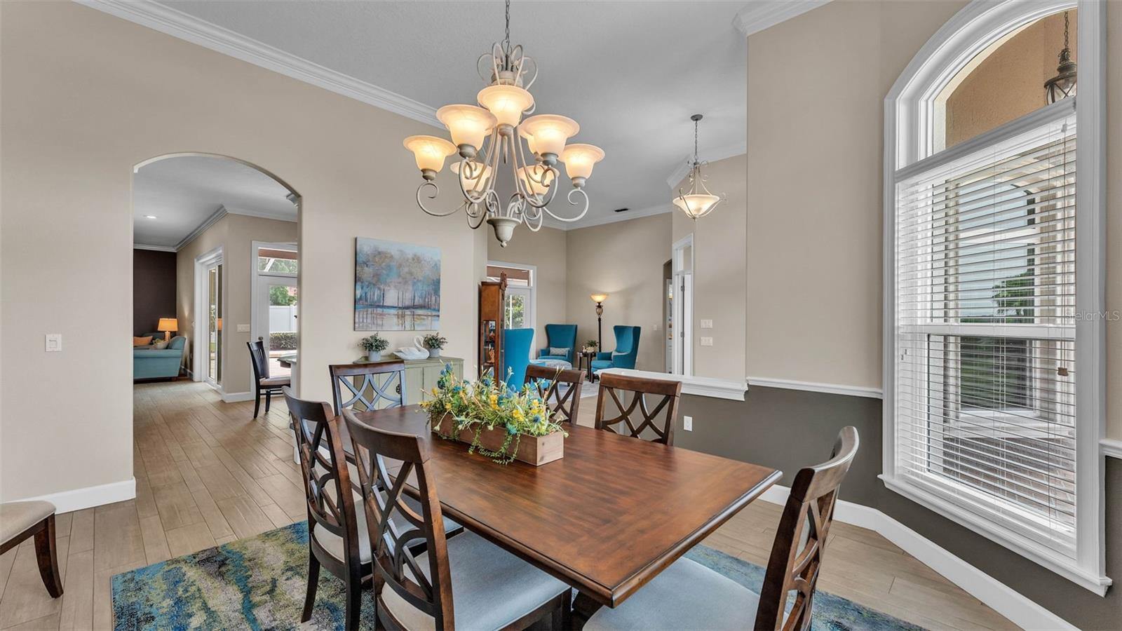 This exceptional, executive-style, custom-built pool home is located in the highly sought-after Highlands by the Lake neighborhood in South Lakeland, offering luxurious living in a prime location. Enjoy peaceful views of Banana Lake right across the street, a tranquil cul-de-sac setting, and the added privacy and security of a gated community featuring a clubhouse, pool, tennis and pickleball courts. You’ll be proud to call both this home and neighborhood your own. From the moment you arrive, you will appreciate the meticulous attention to detail that defines this home— from its impressive curb appeal, manicured lawn, and landscaping to the soaring, stately entryway. Inside, discover a pristine interior adorned with elegant design upgrades such as crown molding, plank-style tile flooring, transom windows, and high ceilings. The triple-split floor plan offers generous living spaces, abundant storage, and a layout perfect for both entertaining and everyday living. The first floor includes formal and informal living and dining areas, a spacious open kitchen, four bedrooms, and a dedicated office (with a closet, easily used as a fifth bedroom). The primary suite is comprised of a large bedroom with double-tray ceilings and French doors leading to the pool, plus a spa-like en-suite bathroom with two walk-in closets, separate vanities, a large tiled shower, soaking tub and water closet. Upstairs, you will find an oversized bonus room with a dry bar, half bathroom and an additional flex room for a second office, hobby area or storage. At the heart of the home lies the remodeled chef’s kitchen, featuring quartz countertops with a flush-mount sink, high-end stainless steel appliances, and a large island overlooking the family room. Custom cabinetry with pull-out shelves, two pantries (closet and cabinet), and built-in storage in the dinette area provide excellent functionality. The stone-accented fireplace adds cozy charm year-round in the Family room, which also features peaceful views and easy access to the pool area. Outdoor living is a true highlight of this home, with a paver-style porch surrounding the recently resurfaced private pool. A half "pool" bathroom and storage closet offer additional convenience, and the covered porch space provides shade and comfort. No detail was overlooked in the floor plan of this home — even the laundry room offers wonderful storage space and includes a washer, dryer, and freezer. The side-loading 3-car garage has a workshop area and added depth, offering ample parking space and an extended driveway for guests. Additional upgrades include energy-efficient double-pane windows, a central vacuum system, and tastefully updated bathrooms throughout the home. Conveniently located just minutes from top-rated schools, shopping, dining, and the upcoming hospital, with easy access to the Polk Parkway, this home offers an elevated lifestyle in a prime location, with a perfect blend of comfort, convenience, function and style.