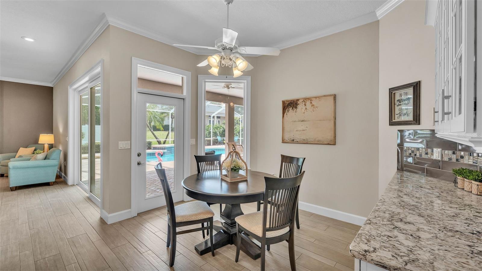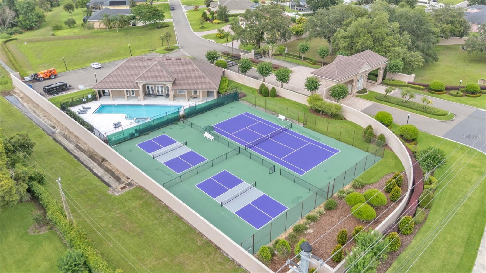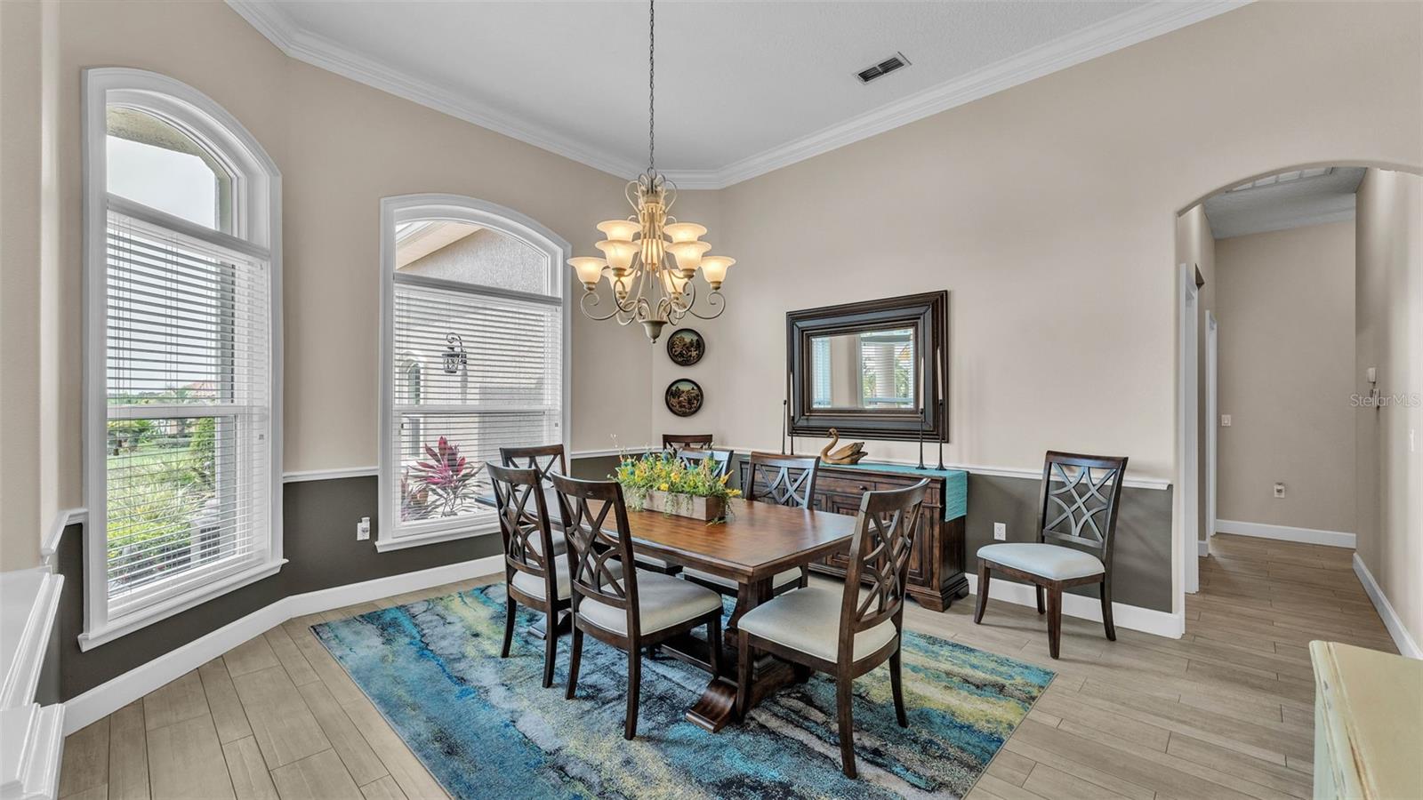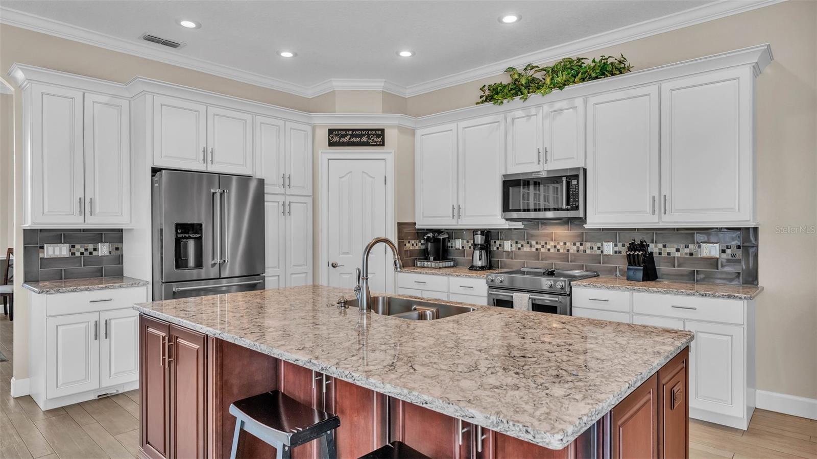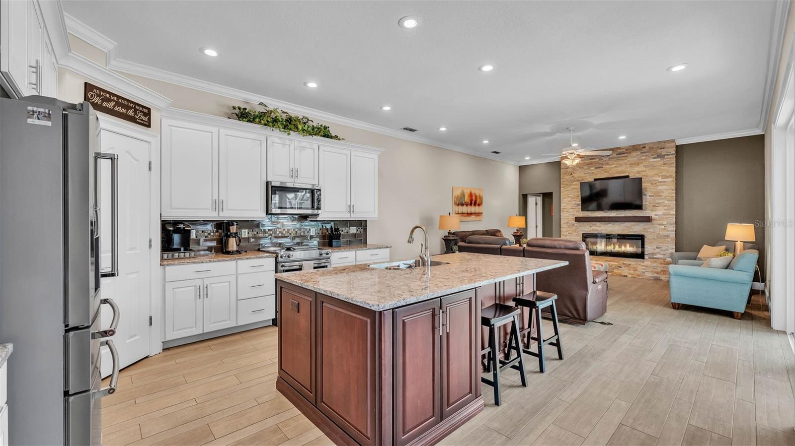 This exceptional, executive-style, custom-built pool home is located in the highly sought-after Highlands by the Lake neighborhood in South Lakeland, offering luxurious living in a prime location. Enjoy peaceful views of Banana Lake right across the street, a tranquil cul-de-sac setting, and the added privacy and security of a gated community featuring a clubhouse, pool, tennis and pickleball courts. You’ll be proud to call both this home and neighborhood your own. From the moment you arrive, you will appreciate the meticulous attention to detail that defines this home— from its impressive curb appeal, manicured lawn, and landscaping to the soaring, stately entryway. Inside, discover a pristine interior adorned with elegant design upgrades such as crown molding, plank-style tile flooring, transom windows, and high ceilings. The triple-split floor plan offers generous living spaces, abundant storage, and a layout perfect for both entertaining and everyday living. The first floor includes formal and informal living and dining areas, a spacious open kitchen, four bedrooms, and a dedicated office (with a closet, easily used as a fifth bedroom). The primary suite is comprised of a large bedroom with double-tray ceilings and French doors leading to the pool, plus a spa-like en-suite bathroom with two walk-in closets, separate vanities, a large tiled shower, soaking tub and water closet. Upstairs, you will find an oversized bonus room with a dry bar, half bathroom and an additional flex room for a second office, hobby area or storage. At the heart of the home lies the remodeled chef’s kitchen, featuring quartz countertops with a flush-mount sink, high-end stainless steel appliances, and a large island overlooking the family room. Custom cabinetry with pull-out shelves, two pantries (closet and cabinet), and built-in storage in the dinette area provide excellent functionality. The stone-accented fireplace adds cozy charm year-round in the Family room, which also features peaceful views and easy access to the pool area. Outdoor living is a true highlight of this home, with a paver-style porch surrounding the recently resurfaced private pool. A half "pool" bathroom and storage closet offer additional convenience, and the covered porch space provides shade and comfort. No detail was overlooked in the floor plan of this home — even the laundry room offers wonderful storage space and includes a washer, dryer, and freezer. The side-loading 3-car garage has a workshop area and added depth, offering ample parking space and an extended driveway for guests. Additional upgrades include energy-efficient double-pane windows, a central vacuum system, and tastefully updated bathrooms throughout the home. Conveniently located just minutes from top-rated schools, shopping, dining, and the upcoming hospital, with easy access to the Polk Parkway, this home offers an elevated lifestyle in a prime location, with a perfect blend of comfort, convenience, function and style.