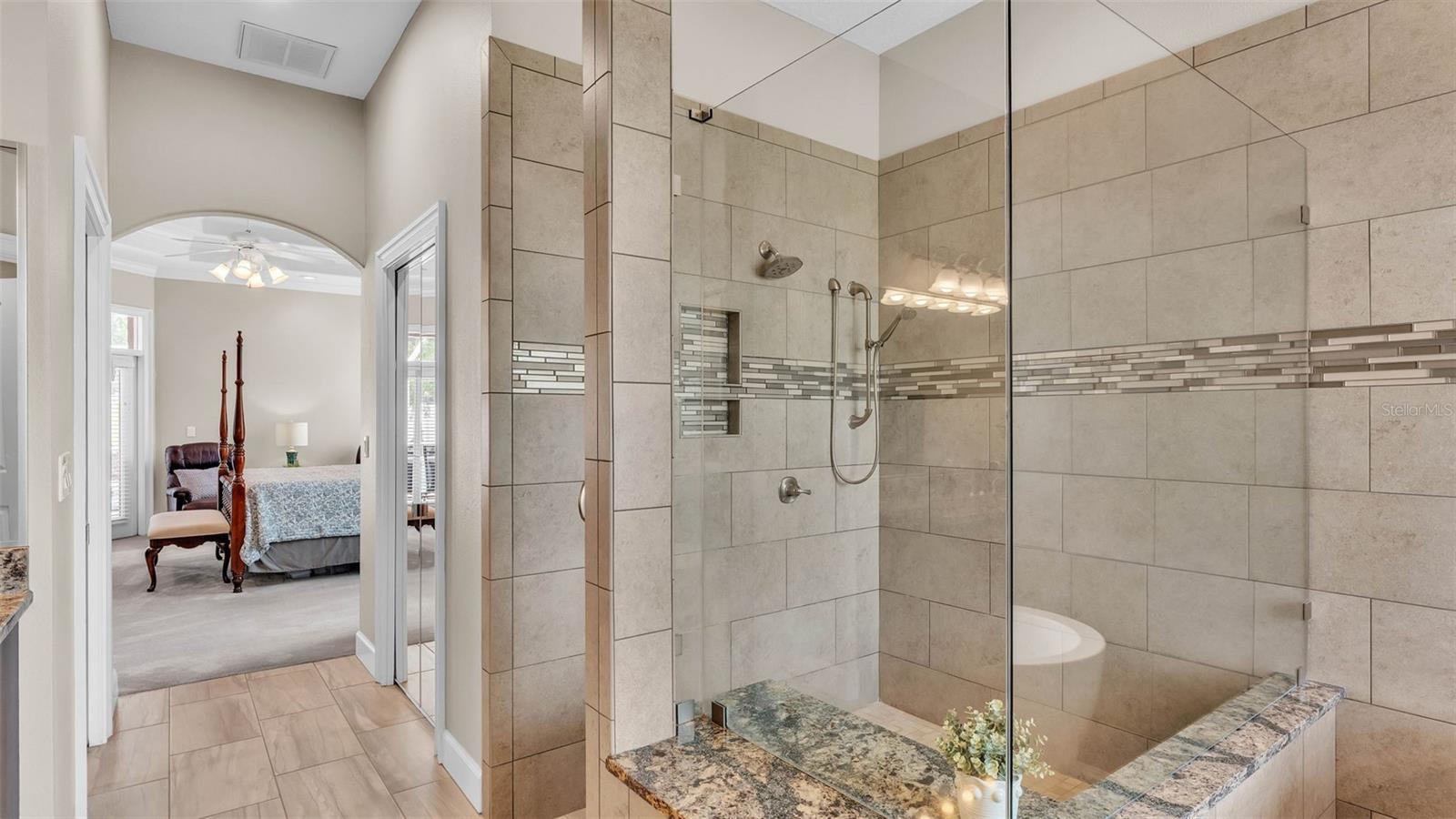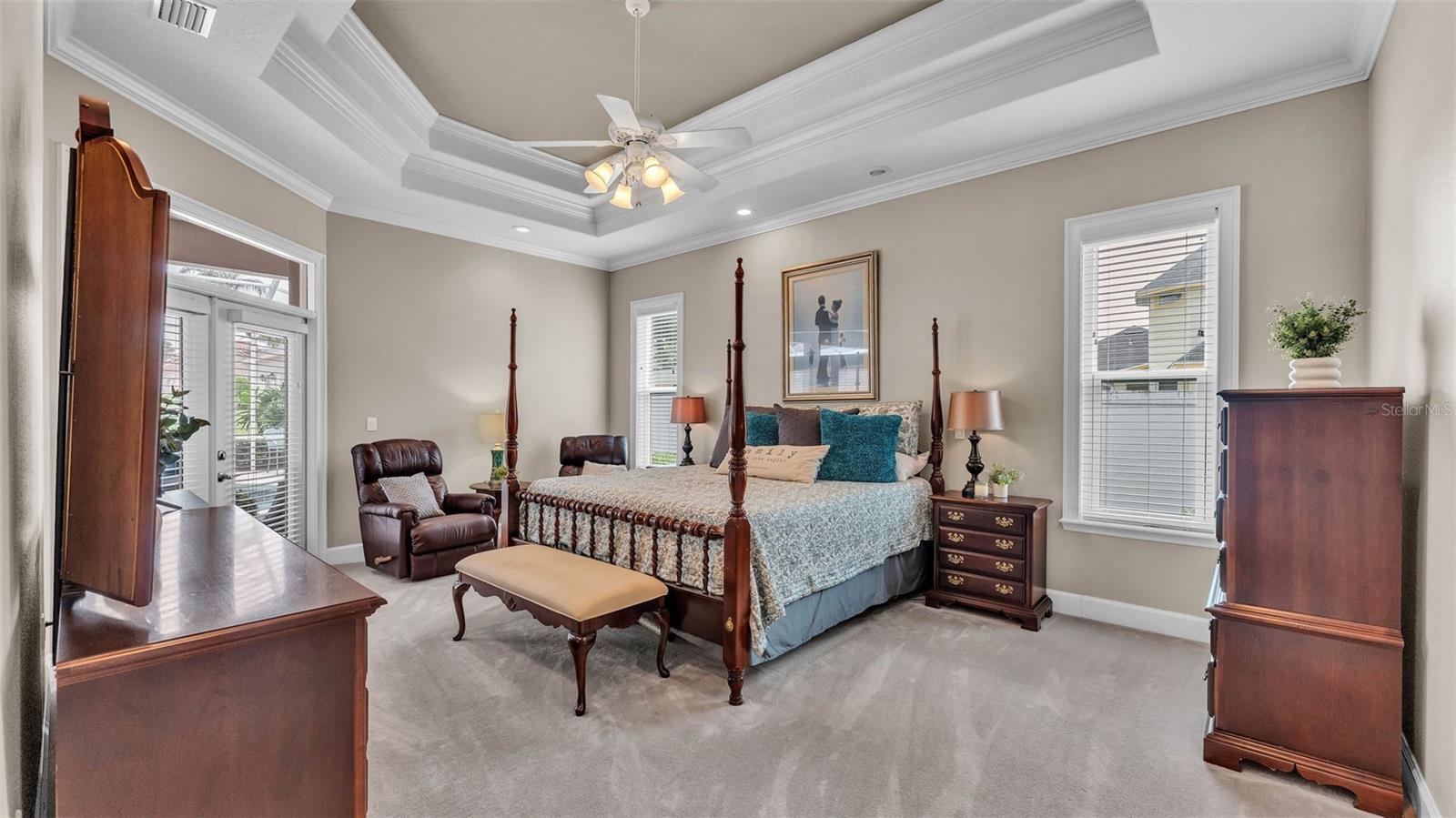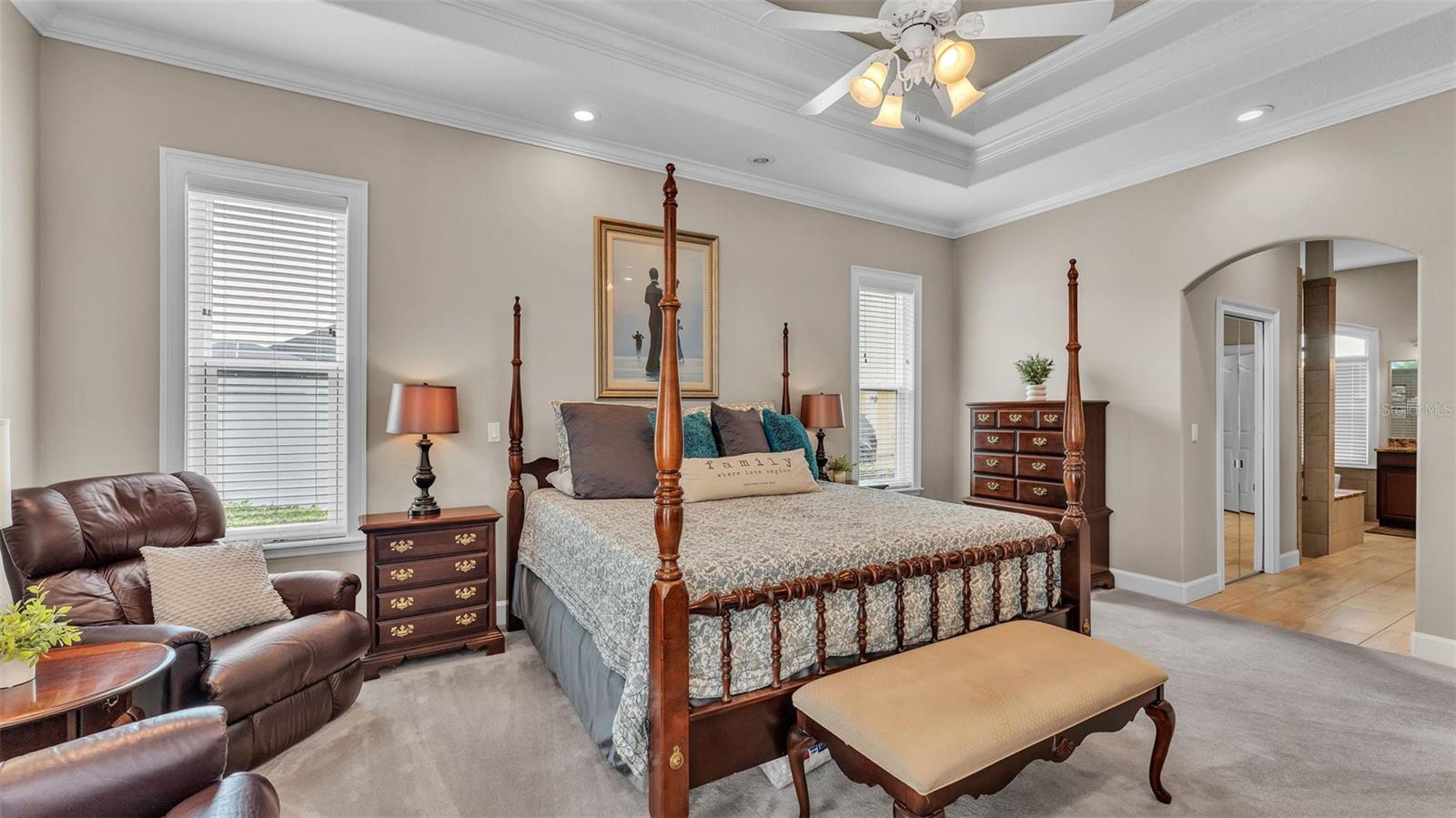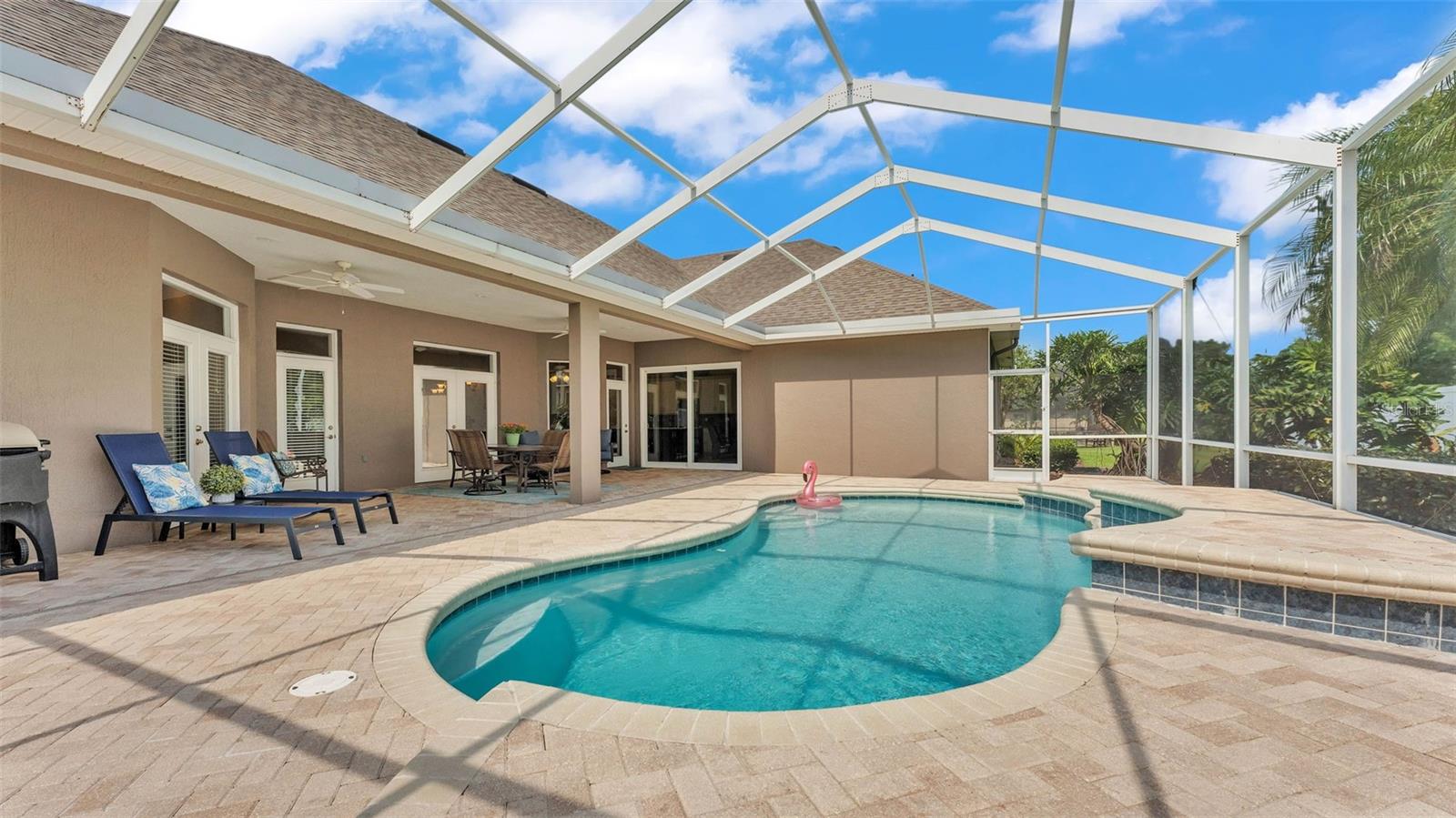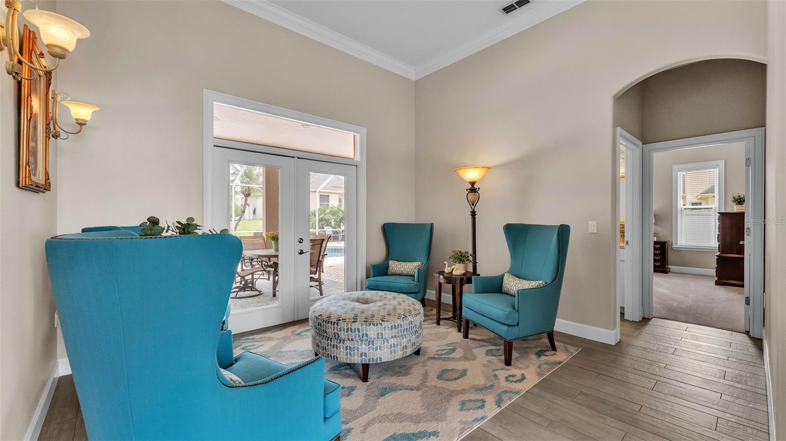 This exceptional, executive-style, custom-built pool home is located in the highly sought-after Highlands by the Lake neighborhood in South Lakeland, offering luxurious living in a prime location. Enjoy peaceful views of Banana Lake right across the street, a tranquil cul-de-sac setting, and the added privacy and security of a gated community featuring a clubhouse, pool, tennis and pickleball courts. You’ll be proud to call both this home and neighborhood your own. From the moment you arrive, you will appreciate the meticulous attention to detail that defines this home— from its impressive curb appeal, manicured lawn, and landscaping to the soaring, stately entryway. Inside, discover a pristine interior adorned with elegant design upgrades such as crown molding, plank-style tile flooring, transom windows, and high ceilings. The triple-split floor plan offers generous living spaces, abundant storage, and a layout perfect for both entertaining and everyday living. The first floor includes formal and informal living and dining areas, a spacious open kitchen, four bedrooms, and a dedicated office (with a closet, easily used as a fifth bedroom). The primary suite is comprised of a large bedroom with double-tray ceilings and French doors leading to the pool, plus a spa-like en-suite bathroom with two walk-in closets, separate vanities, a large tiled shower, soaking tub and water closet. Upstairs, you will find an oversized bonus room with a dry bar, half bathroom and an additional flex room for a second office, hobby area or storage. At the heart of the home lies the remodeled chef’s kitchen, featuring quartz countertops with a flush-mount sink, high-end stainless steel appliances, and a large island overlooking the family room. Custom cabinetry with pull-out shelves, two pantries (closet and cabinet), and built-in storage in the dinette area provide excellent functionality. The stone-accented fireplace adds cozy charm year-round in the Family room, which also features peaceful views and easy access to the pool area. Outdoor living is a true highlight of this home, with a paver-style porch surrounding the recently resurfaced private pool. A half "pool" bathroom and storage closet offer additional convenience, and the covered porch space provides shade and comfort. No detail was overlooked in the floor plan of this home — even the laundry room offers wonderful storage space and includes a washer, dryer, and freezer. The side-loading 3-car garage has a workshop area and added depth, offering ample parking space and an extended driveway for guests. Additional upgrades include energy-efficient double-pane windows, a central vacuum system, and tastefully updated bathrooms throughout the home. Conveniently located just minutes from top-rated schools, shopping, dining, and the upcoming hospital, with easy access to the Polk Parkway, this home offers an elevated lifestyle in a prime location, with a perfect blend of comfort, convenience, function and style.