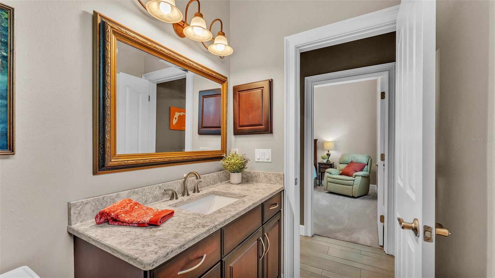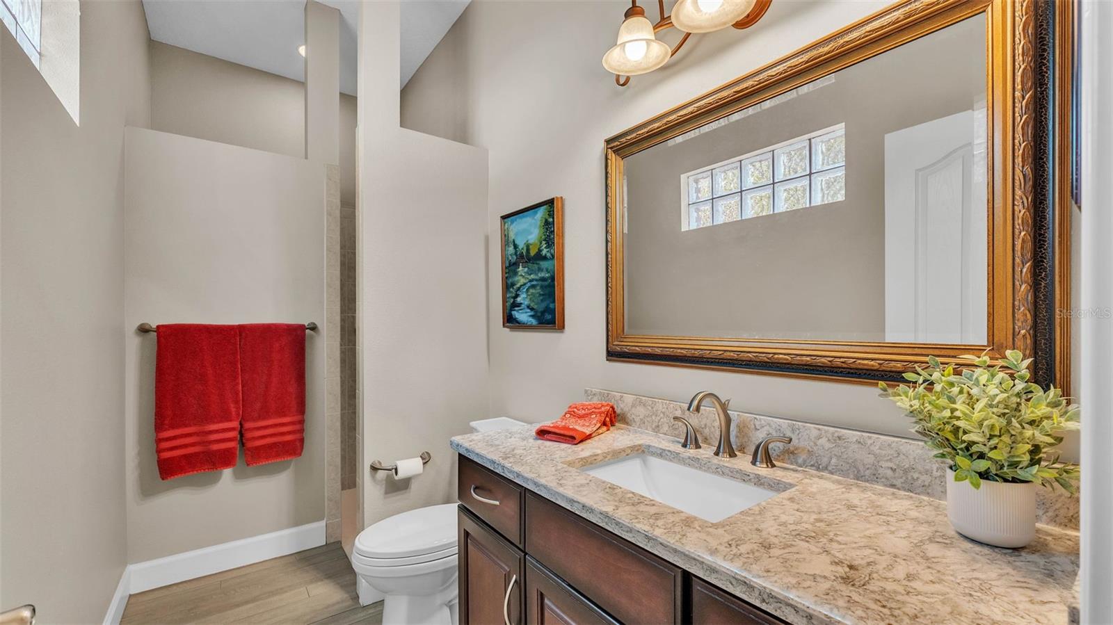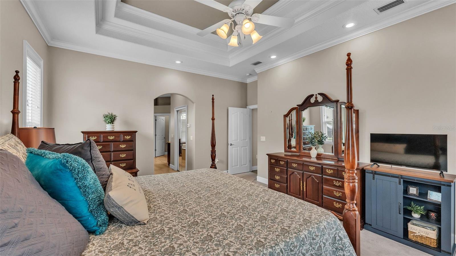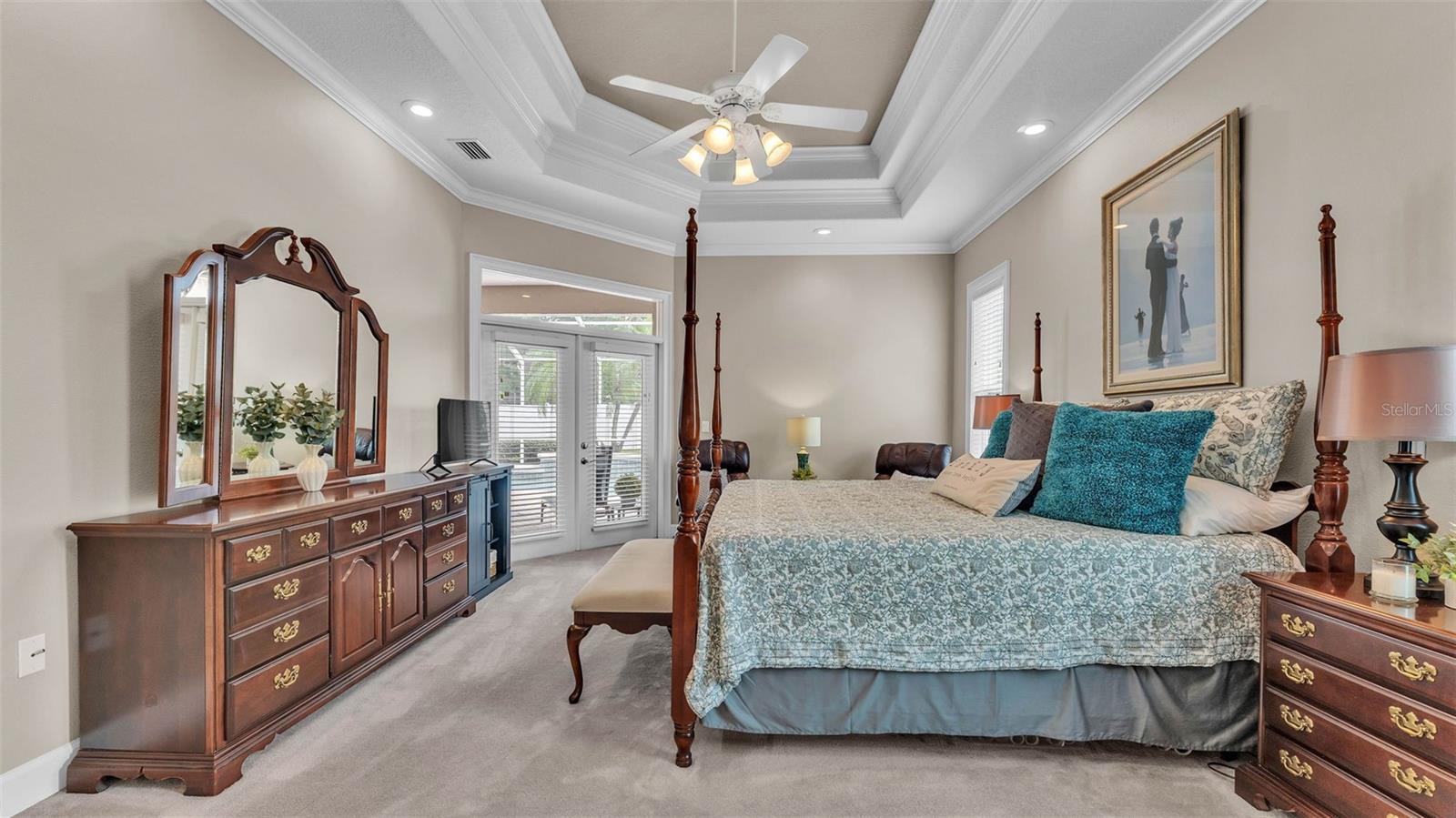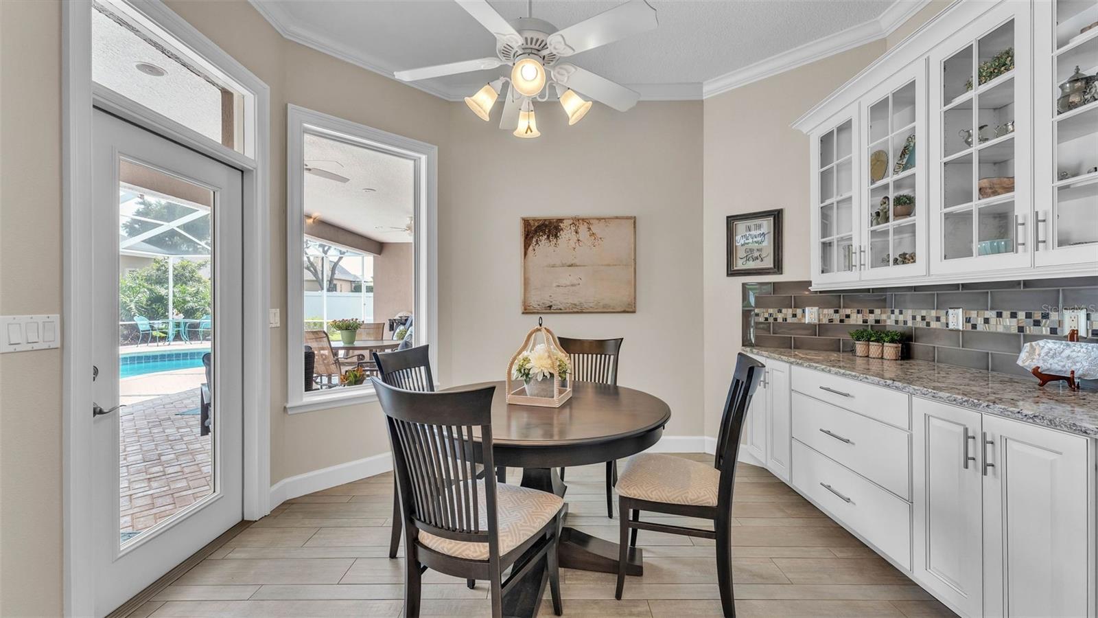 This exceptional, executive-style, custom-built pool home is located in the highly sought-after Highlands by the Lake neighborhood in South Lakeland, offering luxurious living in a prime location. Enjoy peaceful views of Banana Lake right across the street, a tranquil cul-de-sac setting, and the added privacy and security of a gated community featuring a clubhouse, pool, tennis and pickleball courts. You’ll be proud to call both this home and neighborhood your own. From the moment you arrive, you will appreciate the meticulous attention to detail that defines this home— from its impressive curb appeal, manicured lawn, and landscaping to the soaring, stately entryway. Inside, discover a pristine interior adorned with elegant design upgrades such as crown molding, plank-style tile flooring, transom windows, and high ceilings. The triple-split floor plan offers generous living spaces, abundant storage, and a layout perfect for both entertaining and everyday living. The first floor includes formal and informal living and dining areas, a spacious open kitchen, four bedrooms, and a dedicated office (with a closet, easily used as a fifth bedroom). The primary suite is comprised of a large bedroom with double-tray ceilings and French doors leading to the pool, plus a spa-like en-suite bathroom with two walk-in closets, separate vanities, a large tiled shower, soaking tub and water closet. Upstairs, you will find an oversized bonus room with a dry bar, half bathroom and an additional flex room for a second office, hobby area or storage. At the heart of the home lies the remodeled chef’s kitchen, featuring quartz countertops with a flush-mount sink, high-end stainless steel appliances, and a large island overlooking the family room. Custom cabinetry with pull-out shelves, two pantries (closet and cabinet), and built-in storage in the dinette area provide excellent functionality. The stone-accented fireplace adds cozy charm year-round in the Family room, which also features peaceful views and easy access to the pool area. Outdoor living is a true highlight of this home, with a paver-style porch surrounding the recently resurfaced private pool. A half "pool" bathroom and storage closet offer additional convenience, and the covered porch space provides shade and comfort. No detail was overlooked in the floor plan of this home — even the laundry room offers wonderful storage space and includes a washer, dryer, and freezer. The side-loading 3-car garage has a workshop area and added depth, offering ample parking space and an extended driveway for guests. Additional upgrades include energy-efficient double-pane windows, a central vacuum system, and tastefully updated bathrooms throughout the home. Conveniently located just minutes from top-rated schools, shopping, dining, and the upcoming hospital, with easy access to the Polk Parkway, this home offers an elevated lifestyle in a prime location, with a perfect blend of comfort, convenience, function and style.