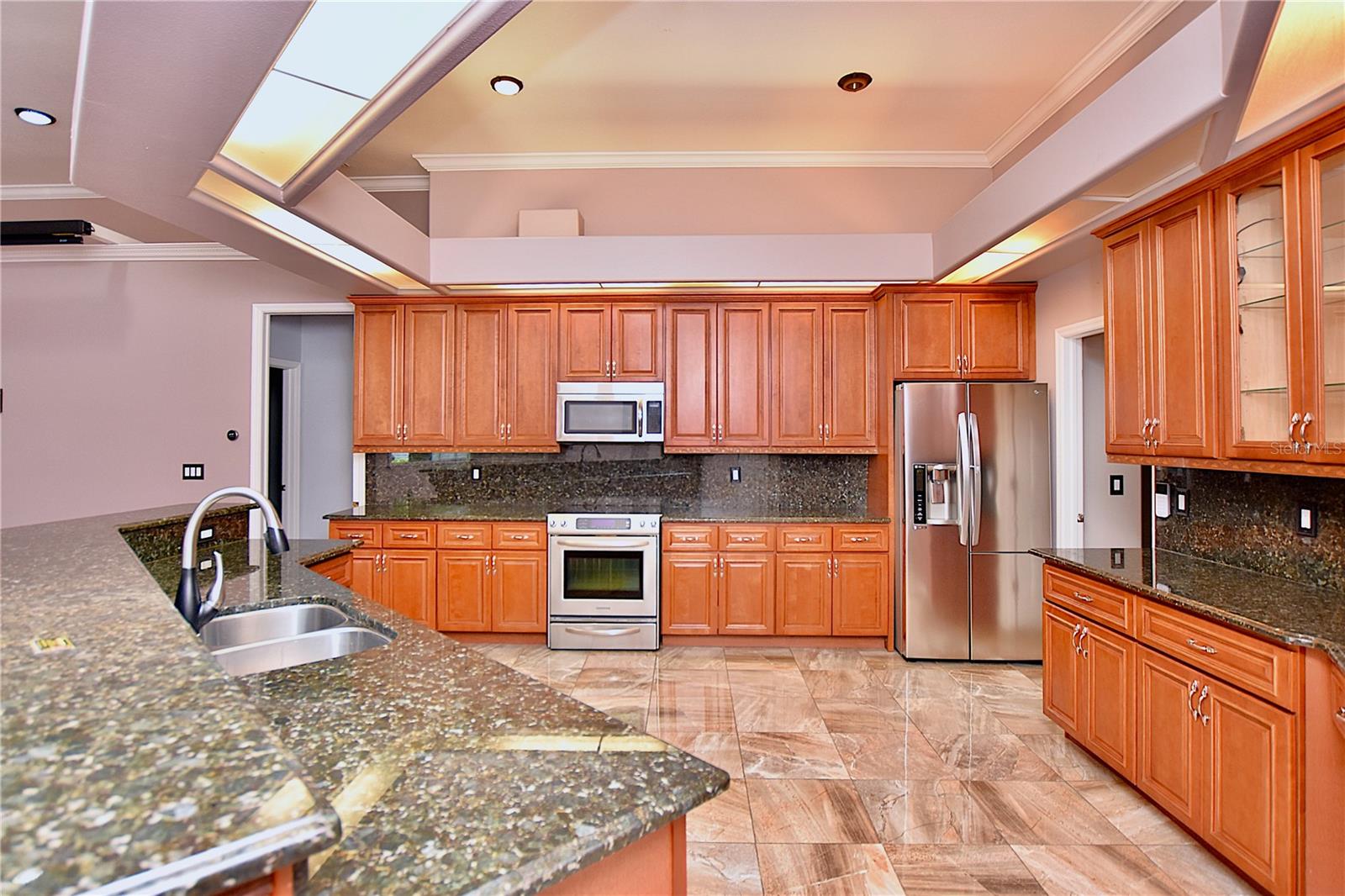 One or more photo(s) has been virtually staged. Welcome to this beautiful luxury upgraded and meticulously maintained home located in one of Lakeland's most sought-after gated communities of Hamilton Place! In a prime location, minutes from shopping and dining, this custom built home boasts 4 Bedrooms, 1 Den or Office, 3 Full Bathrooms, 3,102 square feet of living space, luxury floors throughout, a 3 car garage, and is situated on .33 of an acre lot. As you enter through the glass french doors you are greeted with lots warm natural light, high ceilings everywhere, a separate Dining Room and a spacious Family Room with easy access to the outdoor area. Past the entrance you will enjoy the Oversized Kitchen with new and upgraded appliances, custom built wood cabinets and beautifully appointed quartz countertops and tall backsplash. In addition there is a separate Breakfast Nook overlooking the Oversized Patio and Yard through a frameless window. In the open concept Living room you will find a large, luxurious and modern space for family and friends gatherings. Enjoy relaxing or entertaining on the Oversized Covered Porch where you will find the Outdoor Kitchen extra convenient for entertaining your guests. The large Master Bedroom feels spacious and luxurious with its inset ceiling and His and Hers walk-in closets. Enjoy a Spa-like experience in the Master Bath with its oversized whirlpool tub, a walk-in shower and separate vanities with quartz countertops. The home also boasts three Bedrooms, one of which has its own Ensuite Bathroom for your family or guests. The Laundry Room offers plenty of space, a sink and additional cabinets for storage. Speaking of space, you will not be disappointed as you will find lots of it in this house, including in the Oversized 3-Car Garage with its large driveway. You also won’t need to worry about the Roof or Main AC system for some time as they have been replaced in 2022. With its inviting layout and refined features throughout, this home is a true gem in a neighborhood you'll love to call home. To make your dream a reality the seller is offering $1,000.00 towards closing costs with a full-priced contract. Don't miss out on this house and schedule your private showing today!