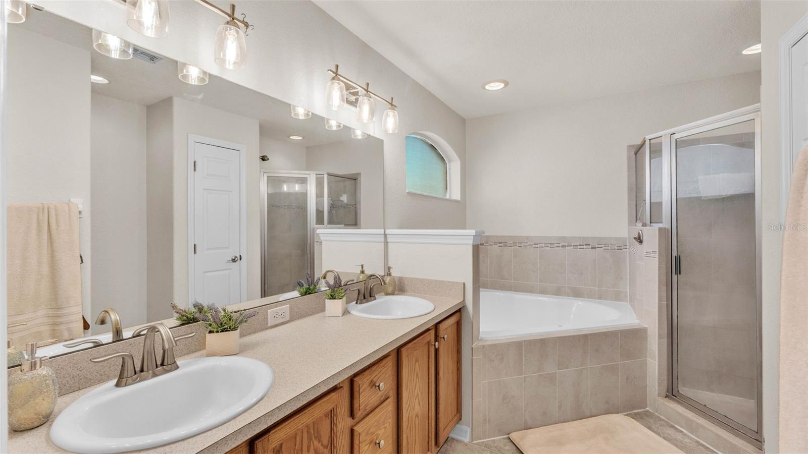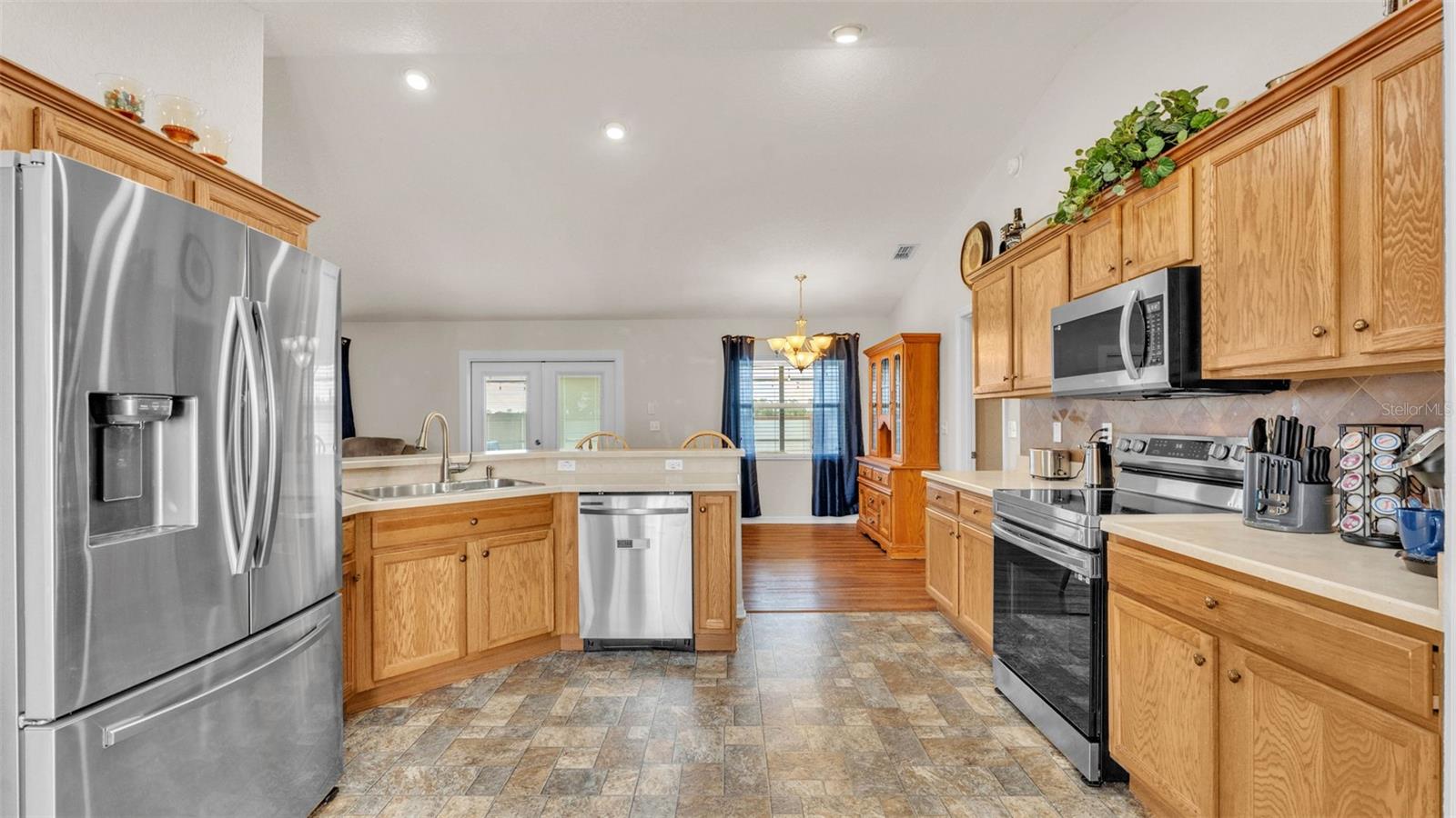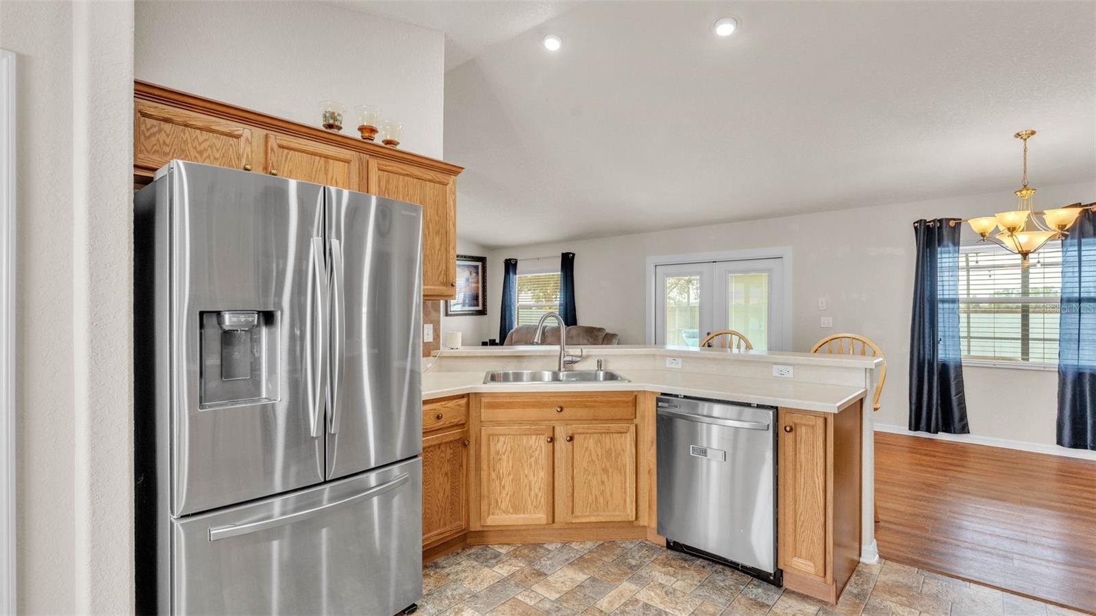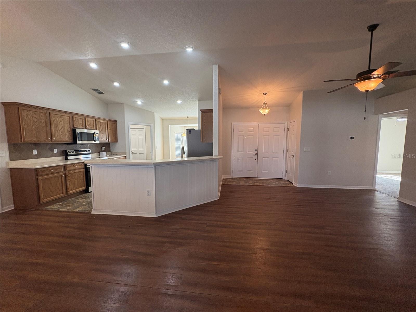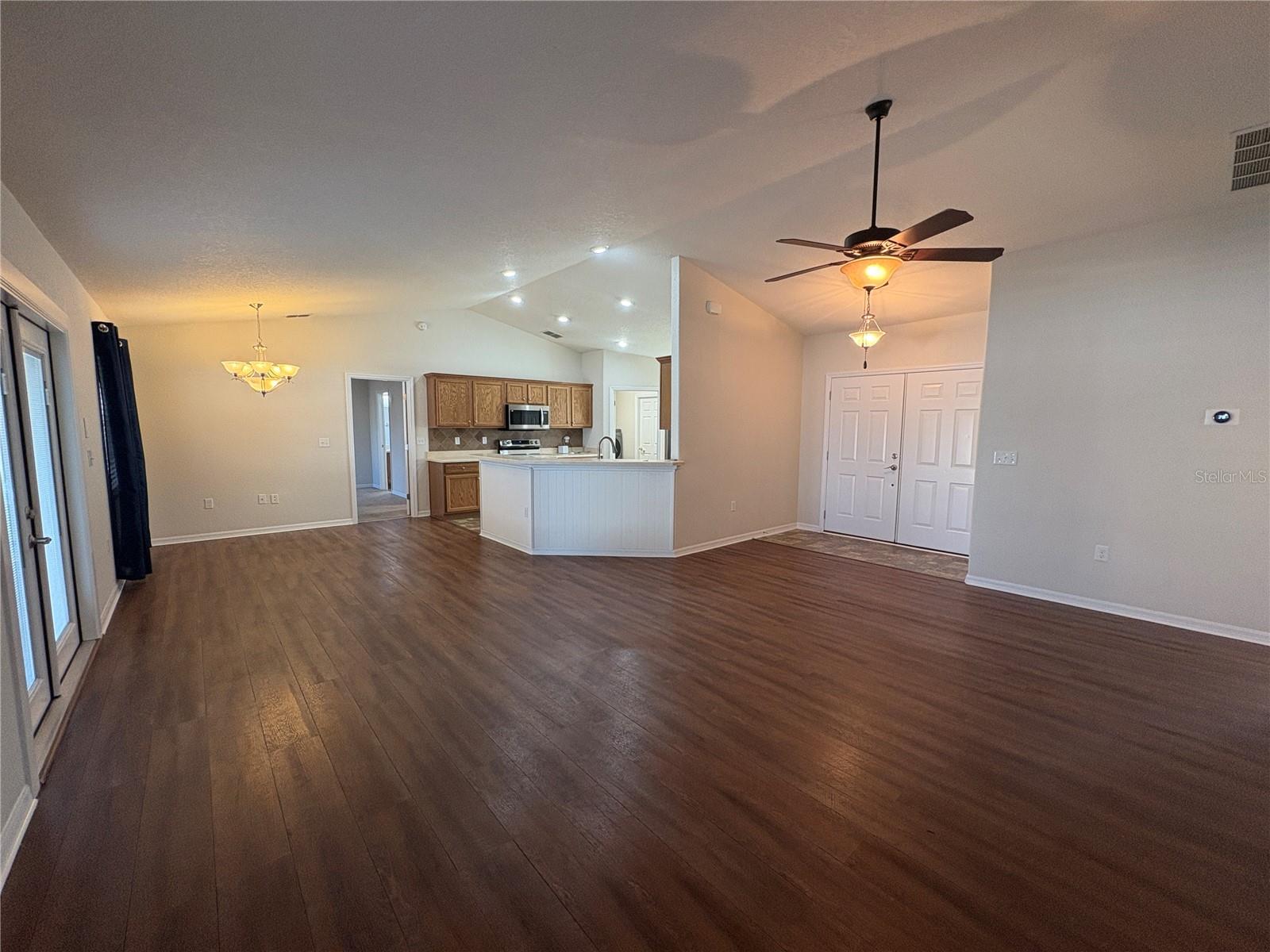 NEW UPDATES, and this SOLAR-HEATED SALTWATER POOL HOME has a NEW LOOK!!! Pool screen has been re-screened, and the exterior and interior of the home has been FRESHLY PAINTED as well as the pool deck! Upon entry through the elegant double door entry, you'll find a bright and welcoming atmosphere that features a vaulted ceiling and wood-look laminate flooring that extends from the living space to the dining area. The kitchen is a chef's dream and features a breakfast bar with plenty of seating space, decorative tile backsplash, ample cabinet and counter space for preparing meals, a pantry, and a breakfast nook which makes for a convenient eating area while you enjoy the bright views through the bay windows. This home offers a split bedroom open floorplan, perfect for entertaining and everyday living. The primary bedroom is a true retreat, and is complete with a spacious walk-in closet and luxurious en-suite bathroom featuring a garden tub, separate shower, and dual vanity. Enjoy peace and relaxation in this space every day. The other bedrooms are generously sized, each with already installed ceiling fans. The bedroom located in the front of the house also has a spacious walk-in closet. Through the french doors leads to the beautiful solar heated saltwater pool with a screen enclosure, perfect for year-round enjoyment. The backyard is fully fenced and offers both privacy and peace of mind, while providing breathtaking views of the annual SUN 'n FUN Air Show- all from the comfort of your own backyard! Some other note-worthy features of the home include: ROOF replaced in 2021, irrigation system, backyard storage shed, blinds throughout the home, fingerprint/code lock on primary bedroom door, keypad for garage door, and epoxy garage floor. The Towne Park Estates community is wonderful. LOW HOA & NO CDD! There is a playground, pavilion, sidewalks, and walking trails. This community makes for the perfect location to enjoy scenic views around the lakes and ponds. Residents of the community also have the opportunity to go fishing here- a dream for any fishing enthusiast! Don't miss this opportunity to own a slice of sunshine in the Sunshine State with great features for entertainment and serene outdoor living!