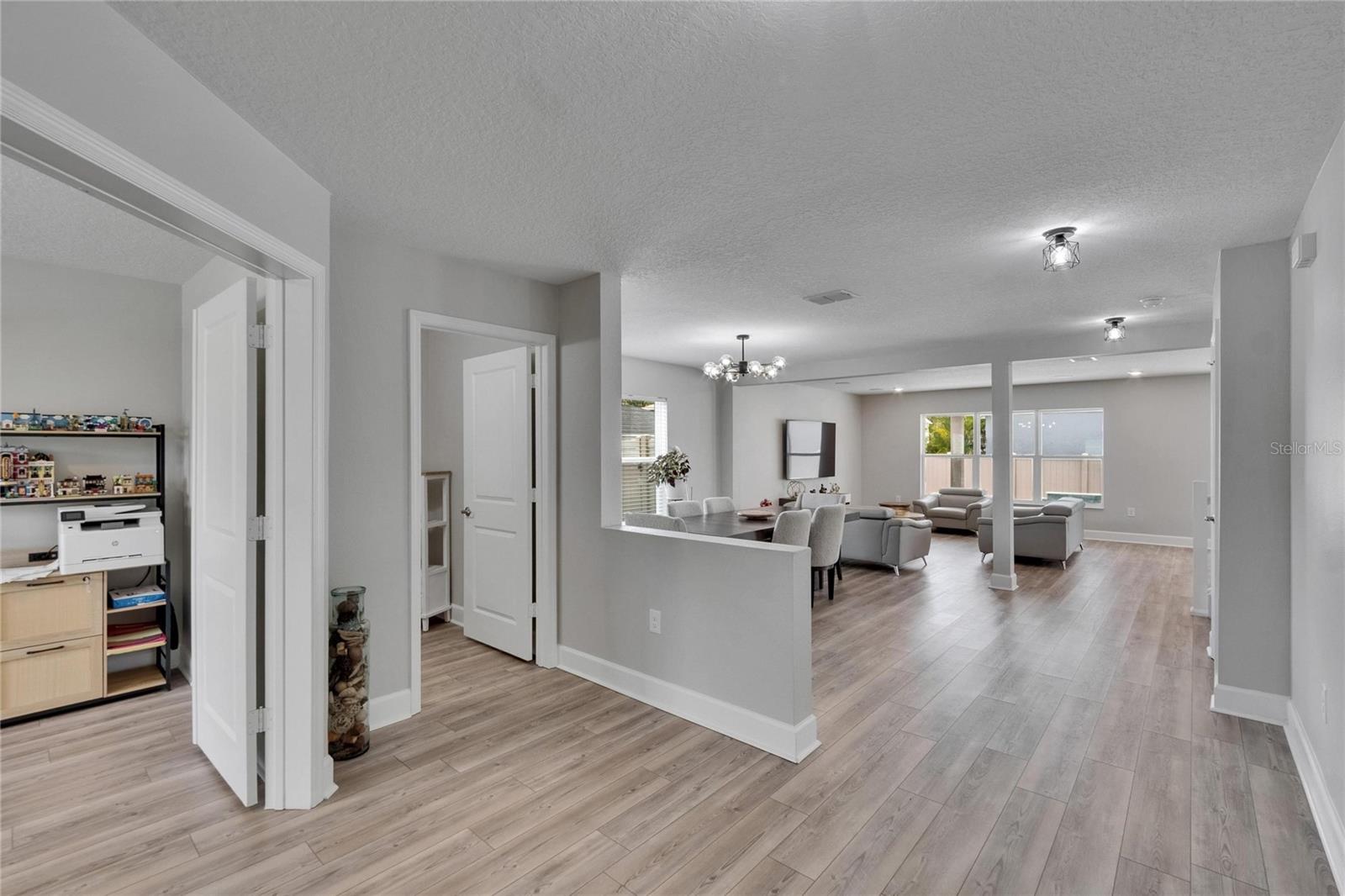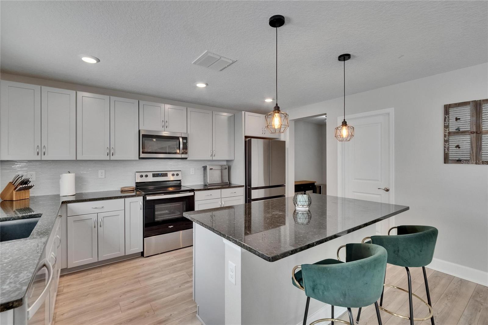 Stunning home in the sought-after south side of Lakeland, Parkside Community! Welcome to this beautiful, move-in ready home built in 2021, nestled in the desirible Parkside community on Lakeland's south side. This modern two-story residence offers 4 spacious bedrooms, 2 full bathrooms, and a guest bedroom conviently located on the main floor. Step inside and be greeted by an expansive open floor plan designed for both comfort and entertaining. The first floor features a versatile office/den, guest bath, formal dining room, a large great room, and a well designed kitchen. The kitchen boasts granite countertops, stainless steel appliances, a large island with a breakfast bar, and a walk-in pantry, perfect for hosting or everyday living. Upstairs, you'll find a well planned master suite, three additional bedrooms, a bonus room, and a dedicated laundry room. The open concept design allows you to stay connected with family and guests while preparing meals in your kitchen. This home is loaded with lots of upgrades, including: PURITY H2O WATER SOFTENER, REVERSE OSMOSIS SYSTEM, LUXURY VINYL FLOORING throught except the stairs. It also features SMART HOME NEST DOORBELL, ECOBEE SMART THERMOSTAT, SMART GARAGE DOOR OPENER, RACHIO SMART IRRIGATION SYSTEM, SAMSUNG SMART WASHER AND DRYER with pedestals, 5.1 IN-CEILING SURROUND SYSTEM IN BOTHE LIVING ROOM AND BONUS ROOM, EPOXLY-COATED GARAGE FLOORS, UTILITY TRACK SYSTEM, AND A HIGH-SPEED EV CHARGER. Step outisde to yor private Florida oasis with a 12x30 sparkling pool that has a sun shelf, dual waterfalls, integrated lighting, and SMART CONTROL for easy use. It is the perfect place to relax or entertain year round. Ideally located near restaurants, hospitals, grocery stores, pharmacies and entertainment, this home combines style, convienience, and smart living. Don't miss your chance to own this incredible home. SCHEDULE YOUR SHOWING TODAY AND MAKE IT YOURS!