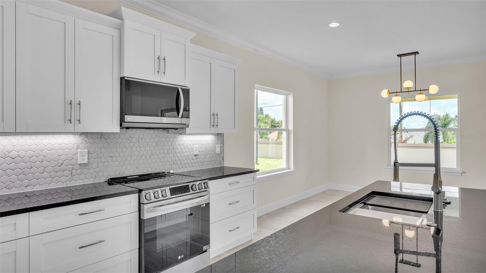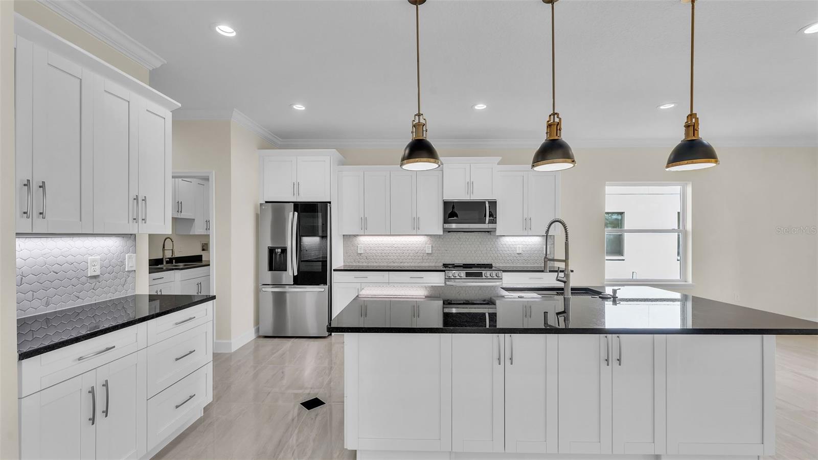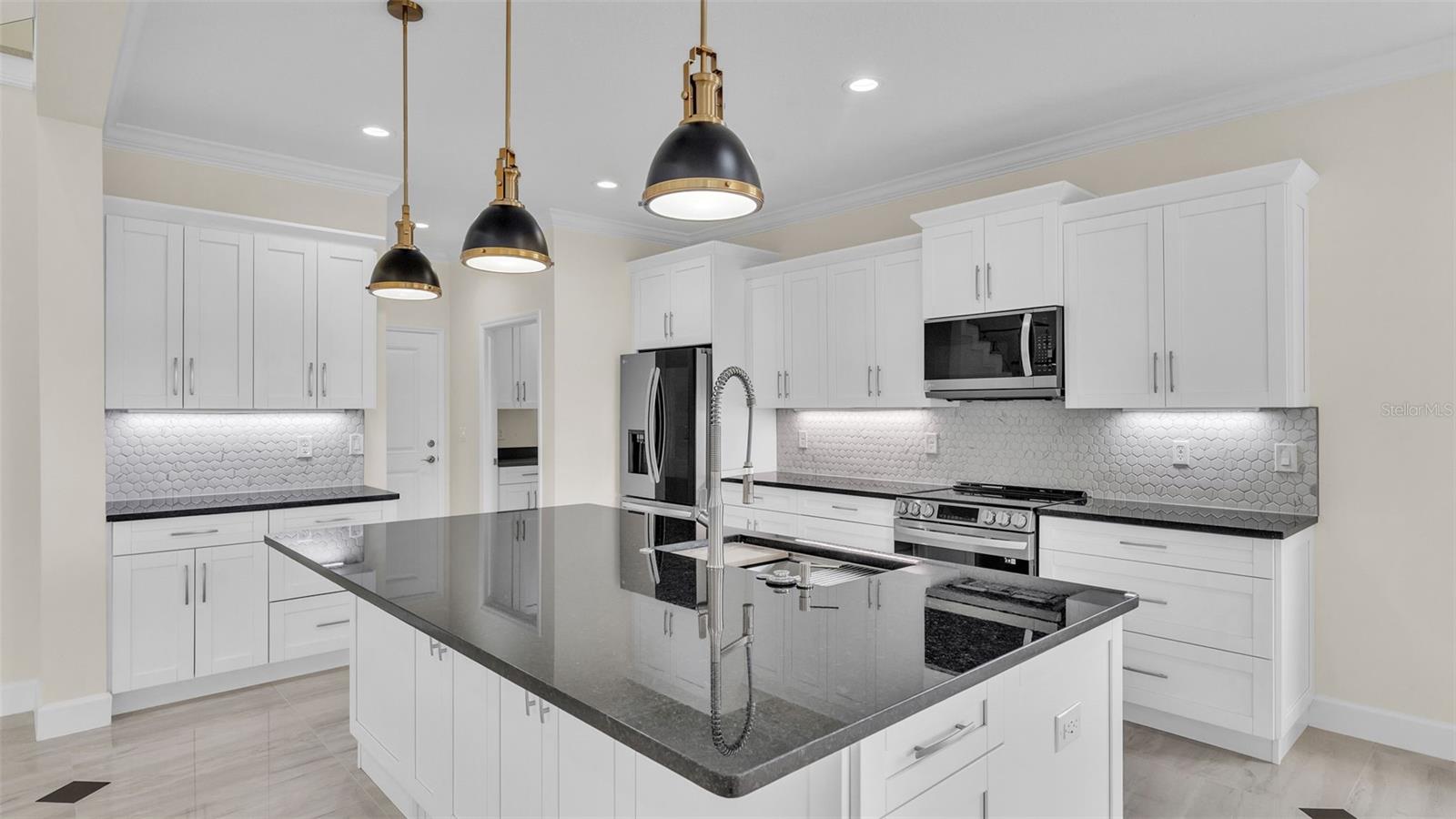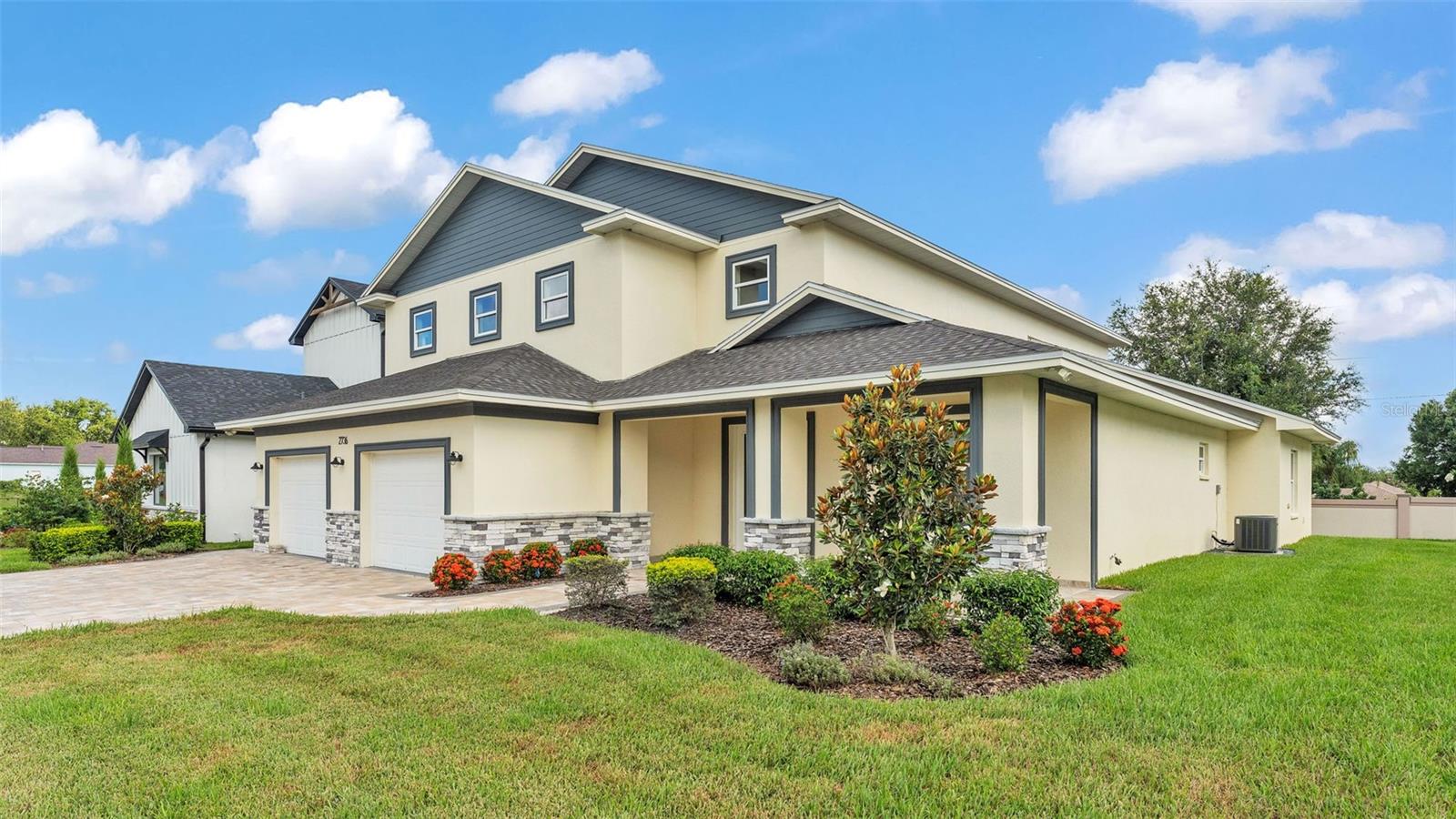 One or more photo(s) has been virtually staged. **SELLER MOTIVATED. PRICED TO SELL.** Welcome to your dream home—a brand new, custom-built masterpiece by Reeva Construction, ideally situated in the exclusive gated community of Sunrise Landing in South Lakeland. This move-in ready residence offers the perfect blend of luxury and comfort, boasting 5 spacious bedrooms, 5 elegant bathrooms, a dedicated media room, and an office that caters to all your needs. As you walk through the inviting French doors, you'll be greeted by beautifully laid tile flooring that flows seamlessly throughout the open floor plan, creating an airy and welcoming atmosphere. The gourmet kitchen is a chef's paradise, featuring top-of-the-line stainless steel appliances, stunning granite countertops, a chic backsplash, and custom cabinetry. A generously sized walk-in pantry provides ample storage, while the kitchen overlooks a vast living room, perfect for entertaining family and friends. The first floor is a sanctuary, housing the primary bedroom that exudes sophistication. This tranquil retreat features a large walk-in closet and a luxurious en-suite bathroom, complete with dual sinks, a meticulously designed walk-in tiled shower, and a separate jacuzzi tub for ultimate relaxation. An additional bedroom on this level, along with its own private bathroom, is perfect for accommodating guests or family members. Venture upstairs to discover a dedicated media or game room, ideal for movie nights or leisurely afternoons with loved ones. An additional versatile room can serve as an office or study, providing a quiet space for work or contemplation. The third bedroom, elegantly designed as a second primary suite, includes an en-suite bathroom with dual sinks, a walk-in tiled shower, and a soothing jacuzzi tub. The remaining bedrooms are generously sized, with one featuring a separate bathroom for added convenience. Step outside to your covered balcony, an idyllic spot to savor a morning coffee or unwind in the evenings while taking in serene views. This exceptional home offers a rare opportunity to move in without the hassles of waiting for construction, all while being conveniently located near a variety of retailers, gourmet restaurants, and the Parkway for easy commuting. Don’t miss your chance to experience luxury living in this exquisite custom home. Schedule your private showing today!