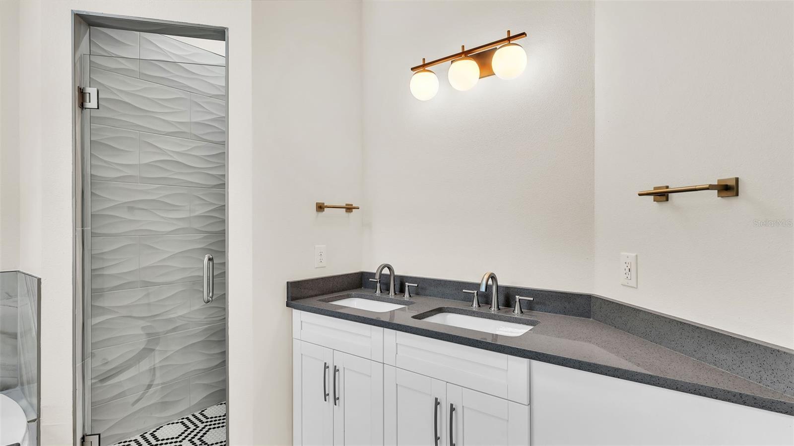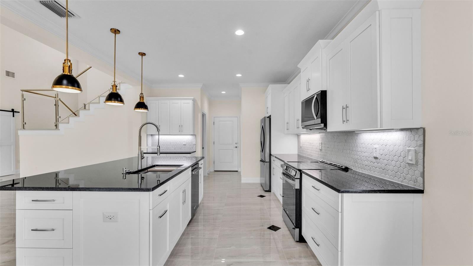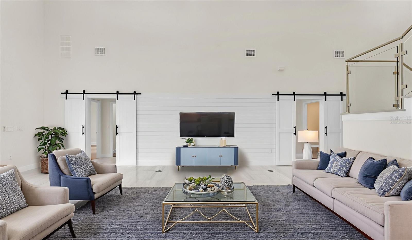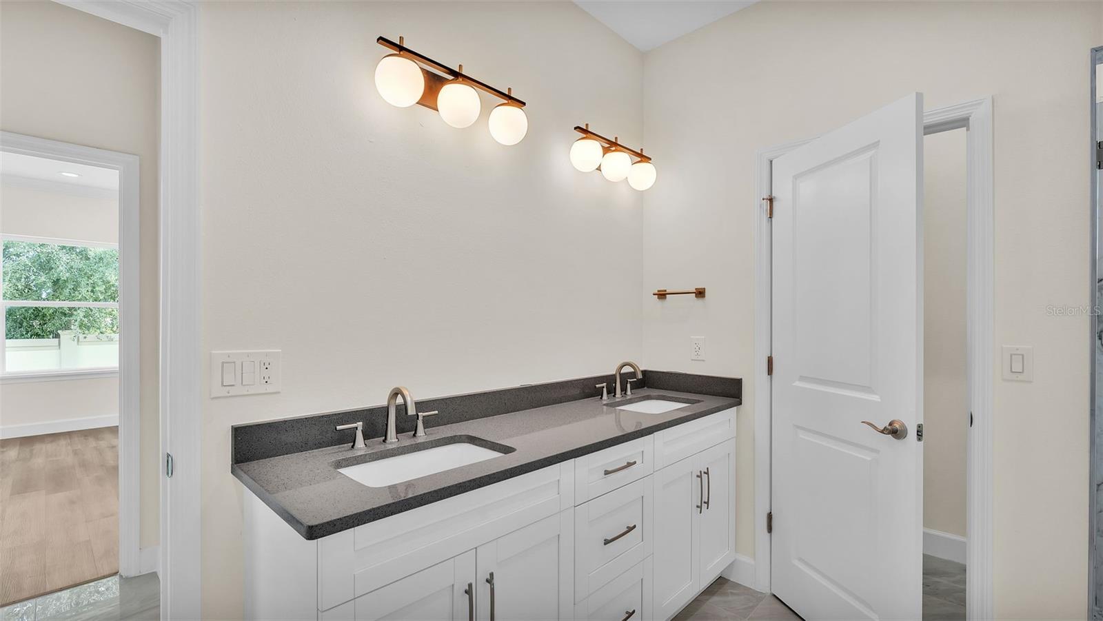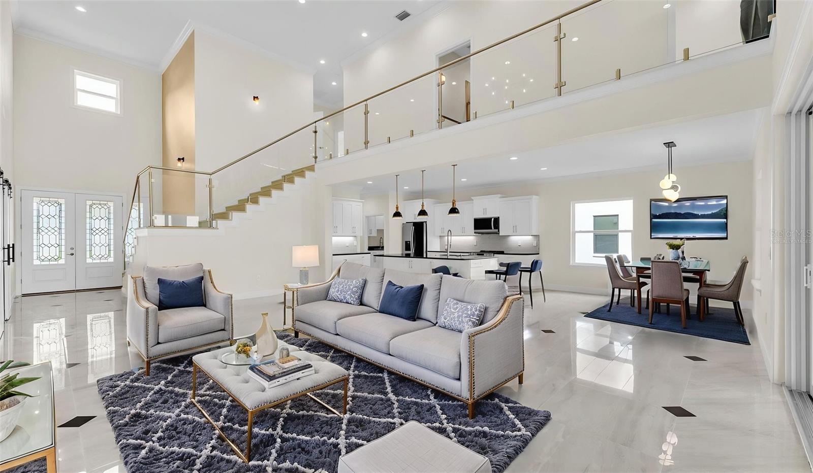 One or more photo(s) has been virtually staged. **SELLER MOTIVATED. PRICED TO SELL.** Welcome to your dream home—a brand new, custom-built masterpiece by Reeva Construction, ideally situated in the exclusive gated community of Sunrise Landing in South Lakeland. This move-in ready residence offers the perfect blend of luxury and comfort, boasting 5 spacious bedrooms, 5 elegant bathrooms, a dedicated media room, and an office that caters to all your needs. As you walk through the inviting French doors, you'll be greeted by beautifully laid tile flooring that flows seamlessly throughout the open floor plan, creating an airy and welcoming atmosphere. The gourmet kitchen is a chef's paradise, featuring top-of-the-line stainless steel appliances, stunning granite countertops, a chic backsplash, and custom cabinetry. A generously sized walk-in pantry provides ample storage, while the kitchen overlooks a vast living room, perfect for entertaining family and friends. The first floor is a sanctuary, housing the primary bedroom that exudes sophistication. This tranquil retreat features a large walk-in closet and a luxurious en-suite bathroom, complete with dual sinks, a meticulously designed walk-in tiled shower, and a separate jacuzzi tub for ultimate relaxation. An additional bedroom on this level, along with its own private bathroom, is perfect for accommodating guests or family members. Venture upstairs to discover a dedicated media or game room, ideal for movie nights or leisurely afternoons with loved ones. An additional versatile room can serve as an office or study, providing a quiet space for work or contemplation. The third bedroom, elegantly designed as a second primary suite, includes an en-suite bathroom with dual sinks, a walk-in tiled shower, and a soothing jacuzzi tub. The remaining bedrooms are generously sized, with one featuring a separate bathroom for added convenience. Step outside to your covered balcony, an idyllic spot to savor a morning coffee or unwind in the evenings while taking in serene views. This exceptional home offers a rare opportunity to move in without the hassles of waiting for construction, all while being conveniently located near a variety of retailers, gourmet restaurants, and the Parkway for easy commuting. Don’t miss your chance to experience luxury living in this exquisite custom home. Schedule your private showing today!