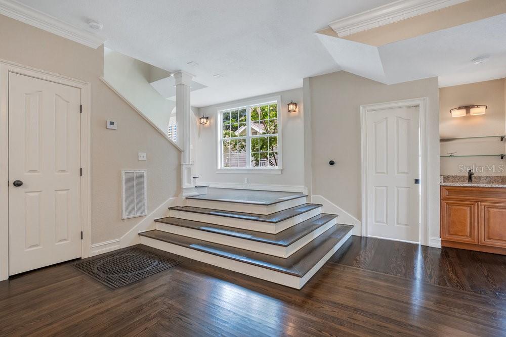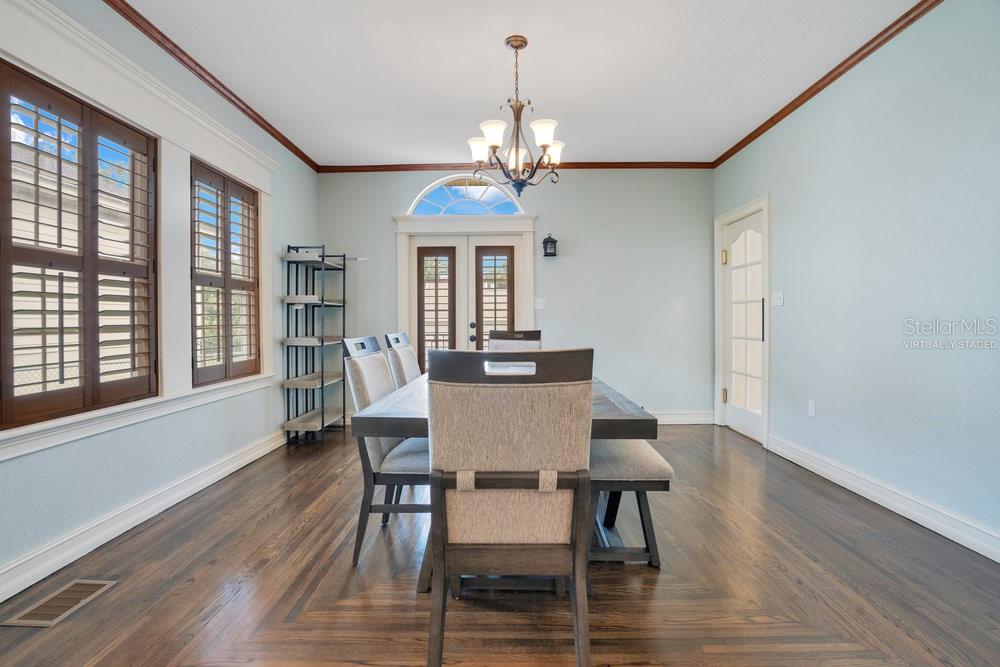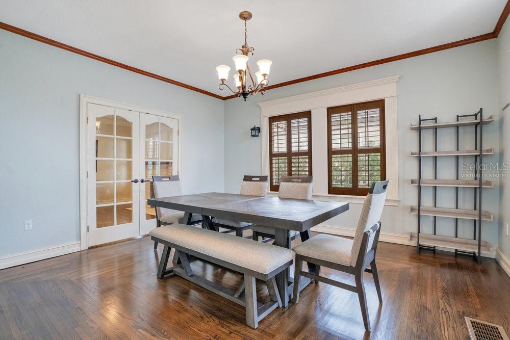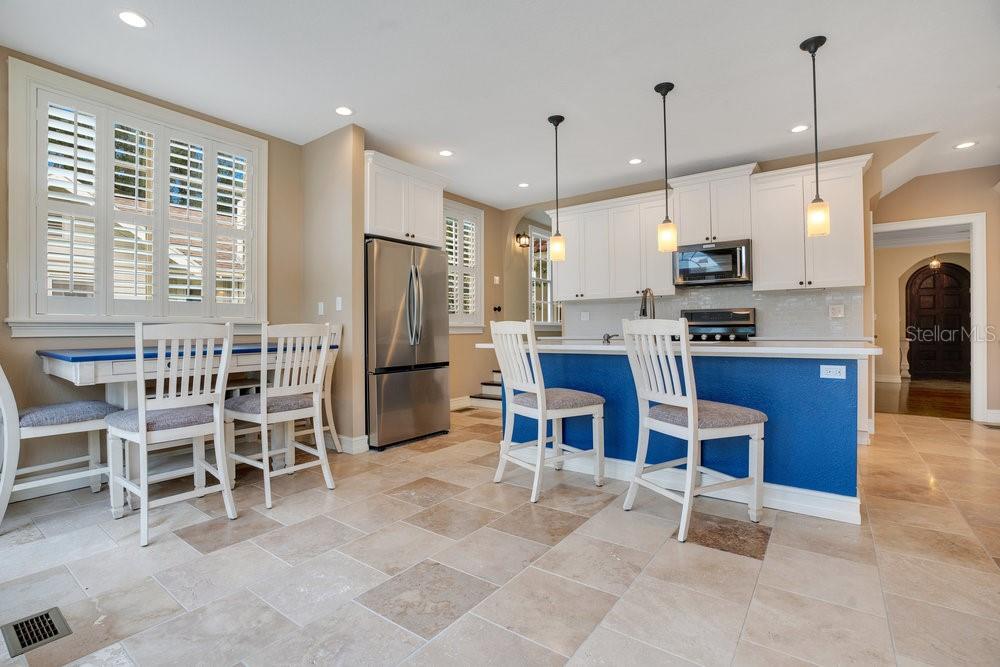 One or more photo(s) has been virtually staged. BEACON HILL HISTORIC DISTRICT | SPANISH REVIVAL TREASURE Welcome to the heart of Lakeland’s beloved Beacon Hill Historic District, where homes rarely come on the market—and this absolutely stunning 1925 Spanish Revival residence is truly a rare find. Thoughtfully and thoroughly renovated while preserving its rich architectural charm, this 100-year-old home blends timeless elegance with the comforts of modern living. From the moment you step inside, natural light pours into every room, highlighting the original wood floors, custom architectural details, archways, and the beautiful craftsmanship throughout. A grand formal entry, crowned with a skylight, leads to a spacious living room anchored by a classic wood-burning fireplace and a wide, gracefully curved staircase with dual access from the kitchen. The main level offers a formal dining room with a swinging door to the kitchen, a private office, and a cozy family room or den, which includes a closet and can easily serve as a fourth bedroom. There's also a stylish half bath and generous storage throughout. The kitchen is a dream for both everyday living and entertaining, featuring high-end KitchenAid appliances, a gas range with double ovens, wood cabinetry, quartz countertops, and a fantastic butler’s pantry outfitted with wood counters, custom cabinetry, and a wine and beverage fridge. Plantation shutters enhance the windows throughout most of the home, offering both style and functionality. Upstairs, the expansive primary suite offers a peaceful retreat, complete with a walk-in closet with wood shelving, an additional closet, and a luxurious ensuite bathroom. The bath features two vanities, a walk-in shower, a jetted soaking tub, and a private water closet with a bidet. Two more spacious bedrooms share an updated hallway bathroom with tile finishes, conveniently connected to a well-appointed laundry room with custom cabinets. A washer and dryer are included. The charm continues outside, where you’ll find a newly installed saltwater pool with a beach entry and a beautifully finished epoxy-coated back patio perfect for relaxing or entertaining. The detached two-car garage has been completely renovated with cellulose-insulated walls and roof, epoxy flooring, and a powerful mini split AC system, making it ideal for a workshop or studio. Additional features include a Navien tankless gas water heater, sump pump, gas line for an outdoor grill, crown molding throughout, and a small basement offering extra storage. The roof and HVAC system are approximately 7 years old. The Dining Room Furnishings are available for optional purchase, as it fits perfectly in the space. This home is a one-of-a-kind opportunity to own a piece of Lakeland history in one of its most cherished neighborhoods. With unmatched character, modern upgrades, and an unbeatable location, this Spanish Revival beauty is ready to welcome its next chapter.