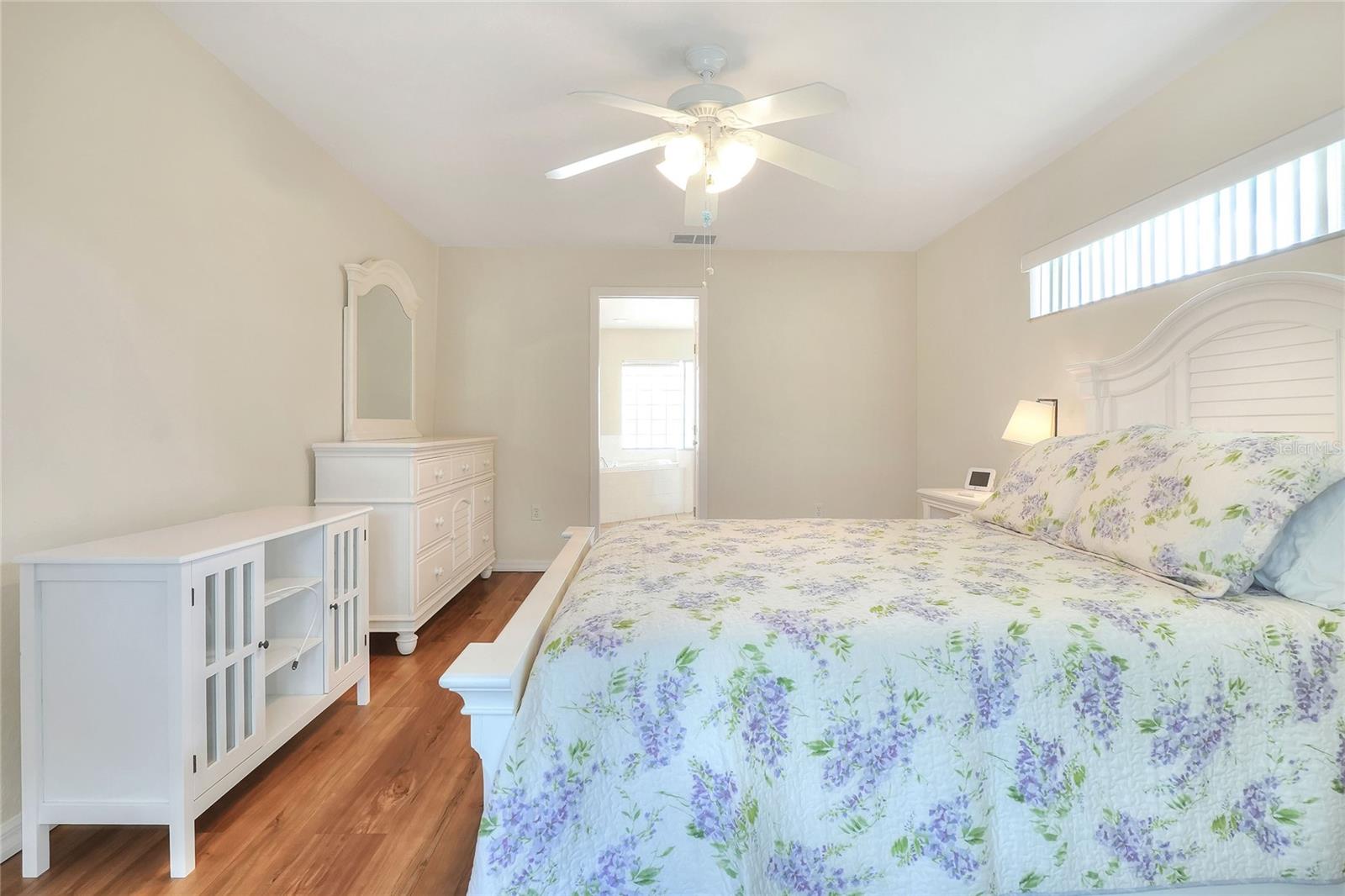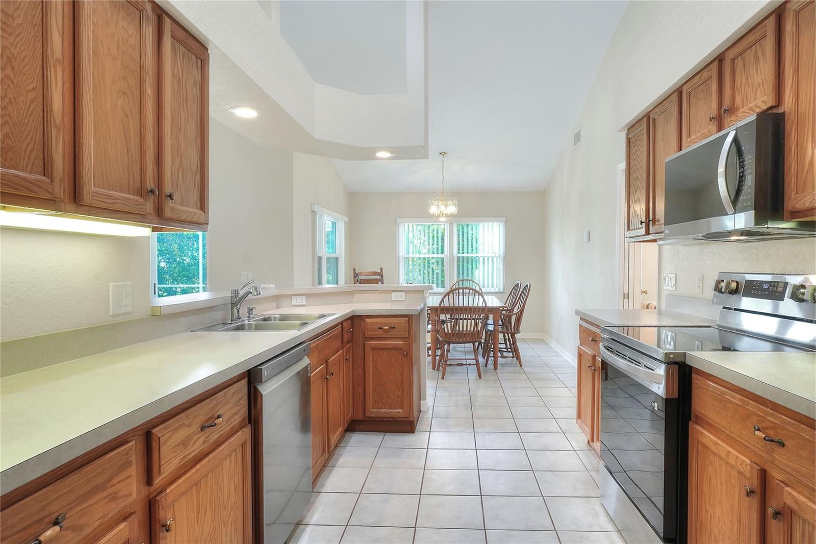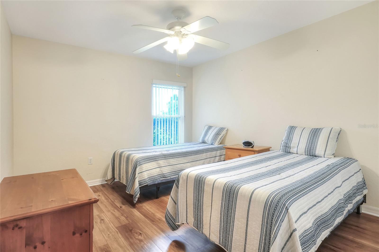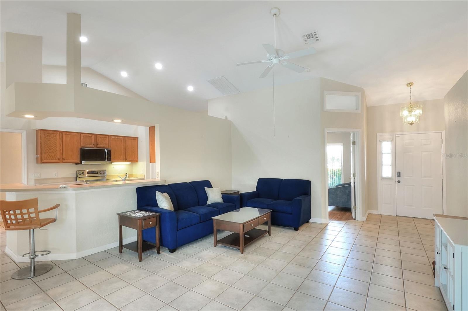 Beautifully maintained, this 4/2/2 pool home awaits! Lush, mature landscaping greets you upon arrival. From your entry point, you can see the sparkling pool through the brand new triple sliders. This pool is equipped with safety fence should you need, and the surface is in pristine condition. The pool screen helps maintain the crystal clear appearance of the pool. The vast open space of the living area separates living in three directions, making this floorpan conducive to multi-gen use, or designation of an office. The primary suite sports an ensuite with a soaking tub begging to sooth your soul at the end of a long day! New, modern sliders open onto the pool deck, and provide a lovely view. On to the dining area, you have a large window overlooking the pool. The kitchen has newer appliances, and is spacious enough for more than one home chef at a time! bedrooms located off of the kitchen are separated by a spacious bathroom. Laundry is inside, located off the kitchen for convenience. Solar panels are in place and are owned, placed by the same company at the time of the roof in 2019. Reclaimed water is utilized for lawn irrigation and the Rainbird system can help you manage watering days! This is a beauty you don't want to miss! Make your appointment ASAP!