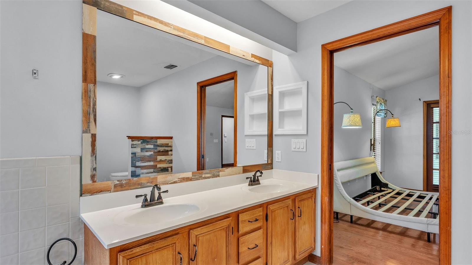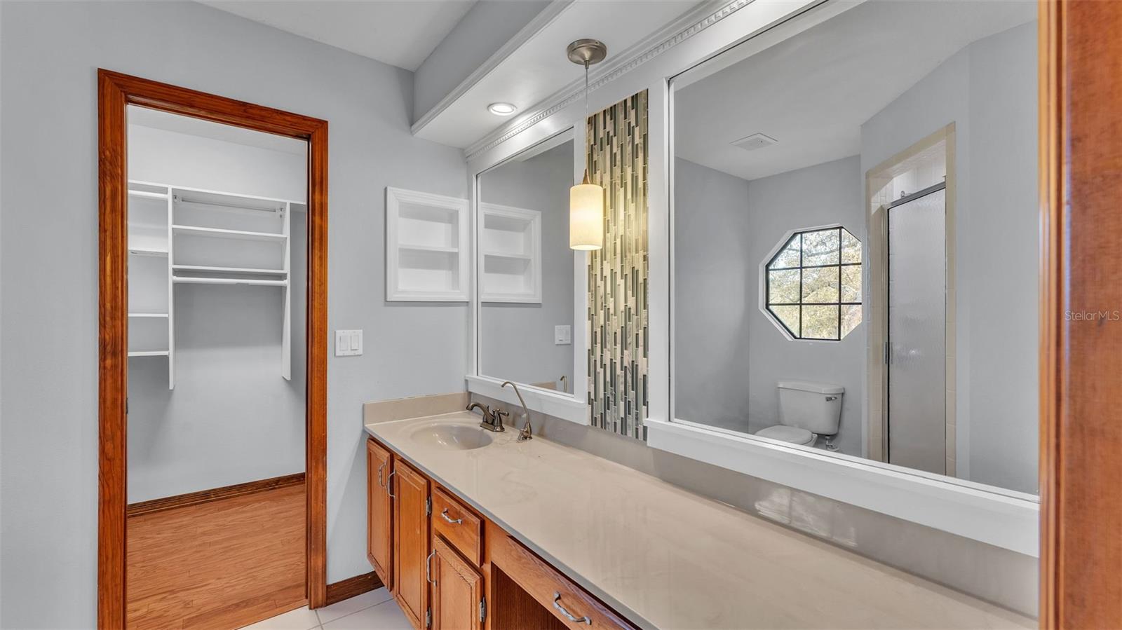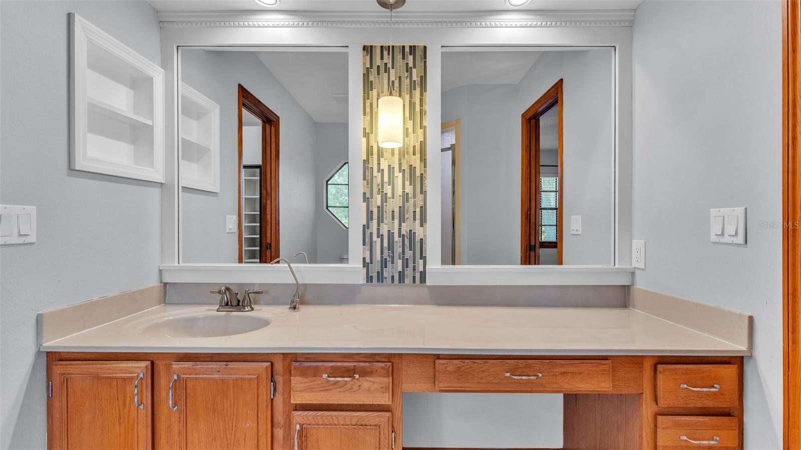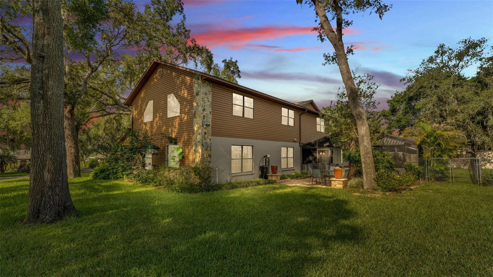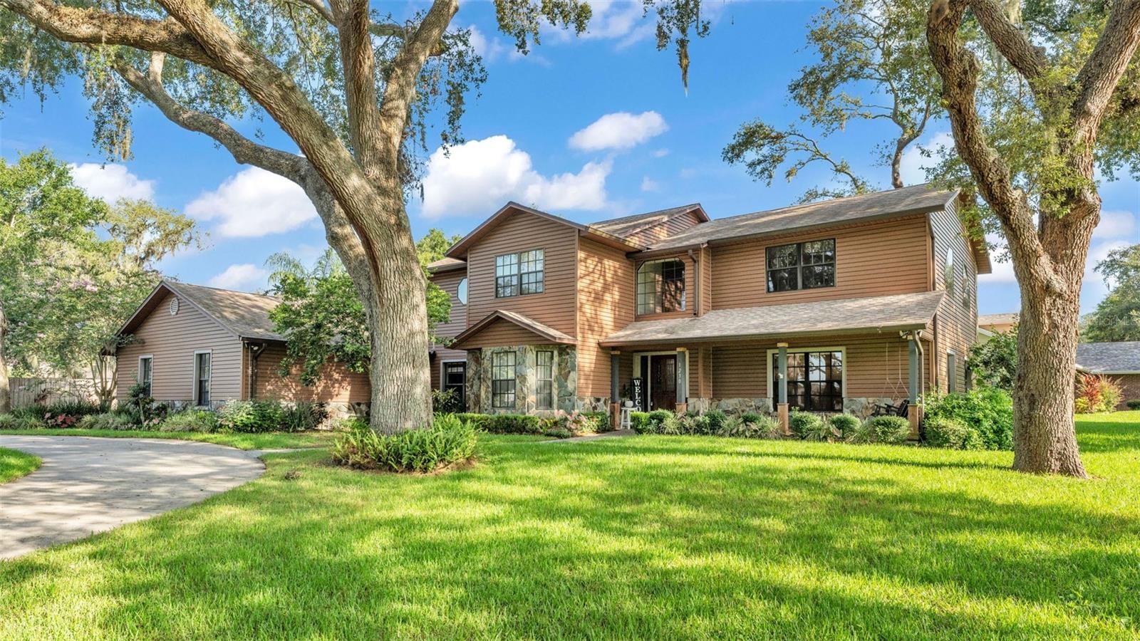 BACK ON MARKET (buyer financing fell through — no fault of the home). Come tour and make it yours. Welcome Home! This custom-designed two-story home has been lovingly maintained and is nestled on an oversized, shaded corner lot in the highly desirable Country Oaks neighborhood of Lakeland. Ideally located just minutes from golf courses, shopping, top-rated schools, churches, medical facilities, and with convenient access to I-4 for an easy commute to Tampa or Orlando. From the moment you arrive, the inviting circle driveway and thoughtfully landscaped yard—accented by uplighting at night—set the tone for what’s inside. Step through the front door into a warm and welcoming space featuring soaring 16-foot ceilings, natural wood walls, and slate tile flooring in the great room. Rich engineered hardwood floors flow throughout the rest of the home. On the first floor, you’ll find the primary bedroom suite with a custom-designed walk-in closet and a spacious ensuite bathroom. A second bedroom—currently used as a home office—is also located on the main level, along with a half bath that offers direct access to the pool area. The laundry room includes built-in cabinetry and a utility sink for added convenience. The spacious kitchen is beautifully appointed with granite countertops, cabinet pull-outs, and a breakfast nook that overlooks the screened pool and paver patio. A formal dining room with a charming bay window completes the first floor. The wood staircase at the entrance leads to the second floor, where you'll find two separate loft areas offering flexible living space—ideal for entertaining, studying, or creating a private office or library. Two generously sized bedrooms, each with their own bathroom and custom walk-in closet, are also located upstairs. Outside, the heated pool—resurfaced, retiled, and re-screened in 2022—sits within an enclosed paver patio and deck. Just beyond the screen enclosure is an additional paver patio, perfect for grilling, entertaining, or relaxing around a fire pit. The oversized and deep three-car garage includes a spacious workshop and a utility sink/counter area for easy clean-ups. Hurricane-rated garage doors were installed in 2022. Behind two 10-foot-wide privacy gates, you'll find a 10x30 aluminum-covered parking area—ideal for RV or boat storage. Additional highlights include a roof replacement in 2012, two newer A/C units (installed in 2016 and 2020), and a voluntary annual HOA. With countless custom features throughout, this exceptional home offers a rare combination of quality, comfort, and versatility. Come see it for yourself—this is the one you’ve been waiting for!