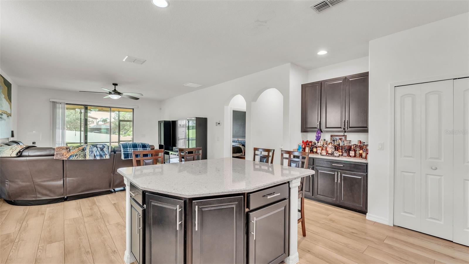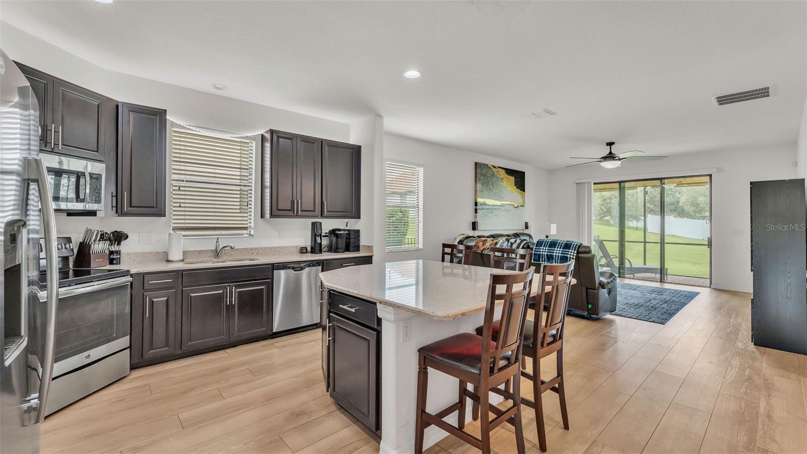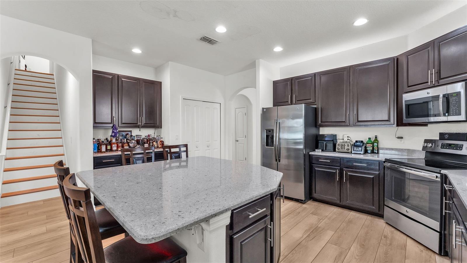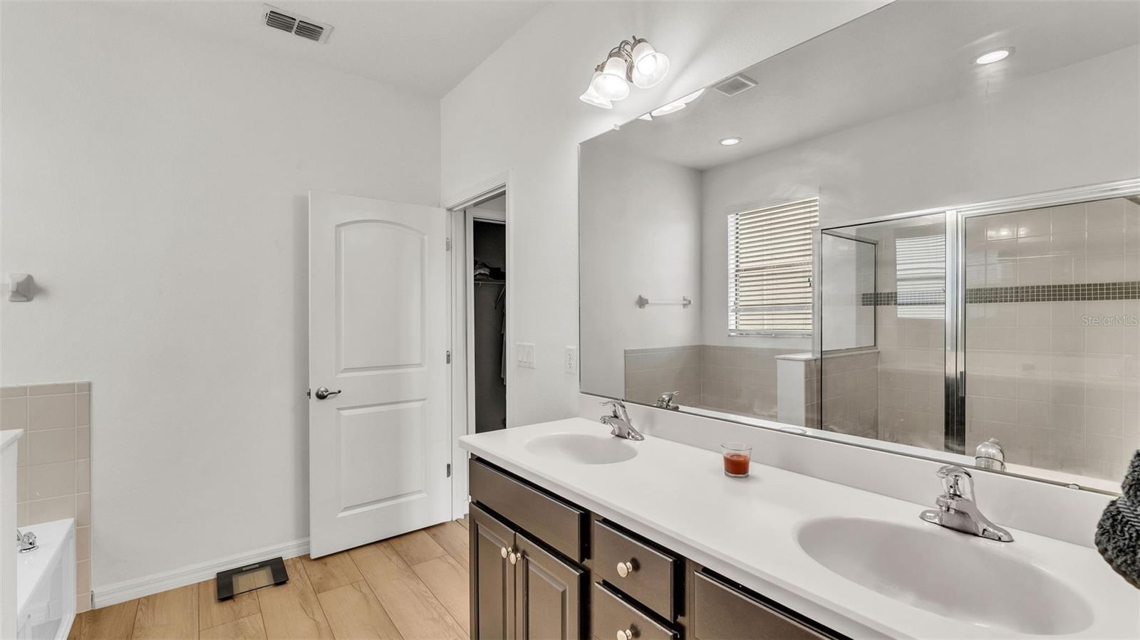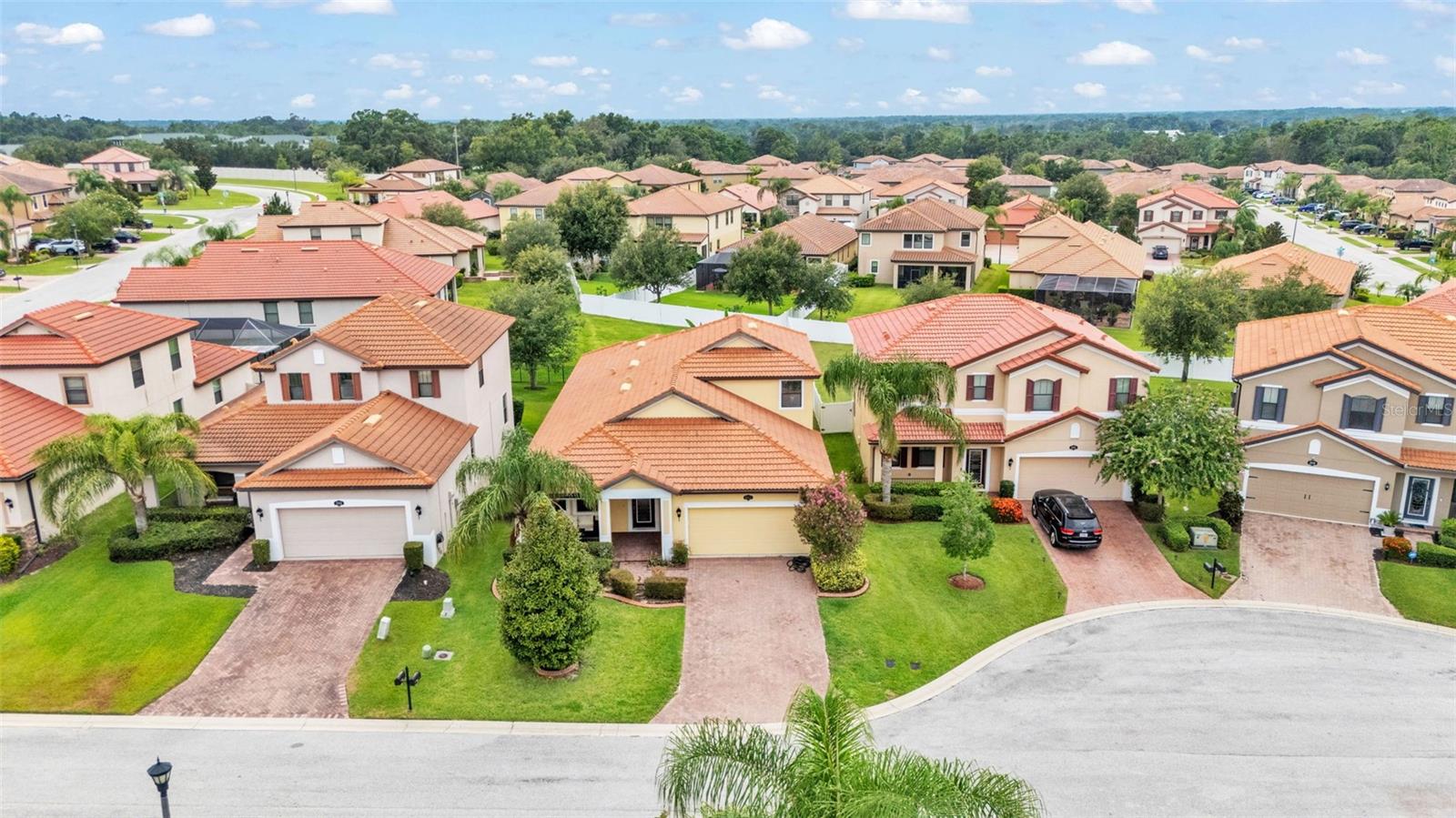Welcome to 3912 Vista Trace Way, tucked away on a peaceful cul-de-sac in one of Lakeland’s most desirable resort-style gated communities. This beautifully maintained K. Hovnanian 4-bedroom, 3-bathroom home with a dedicated office offers the perfect balance of comfort, style, and convenience for today’s modern lifestyle. From the moment you arrive, you’ll be charmed by the paved driveway and cozy front porch—an ideal spot for morning coffee or unwinding at sunset. Step inside to find upgraded vinyl plank flooring flowing throughout the first floor, creating a seamless and elegant look. The spacious dining room features custom wall trim that adds a subtle designer touch, while the open-concept kitchen and living room are built for gathering and entertaining. The kitchen boasts solid wood cabinetry, granite countertops, and stainless steel appliances—a true heart-of-the-home setup. The primary suite, located privately on the first floor, includes a generous walk-in closet, a garden tub, walk-in shower, and dual sink vanity, offering a relaxing retreat. Two other guest bedrooms on the main floor are tucked away from the living areas with their own guest bathroom. Upstairs, you'll find a massive fourth bedroom with an en-suite bathroom—perfect as a guest suite, home theater, or game room. Sitting on nearly a quarter-acre lot, the backyard offers space to breathe with no direct rear-facing neighbors, a screened-in patio, and room to play or garden. Living here means access to a resort-style lifestyle: enjoy a huge community pool, clubhouse, tennis courts, dock, playground, and scenic walking trails—all included in your HOA, along with internet and cable TV. Location-wise, you’re just minutes from Publix, Walmart, restaurants, and I-4, making commutes to Tampa or Orlando a breeze. Whether it’s grabbing a bite at a local favorite like Ford’s Garage or exploring the nearby Lakeland Square Mall, everything you need is right around the corner. Don’t miss the chance to call this welcoming and well-loved home your own—schedule your private tour today! Floorplan and video tour available!
