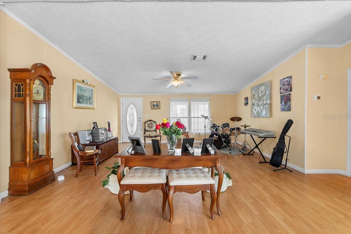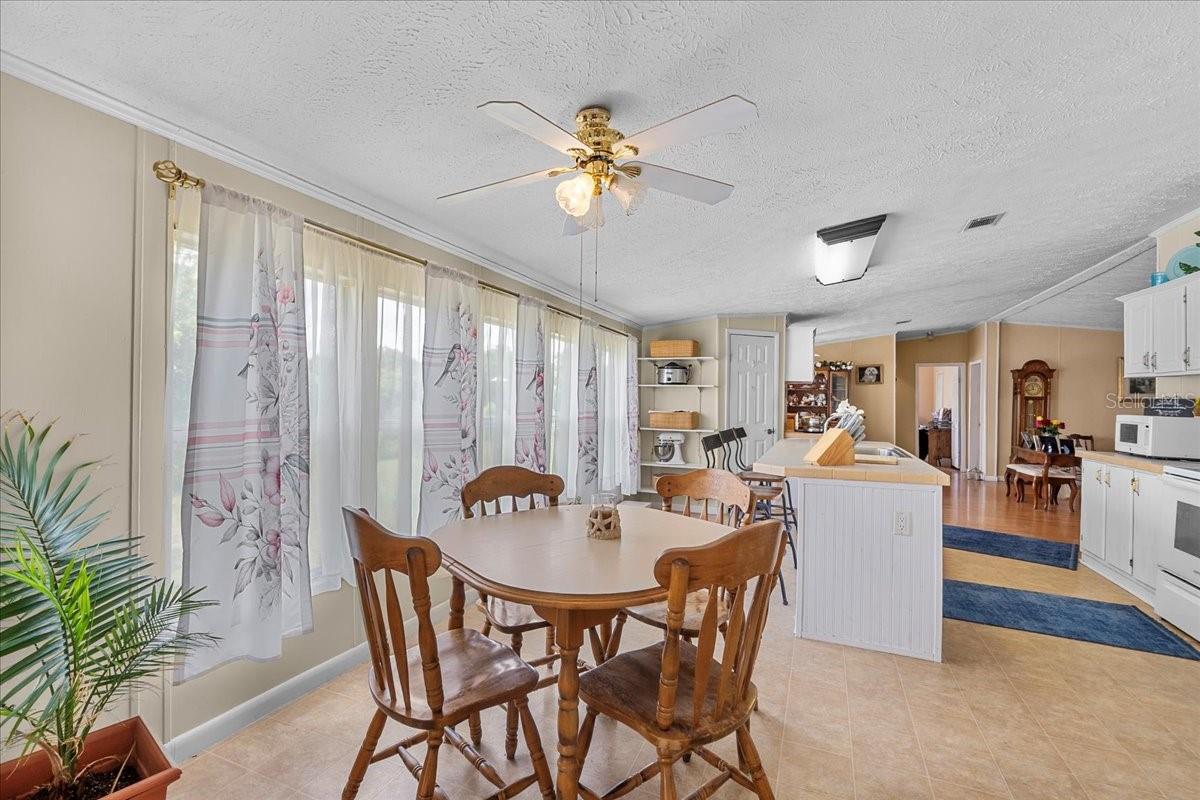 ** USDA ELIGIBLE!!** Welcome home to comfort, space, and functionality! This beautifully maintained residence located in an all age community features a bright and open floor plan with two distinct living areas—perfect for relaxing or entertaining. The enclosed front porch is the perfect place to enjoy your morning coffee and start your day, or relax and take in a sunset. Inside, you will find both a formal dining room and a casual eat-in kitchen area, offering flexibility for everyday meals and special gatherings. The oversized kitchen is a standout, complete with a large island, snack bar, and plenty of cabinetry. The cozy family room includes a fireplace for added warmth and charm. The spacious primary suite features a private bath with dual vanities, a dressing room, shower, and a generous amount of storage space. All bedrooms are comfortably sized with ample storage. An oversized utility room includes a convenient powder bath. Outside, enjoy a large fenced backyard that backs up to a peaceful pond. The 2-car carport includes a utility storage area at the front of the home, and there’s an additional shed out back with electric—great for a workshop or extra storage. You own the land! Ideally located near schools, shopping, dining, and more, this move-in ready home checks all the boxes!