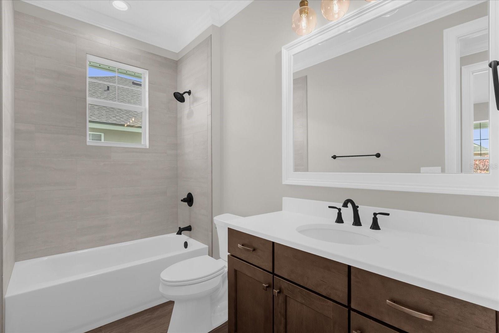 Live the Good Life in this EXCLUSIVE 55+ GATED COMMUNITY of LAKE JAMES! Get ready to fall in love with this *NEW GIBSON IV* home with welcoming CRAFTSMAN STYLE inside and out. This ERNIE WHITE built home in the sought after 55+ gated community of LAKE JAMES in Lakeland has everything you could want in a NEW home. This 3 Bed, 2 Bath welcomes you with a BRICK PAVER DRIVEWAY and a covered FRONT PORCH to relax and meet your neighbors. Step through the front door to an open concept layout that is ideal for gatherings. The GREAT ROOM features WOOD PLANK tile, VAULTED ceilings, and includes generous space for furniture. The KITCHEN features WARM WOOD CABINETRY with complimenting QUARTZ countertops, and WHITE SUBWAY TILE backsplash. This space is made complete with CLOSET PANTRY, over-sized ISLAND with sink and dishwasher prep. STAINLESS STEEL appliances and plenty of cabinet and countertop space. The DINING space is located just off the kitchen and opens to the GREAT ROOM for ease of entertaining. A SPLIT FLOOR PLAN gives everyone their own space. The spacious PRIMARY suite easily fits a king-size bed and features an OVER-SIZED walk-in closet, WARM WOOD double vanities, QUARTZ countertops, and a luxurious walk-in shower. The TWO additional bedrooms are great for guests or flex space for office and hobbies. The guest bath also features BEAUTIFUL wood cabinets with QUARTZ countertops. Step out back to your own private oasis with a large SCREENED-IN, paver patio perfect for relaxing, reading, or grilling up something delicious on the extra paved BBQ area. All of this is located within this PREMIER community in Lakeland, mere miles from Interstate 4. Enjoy RESORT STYLE amenities including a clubhouse, heated community pool, fitness center, and scenic walking trails. A MONTHLY FEE covers essentials like LAWN MAINTENANCE, CABLE, & INTERNET (with NO CDD FEE), ensuring a carefree lifestyle. DISCOVER why so many people fall in love and are PROUD to call LAKE JAMES home. Make your appointment to see TODAY!