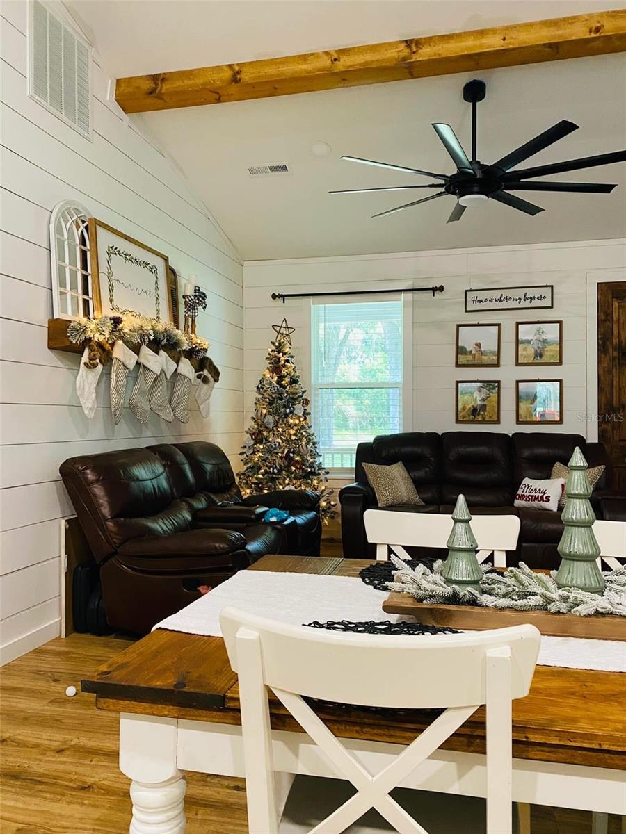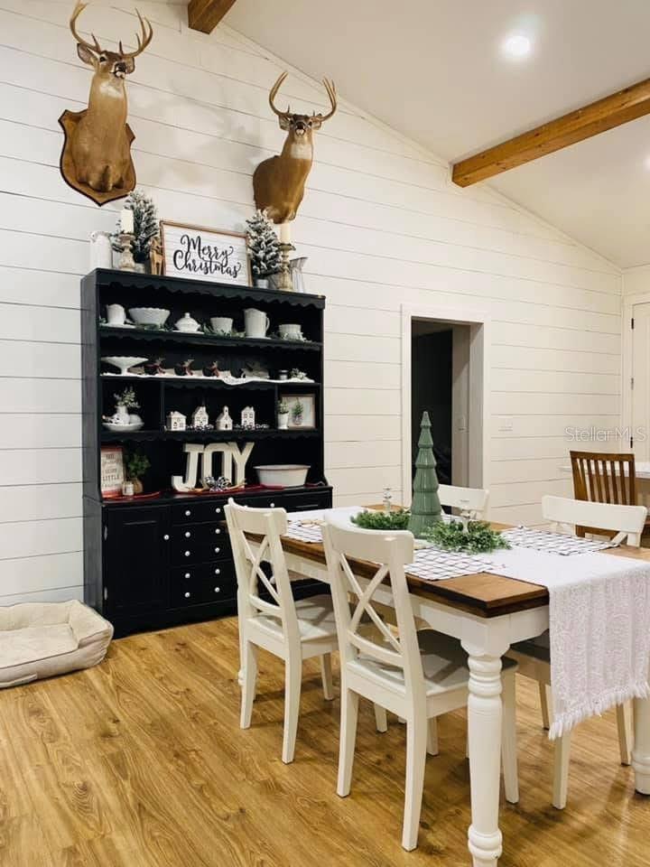 OLD FLORIDA CHARM meets MODERN FARMHOUSE STYLE This beautifully designed 3 bedroom, 2 bath home (just 4 years young!) sits on over 3.5 acres of peaceful country living. From the moment you step inside, you’ll be greeted by shiplap accents, exposed beams, vaulted ceilings, and rustic-style commercial-grade laminate flooring—all the touches that make this home warm, inviting, and stylish. Enjoy relaxing mornings or sunset evenings on the covered front and back porches, perfect for rocking chairs and good company. And yes—it comes with the durable METAL ROOF you’ve been hoping for! Inside, the open-concept great room and kitchen is ideal for entertaining, featuring stainless steel appliances, a large island with breakfast bar, and plenty of natural light. The oversized laundry room (washer & dryer included) adds everyday convenience. The primary suite is a retreat of its own, complete with dual walk-in closets, dual vanities, a soaking tub, and a separate shower. Outside, the property truly shines! You’ll find: 3 car carport, POLE BARN with separate meter(great for RV hookups or projects), multiple sheds, and beautiful wooded acreage that extends behind the home and across Mathews Road All of this with NO HOA—giving you freedom and space to enjoy the lifestyle you want. Nestled in a serene country setting, yet just minutes from shopping, dining, and I-4 for an easy commute to Orlando or Tampa. Plus—this home is USDA eligible!