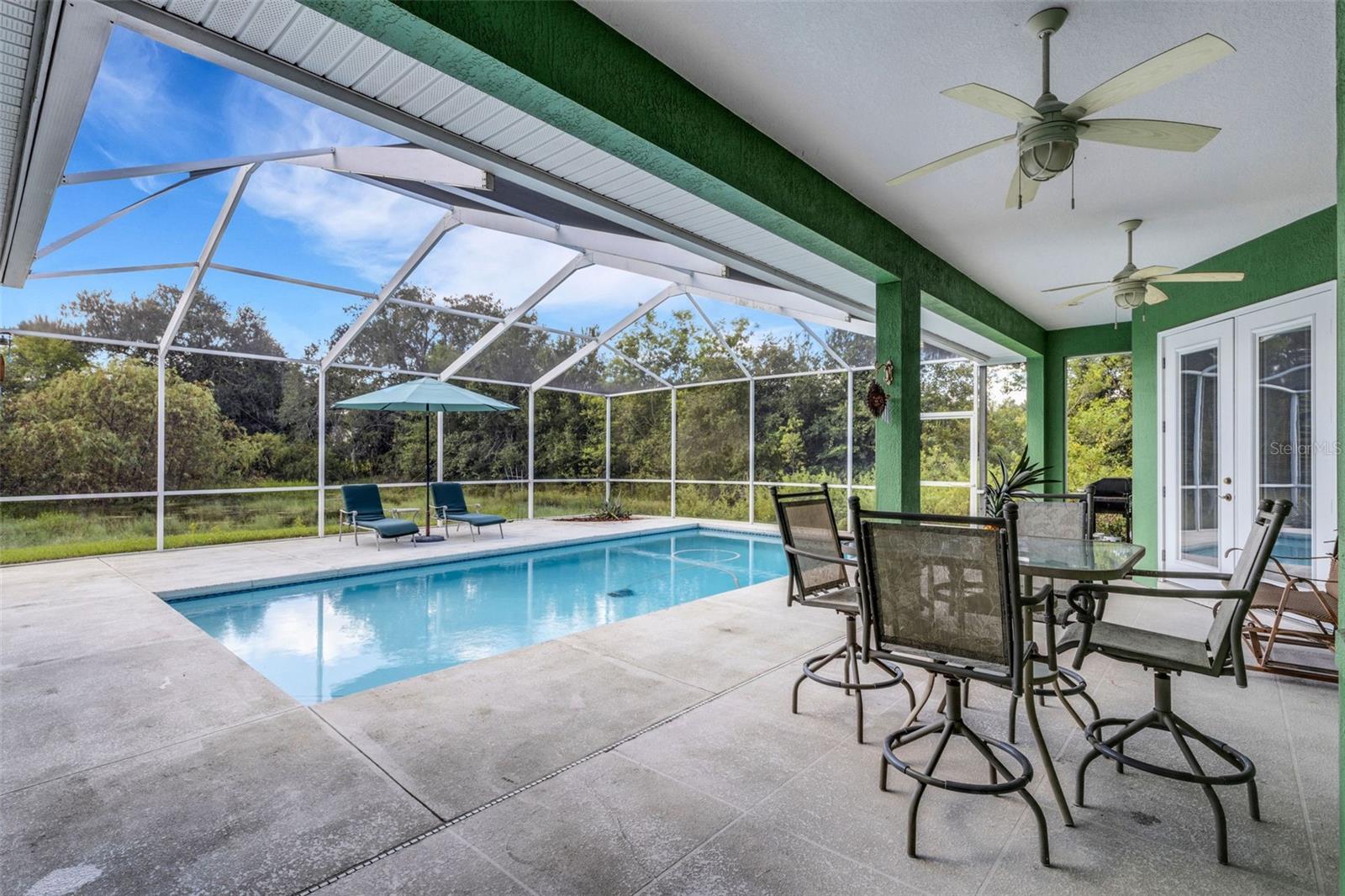Quality home built by Hulbert Homes is now available! This updated 3-bedroom, spacious pool home is located in the wonderful neighborhood of Manors of Nottingham. The community is conveniently situated near medical facilities, shopping, restaurants, and is just minutes from Interstate 4, providing quick access to Tampa and Orlando. Recent updates to the home include a roof replacement in 2022, new energy-efficient windows and doors installed in 2019, an HVAC system replacement in 2023, and a kitchen remodel in 2020 featuring granite countertops. The property sits on over 2 acres and boasts a private backyard overlooking trees and a serene retention area. Inside, the home offers an exceptional floor plan with easy-to-maintain laminate flooring throughout. The kitchen includes a lovely eat-in space that looks out onto the beautiful pool area, which has a newly stained pool deck with ample room for relaxation and enjoyment of the outdoors. The primary bedroom retreat features a luxurious spa-like en-suite bathroom with dual vanities, a freestanding tub, and a separate shower. The split bedroom plan is perfect for entertaining guests while providing family members with their own space. This single-story home also includes large closets in every bedroom, a flexible space currently used as a dining room, and an oversized garage. Call your agent to schedule a showing before this gem is sold! All room sizes are approximate.